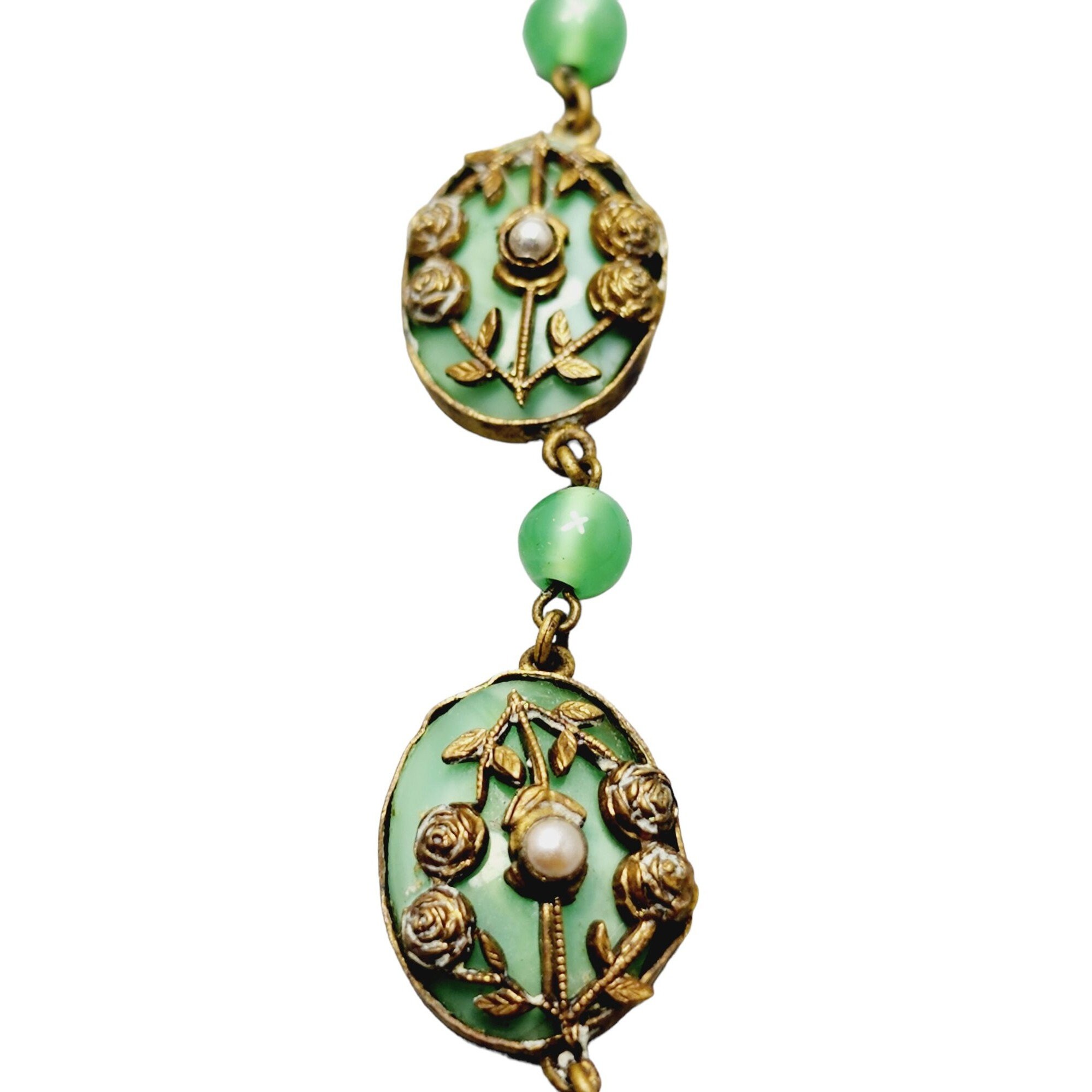 Condition: Good vintage; 3 beads on the center part are silvertone, as well as one on one of the panels. These are beads that must have been replaced. A few pearls have lost their coating. All else is original.