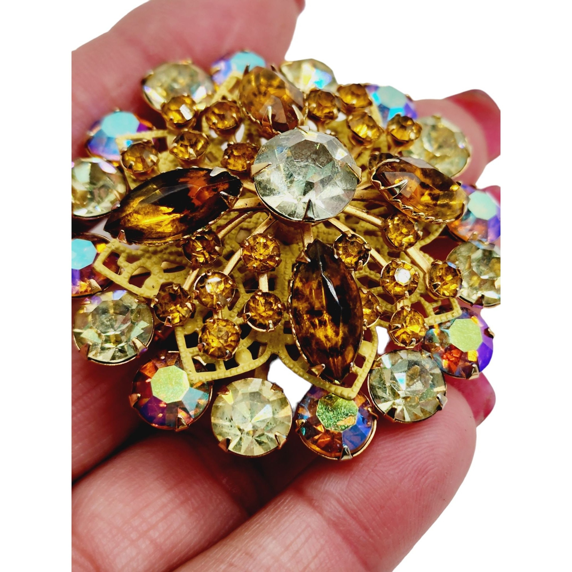 Vintage Unsigned West Germany Rhinestone Layered Brooch (A1238)