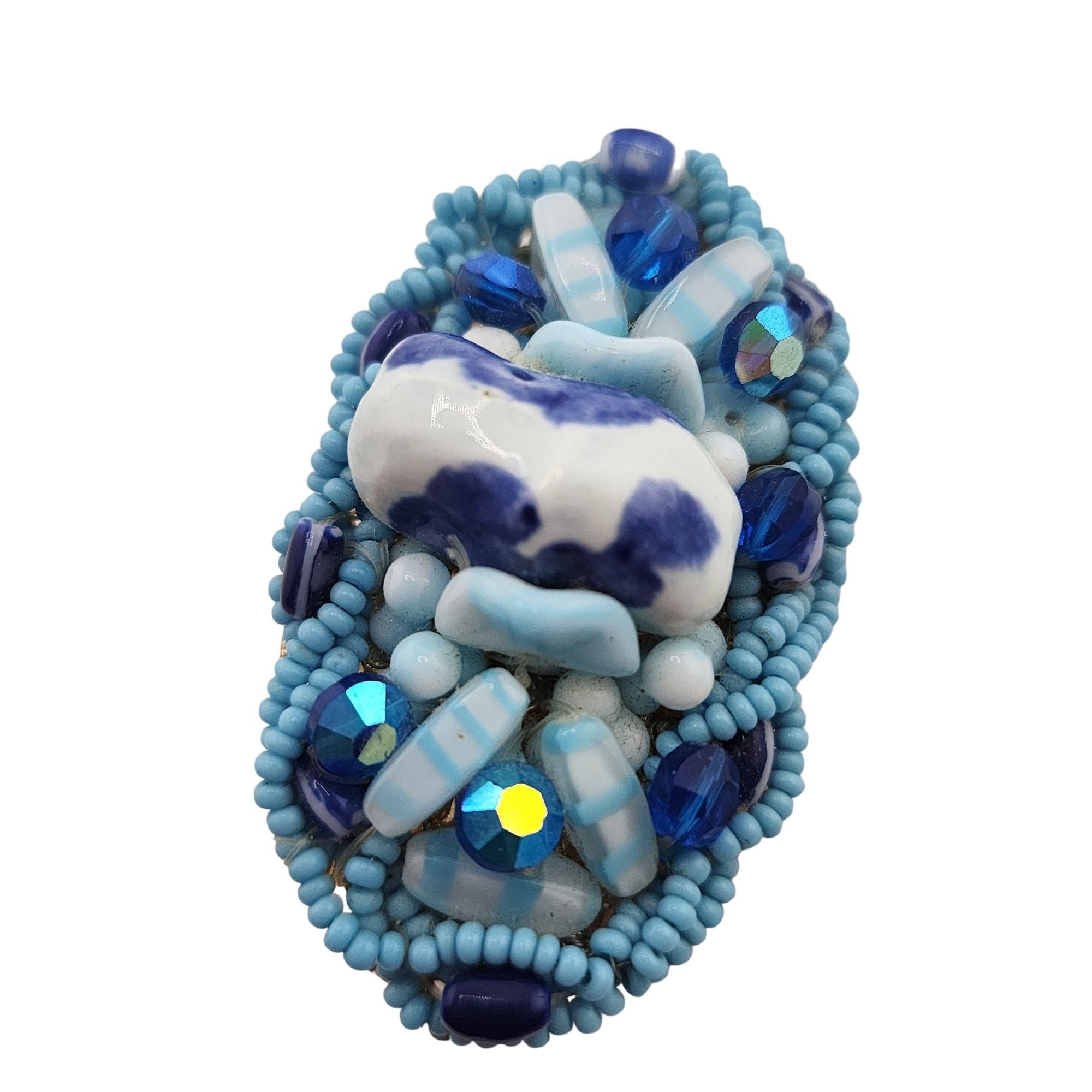 Vintage Unsigned Wired Porcelain, Art Glass & Crystal Brooch (A3860)
