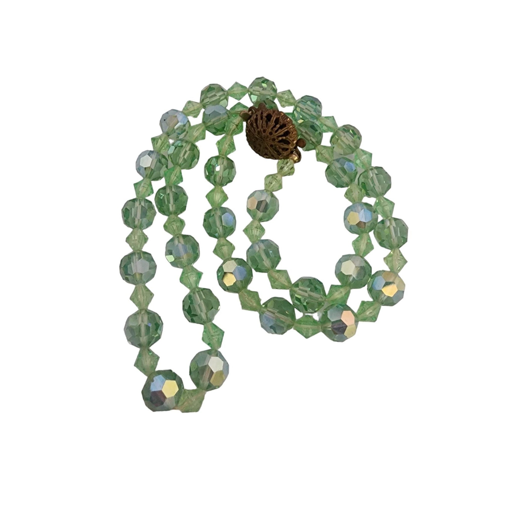 UV Reactive Vintage Green Crystal Necklace (A4637)