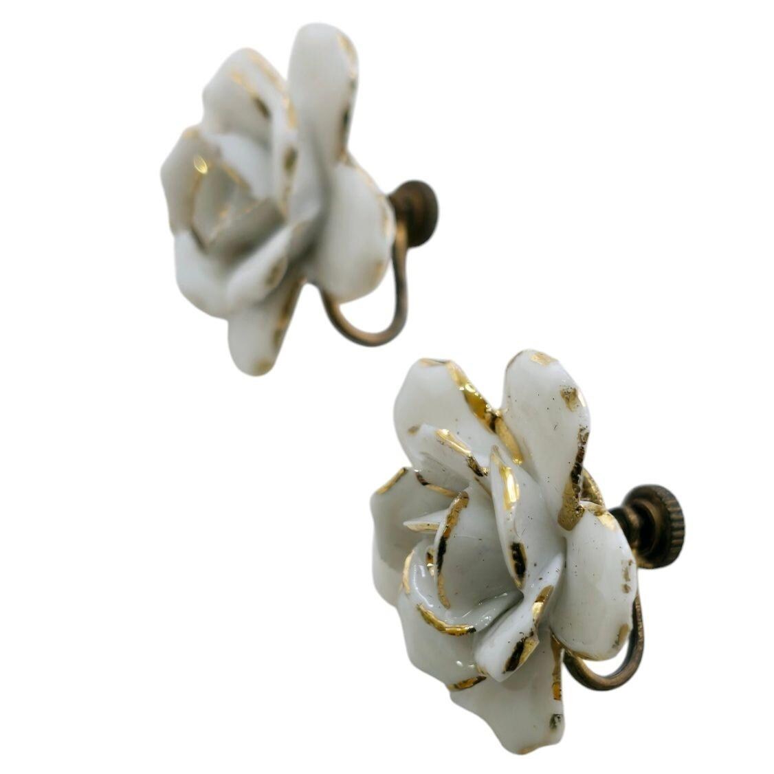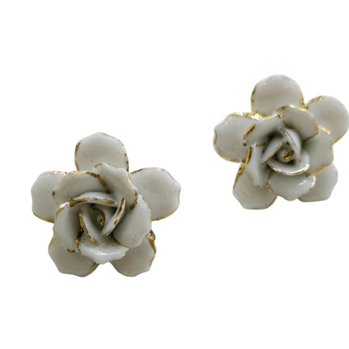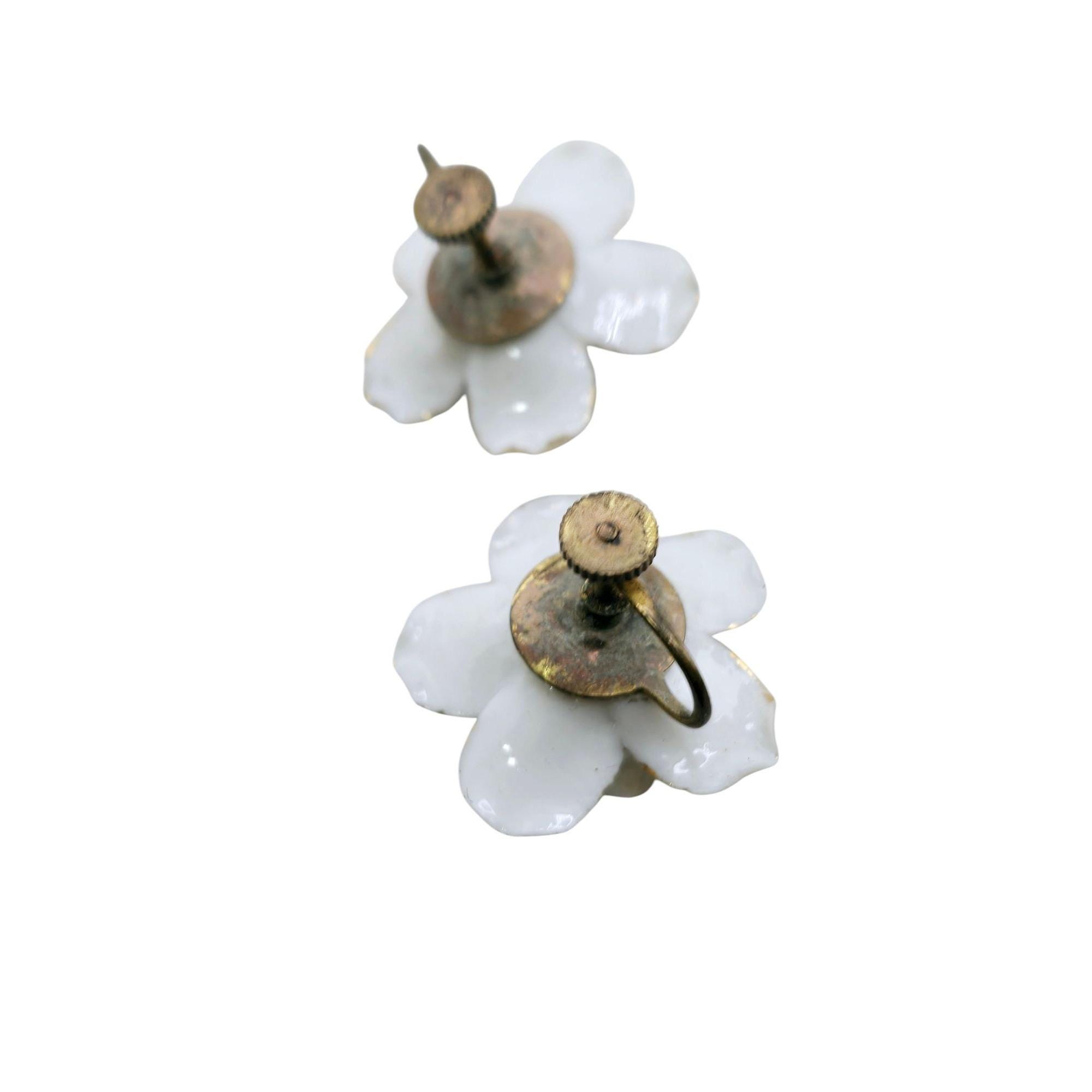 Vintage Porcelain Flower Screw Back Earrings (A8005)