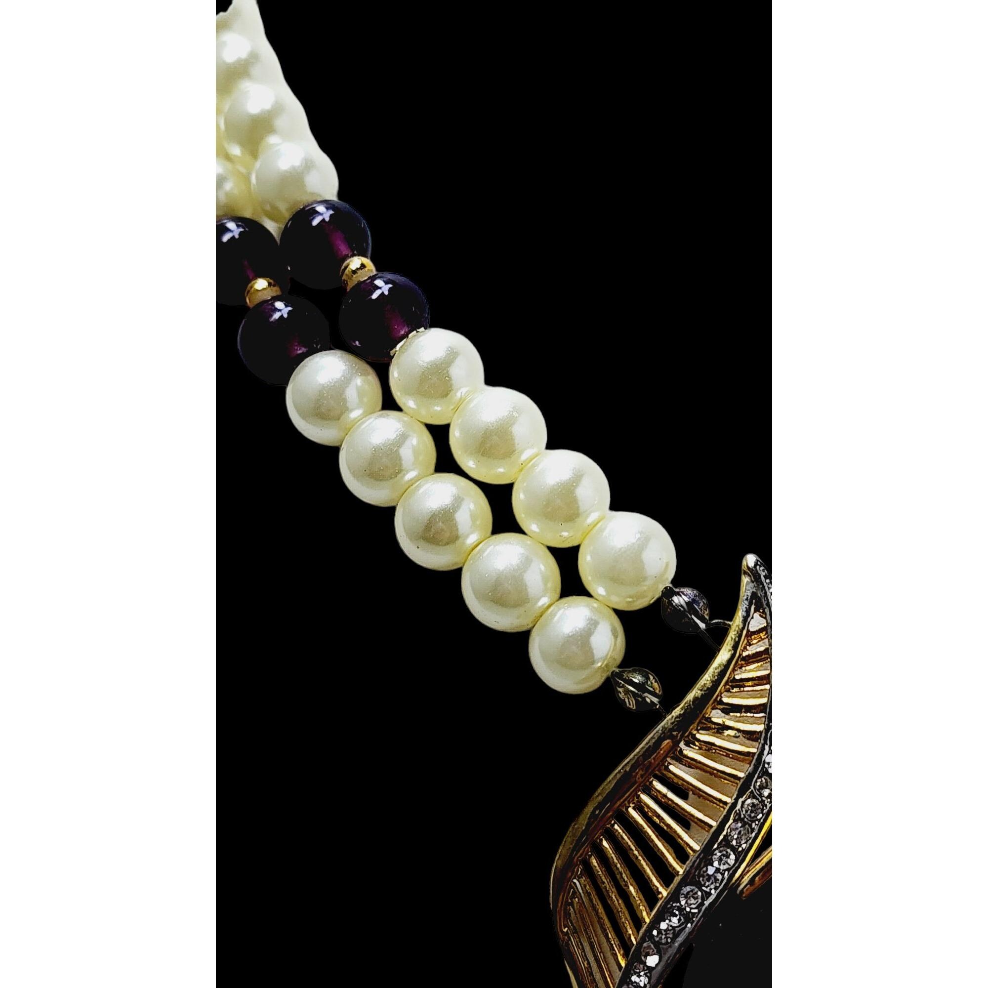 Vintage 80s Glass & Pearl Pendant Necklace Attributed to Panetta (A2555)