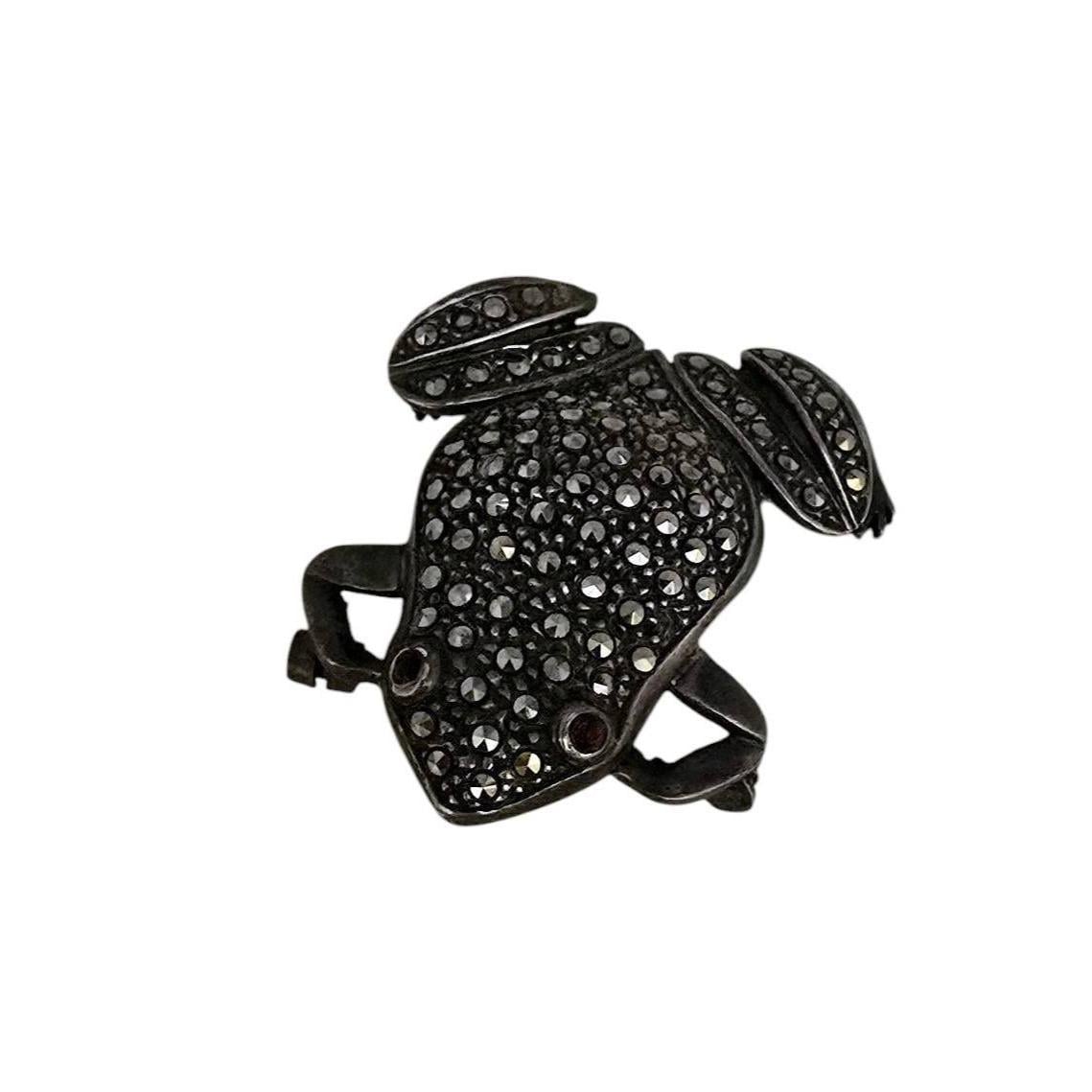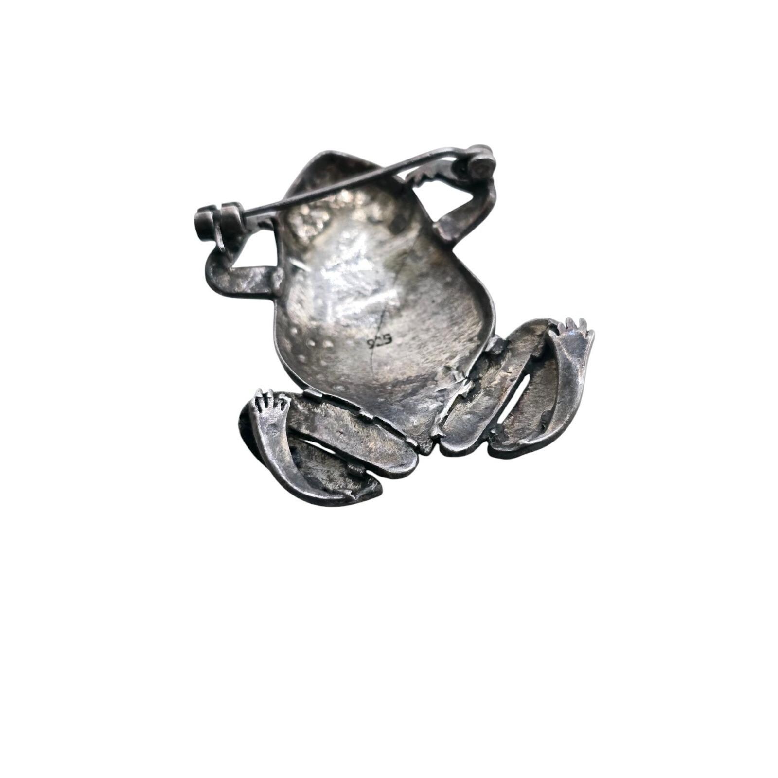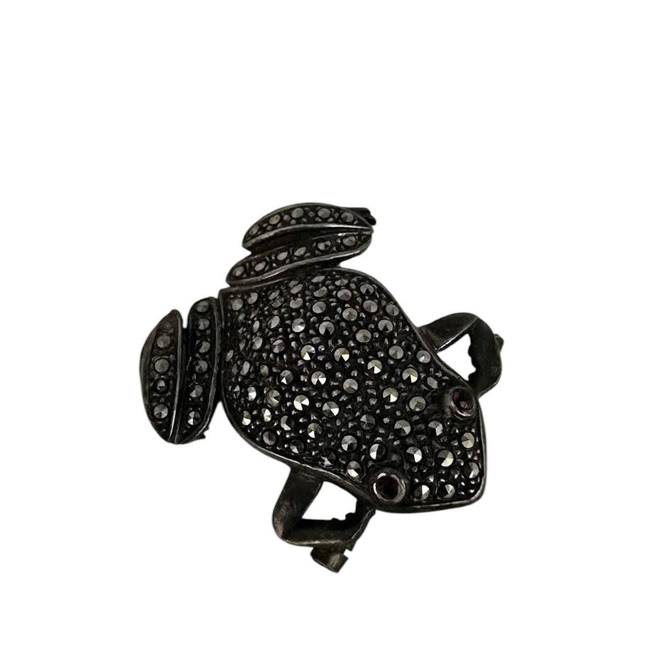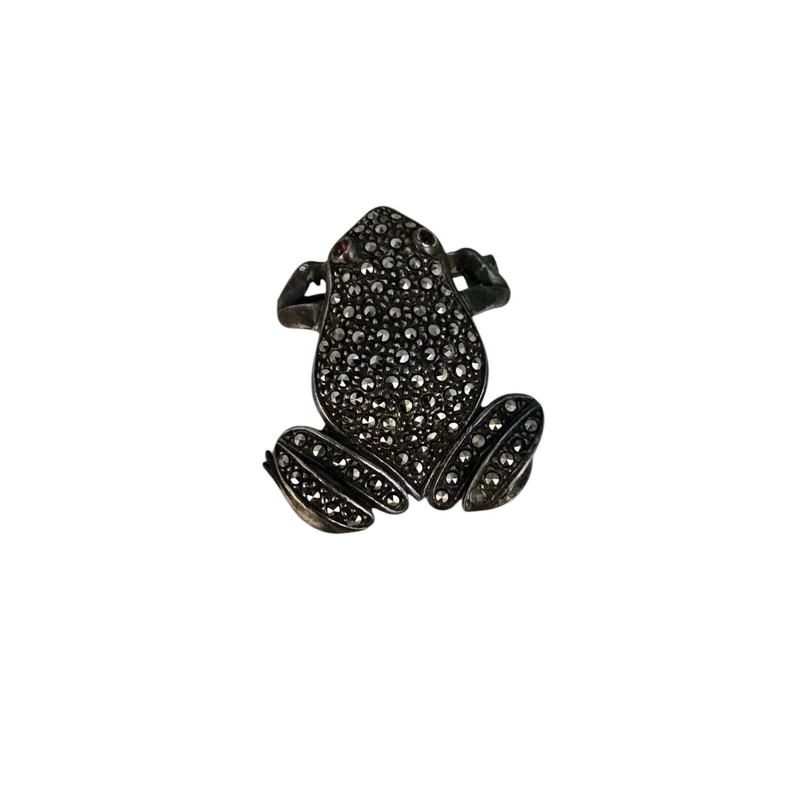 Vintage Sterling 925 Marcasite Frog Brooch (A8580)