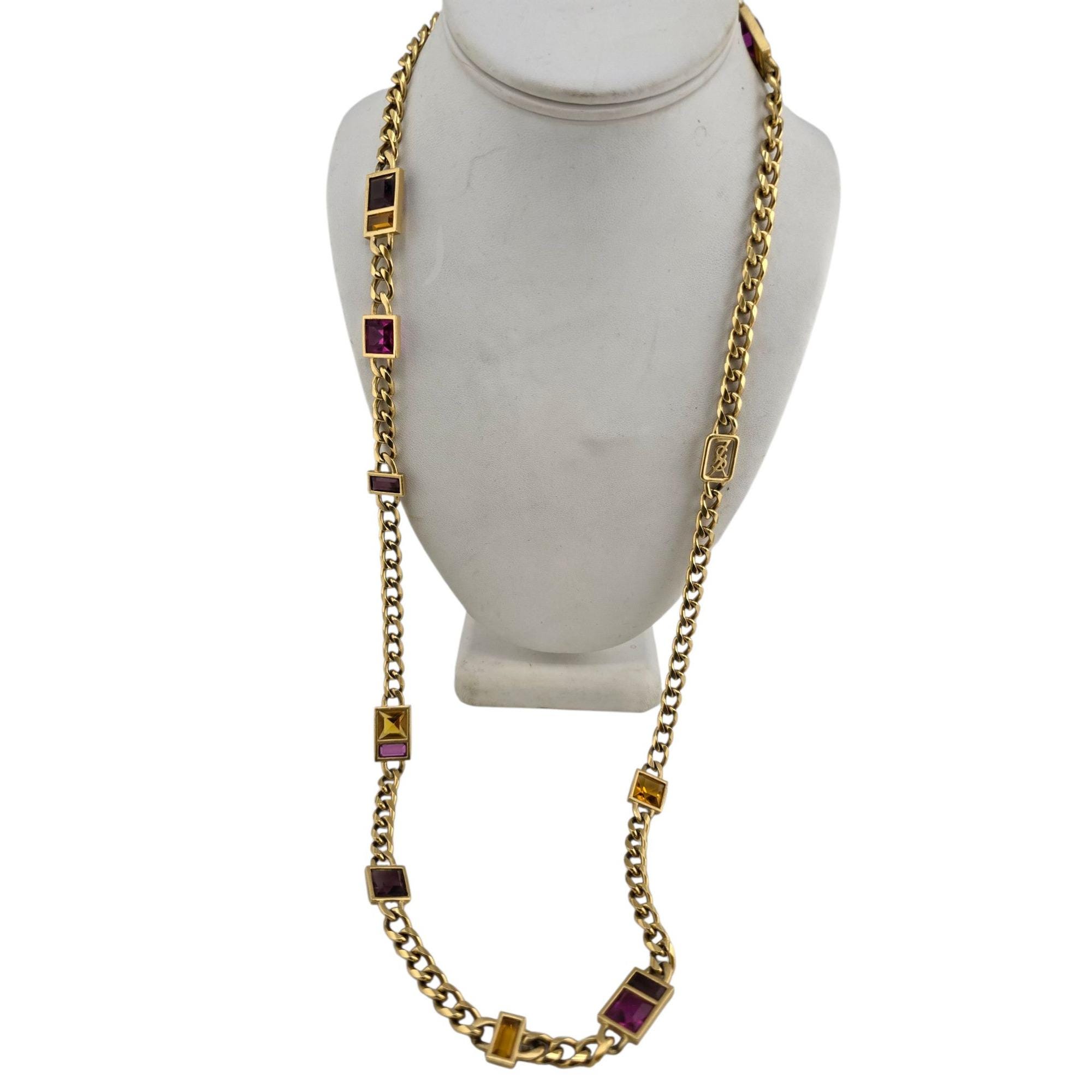 Vintage Yves Saint Laurent YSL 80s Mughal Style Glass & Chain Necklace (A9079)