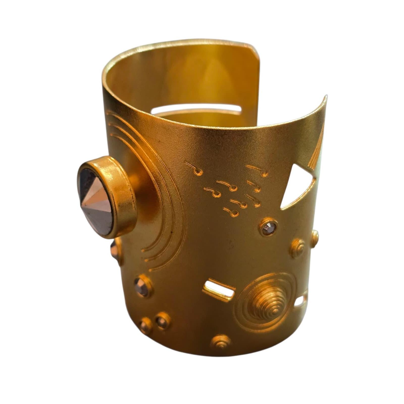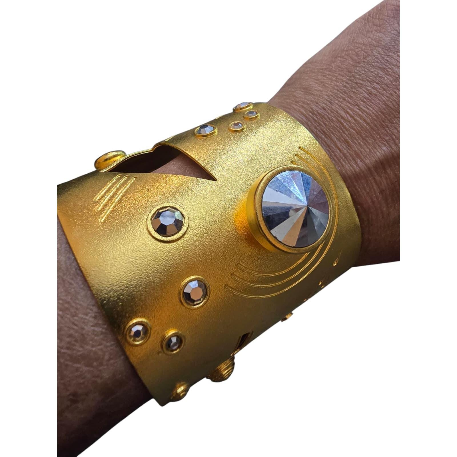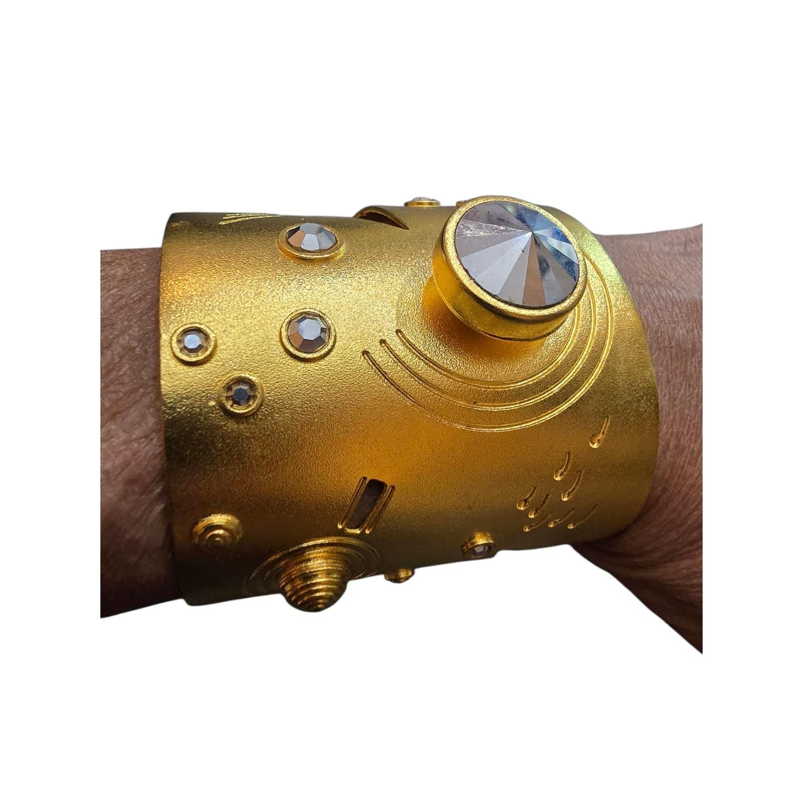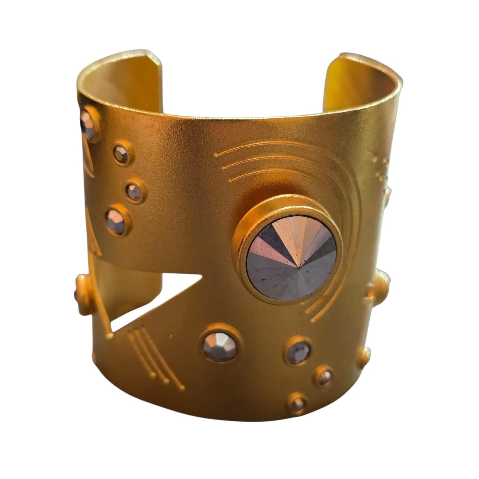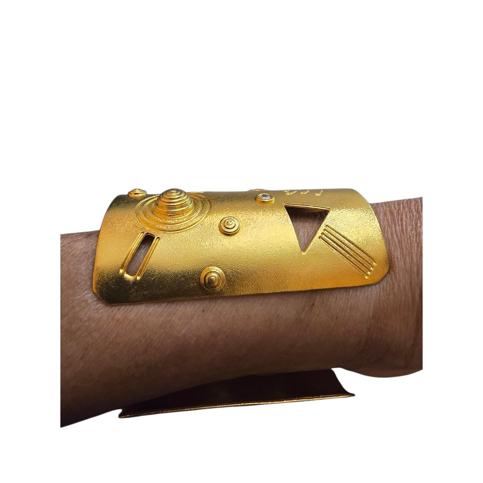 Vintage 80s Sand Blasted Matte Gold Modernist Cuff Bracelet (A9261)