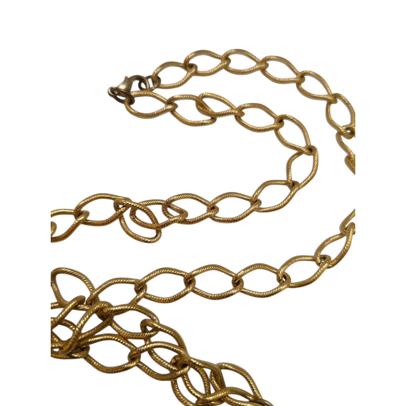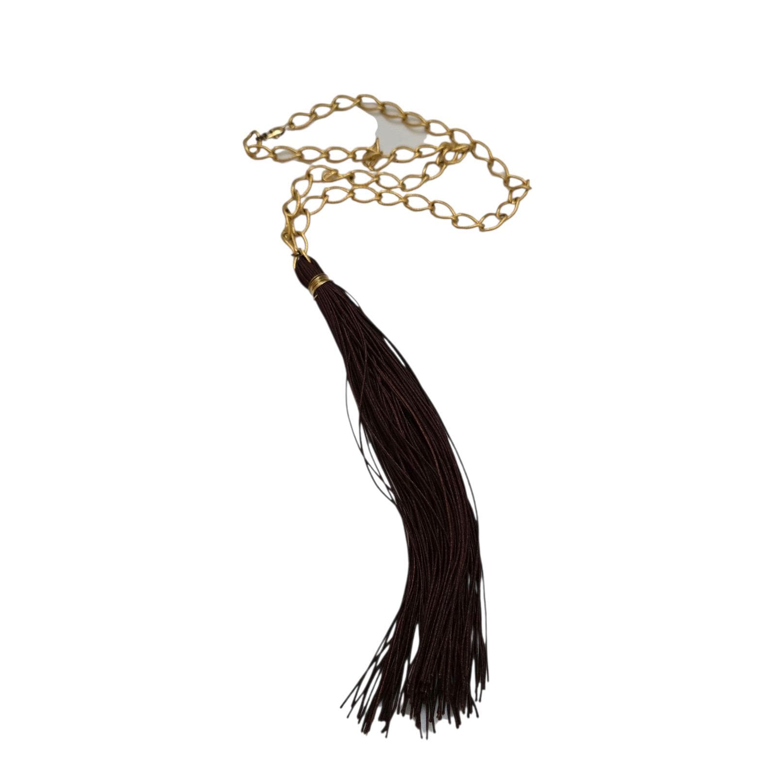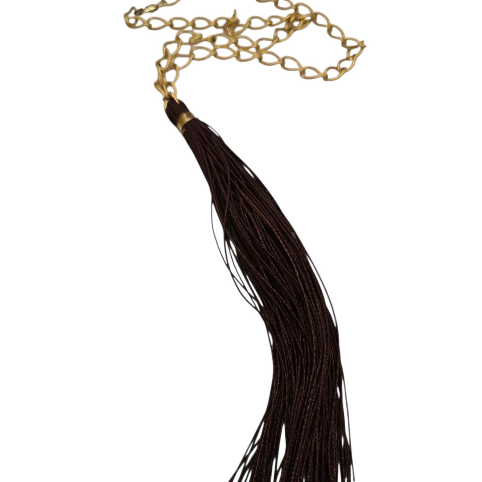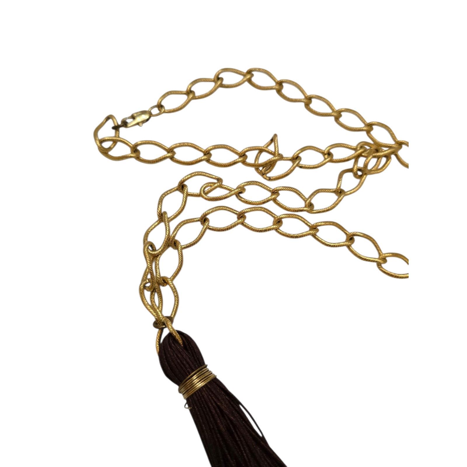 Vintage Signed Bee Charming NOS Brown Silk Cord Huge Tassel On Textured Link Chain Necklace (A9063)