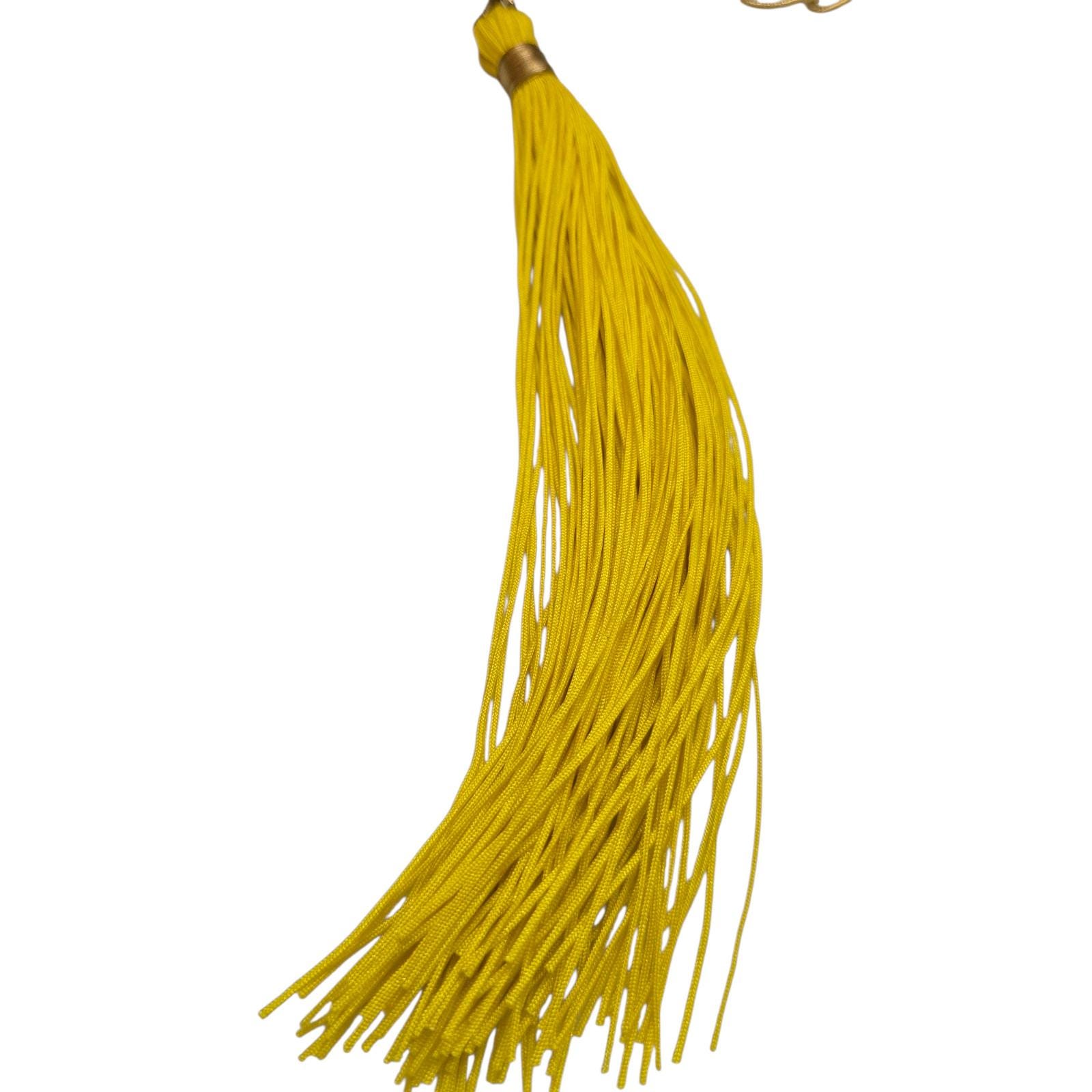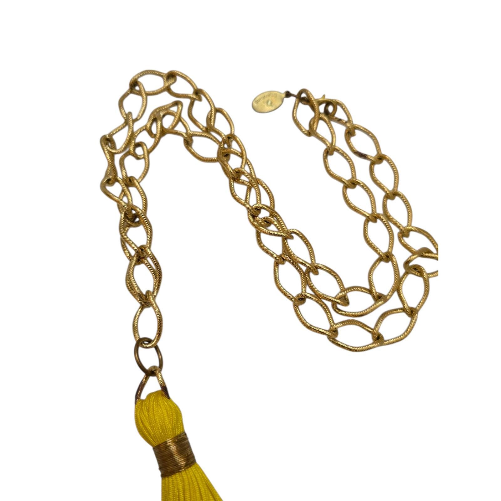 Vintage Signed Bee Charming NOS Yellow Silk Cord Huge Tassel On Textured Link Chain Necklace (A9060)