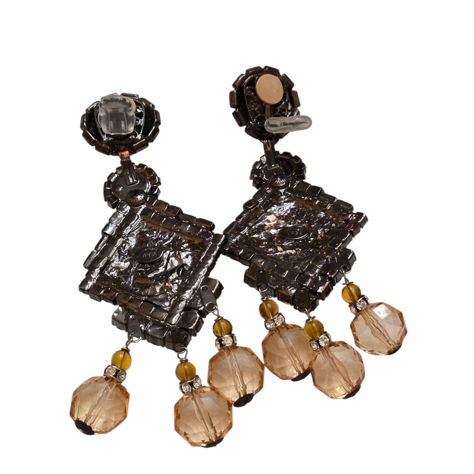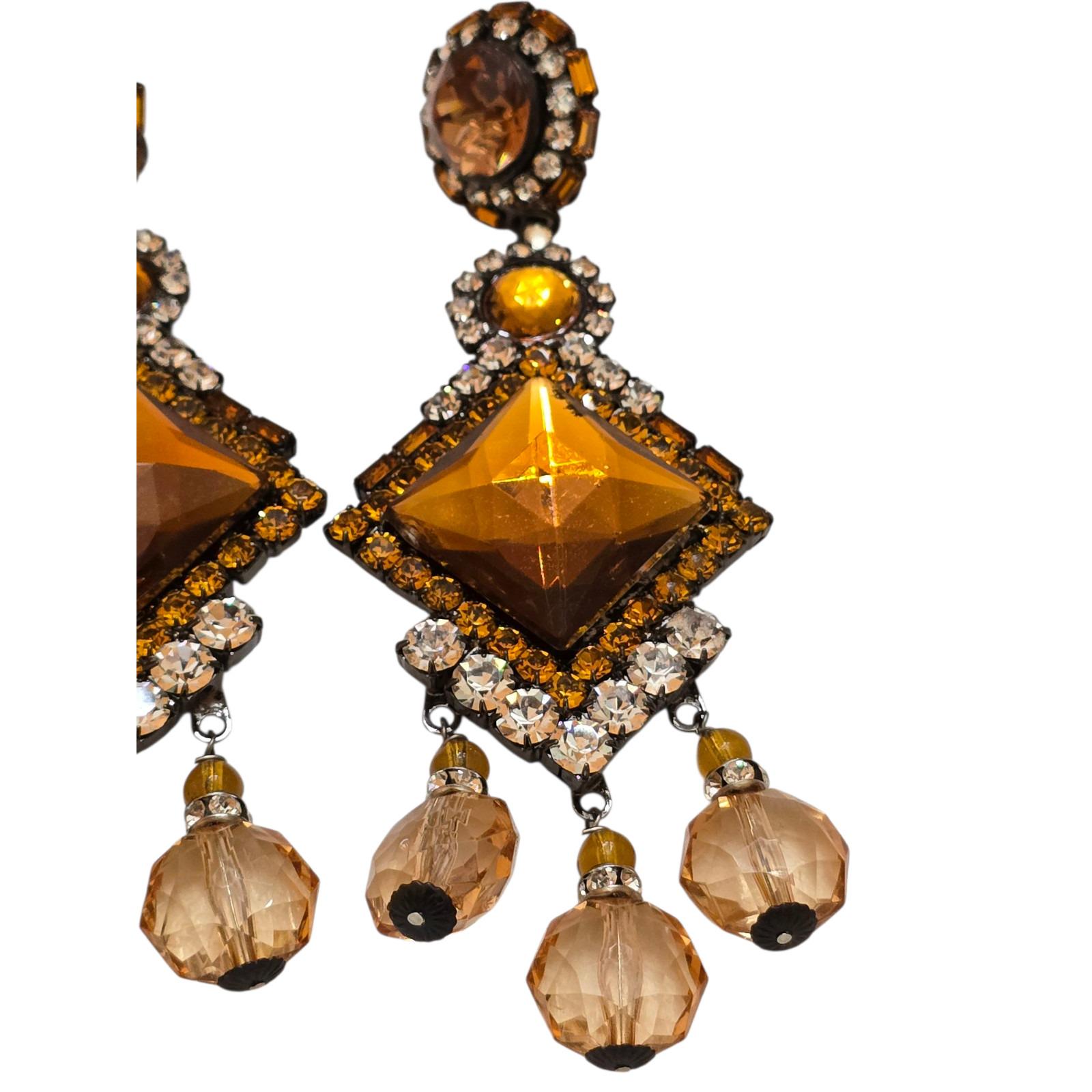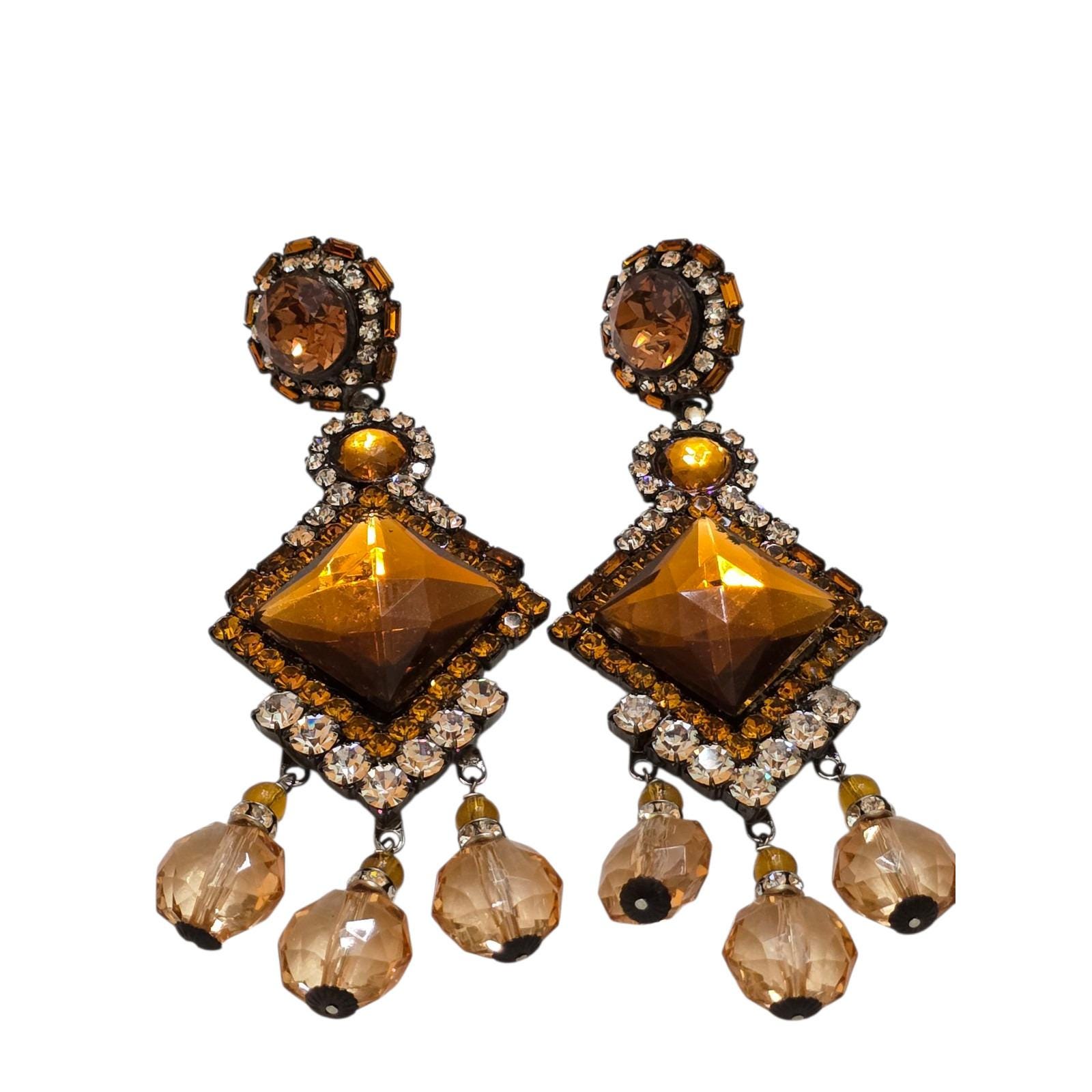 Vintage NOS Larry VRBA Topaz/Clear Chandelier Clip Earrings (A9053)