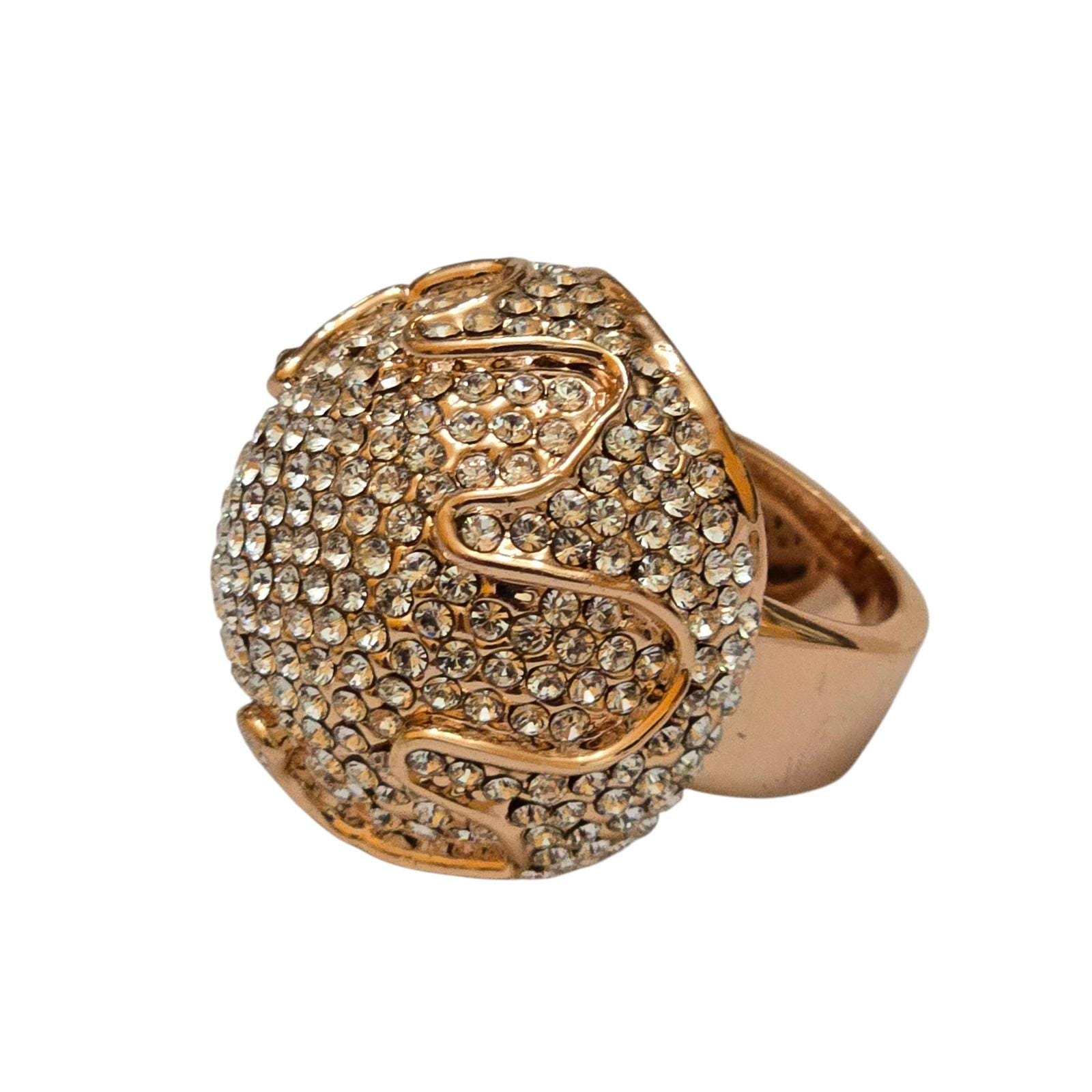Huge Blingy Pink Gold Tone Cocktail Ring Size 8 (A9058)