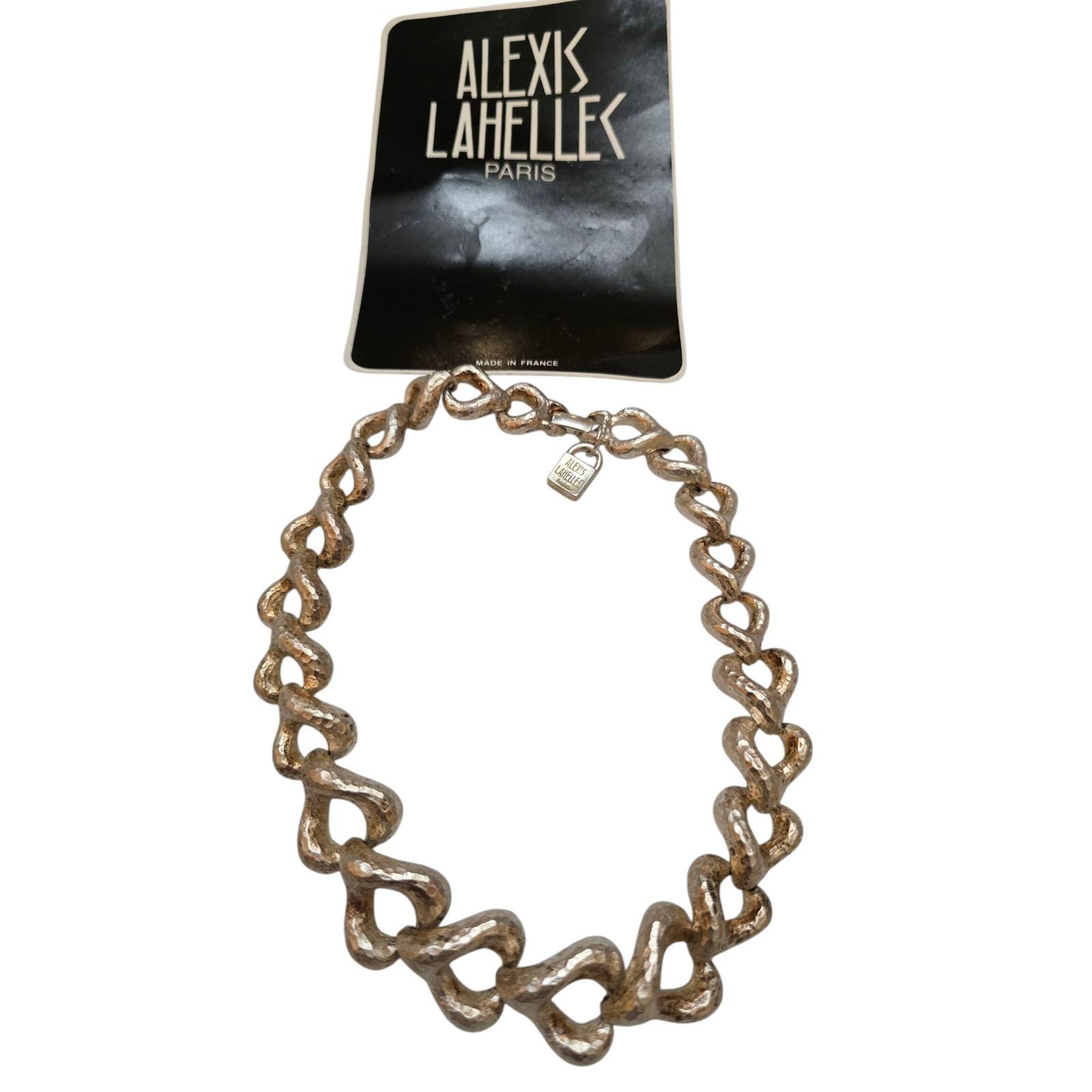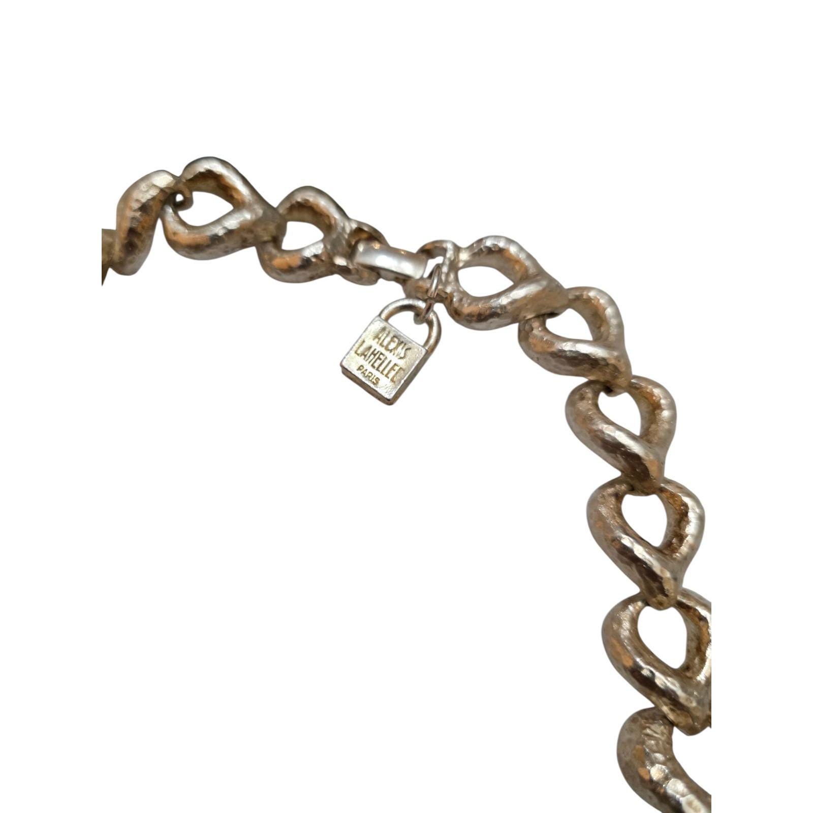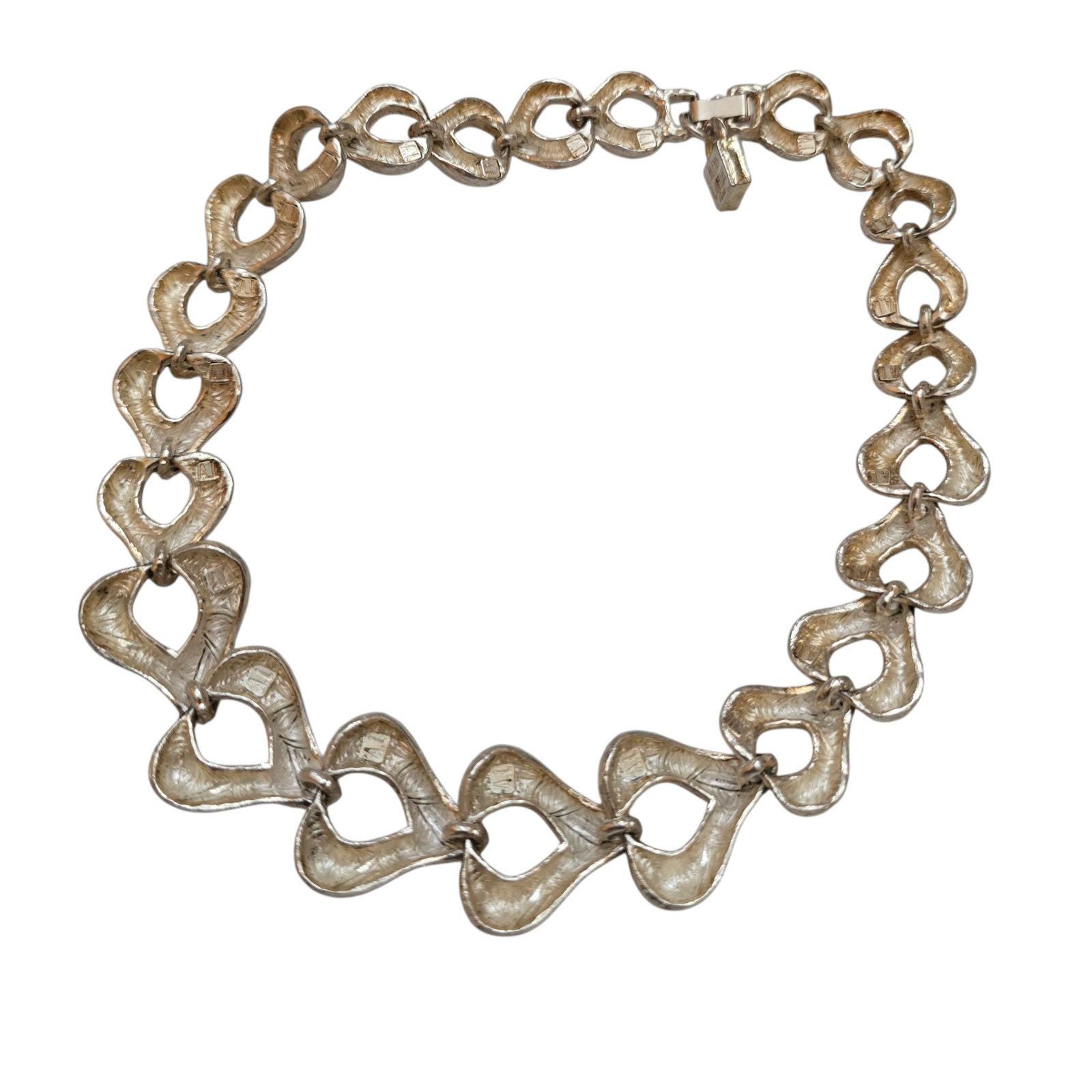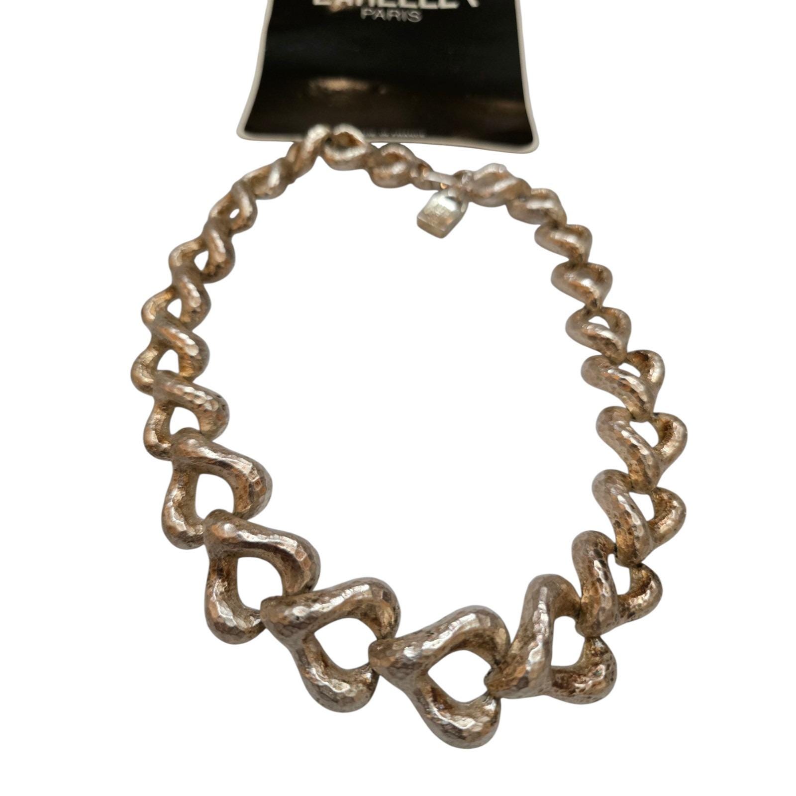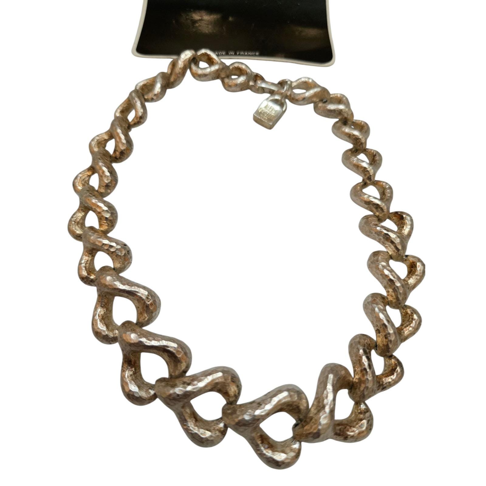 Vintage 80s Rare Alexis Lahellec Paris NOS Matte Silver Metal Chunky Heavy Heart Chain Necklace (A9048)