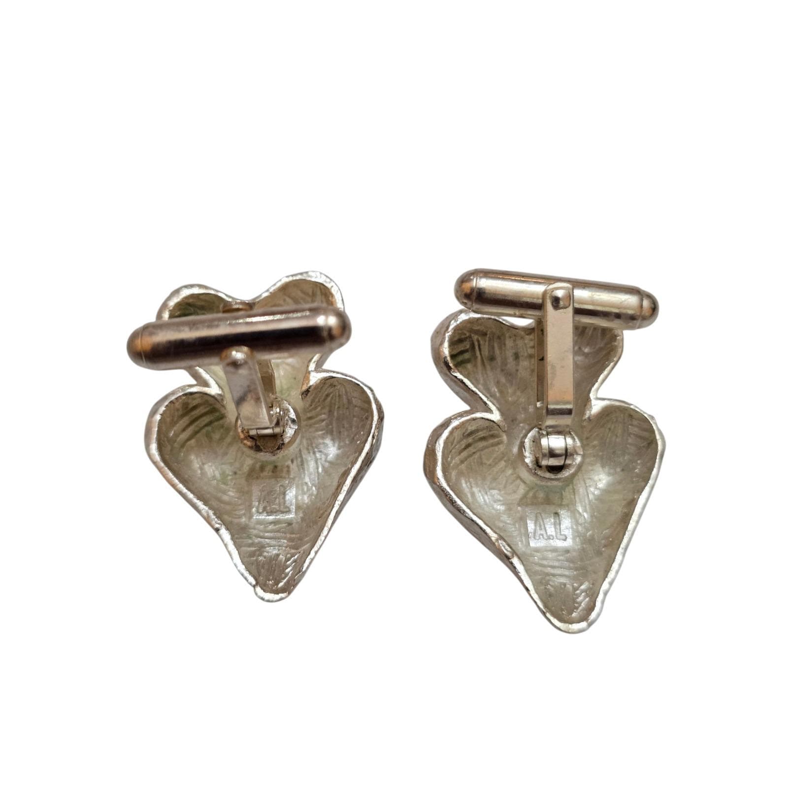 In very good condition, signed A.L., cufflinks by him are hard to find. Approx. 1.5" with card.