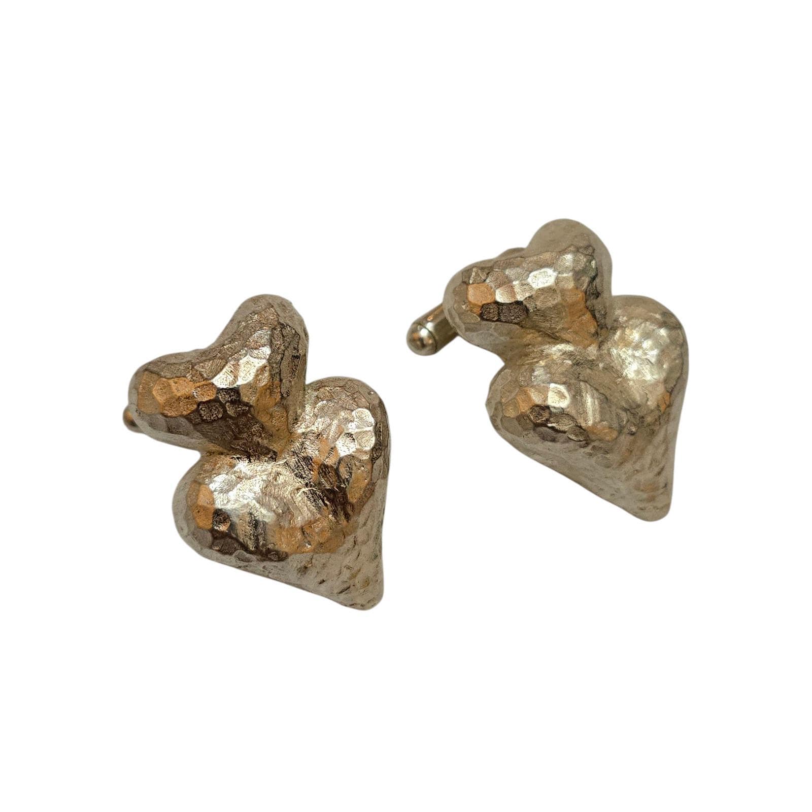 VINTAGE 80S RARE ALEXIS LAHELLEC PARIS NOS SILVER GILT DOUBLE HEART CUFFLINKS (A9045)