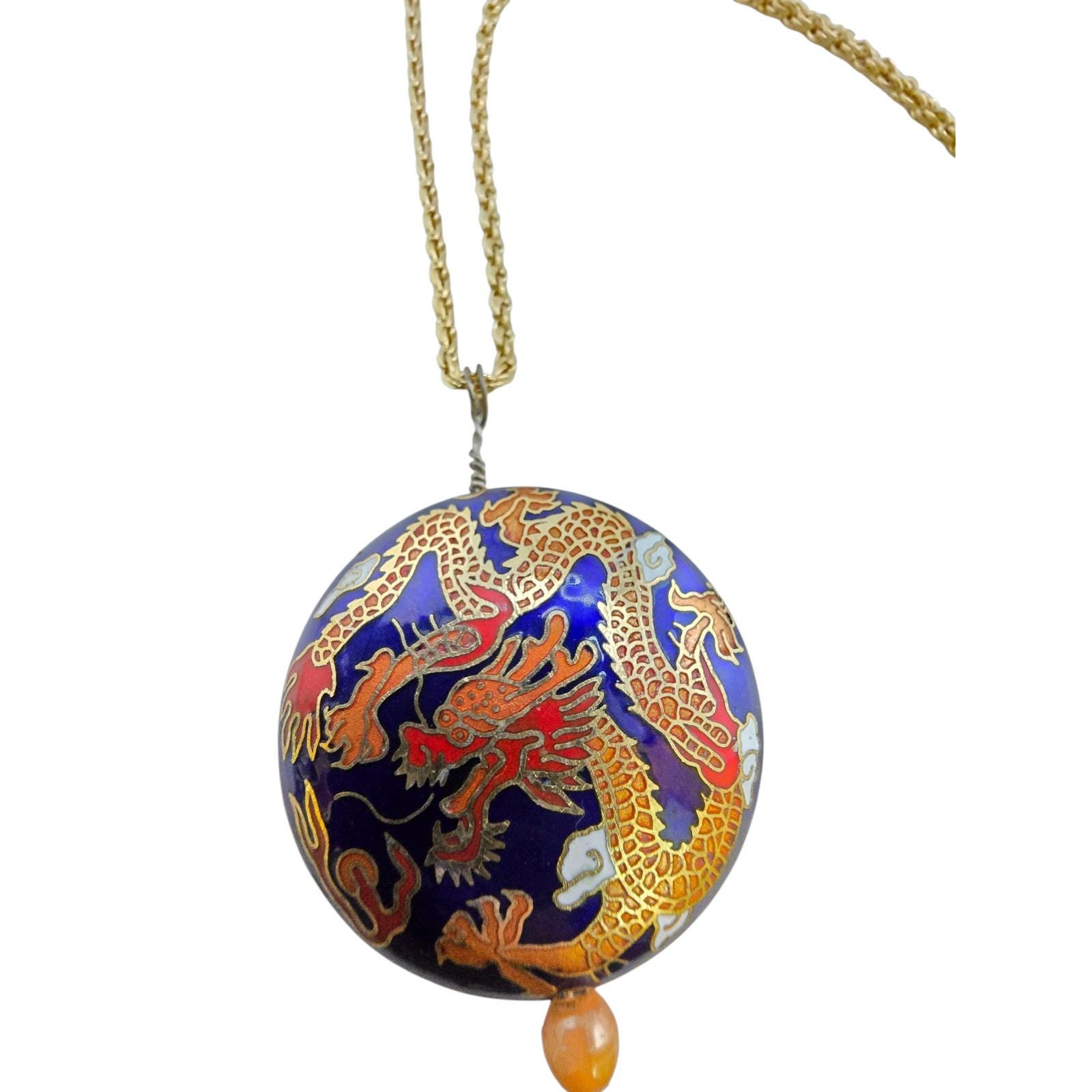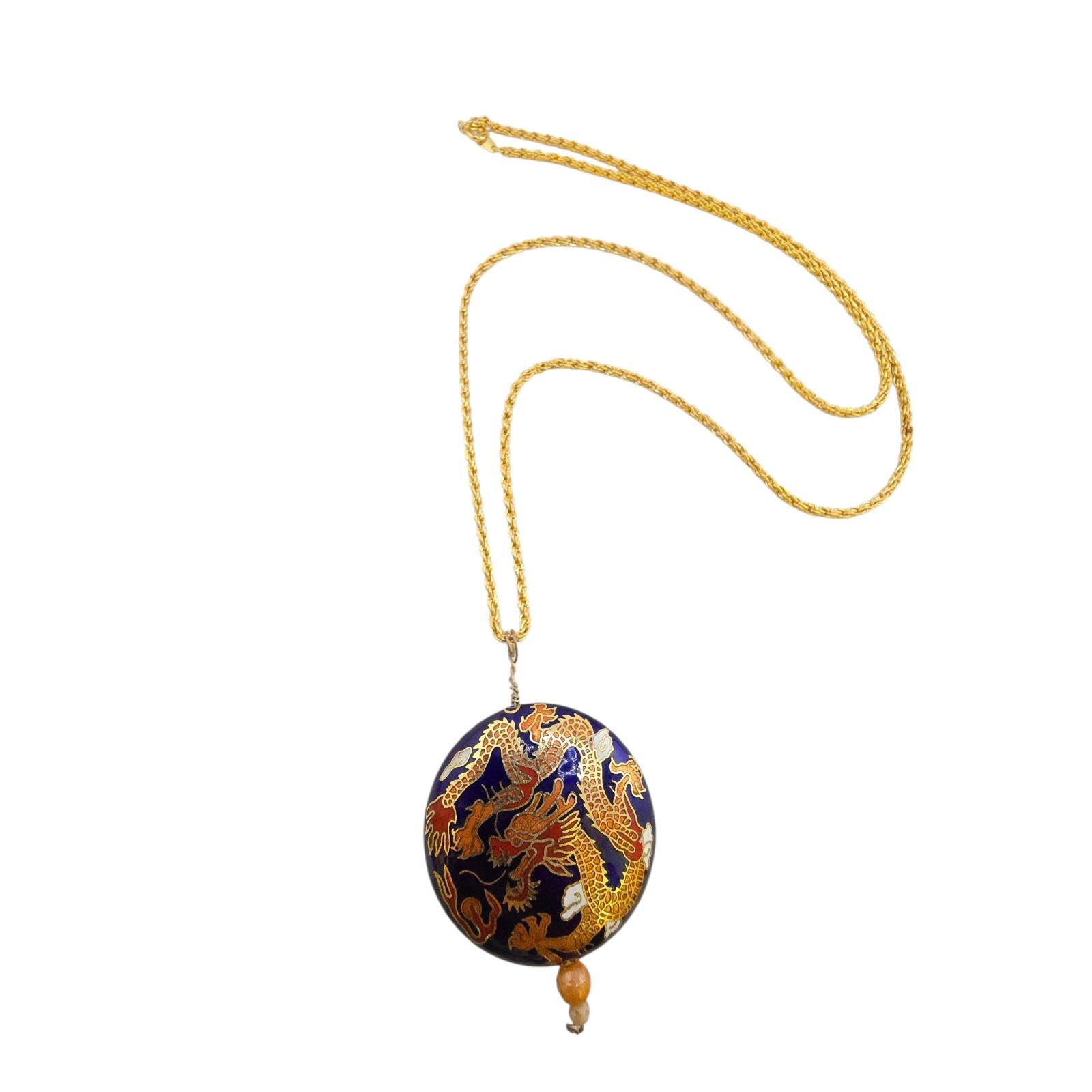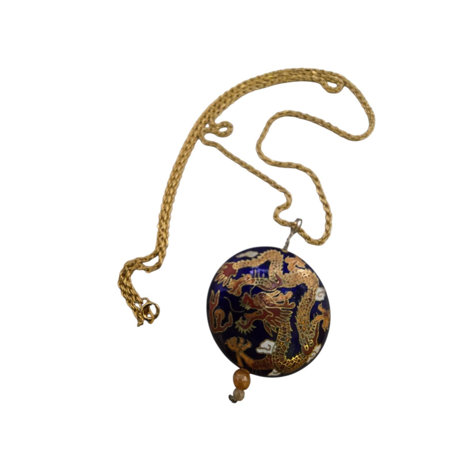 Vintage Double-Sided Dragon Design Cloisonné Pendant Necklace (A8704)