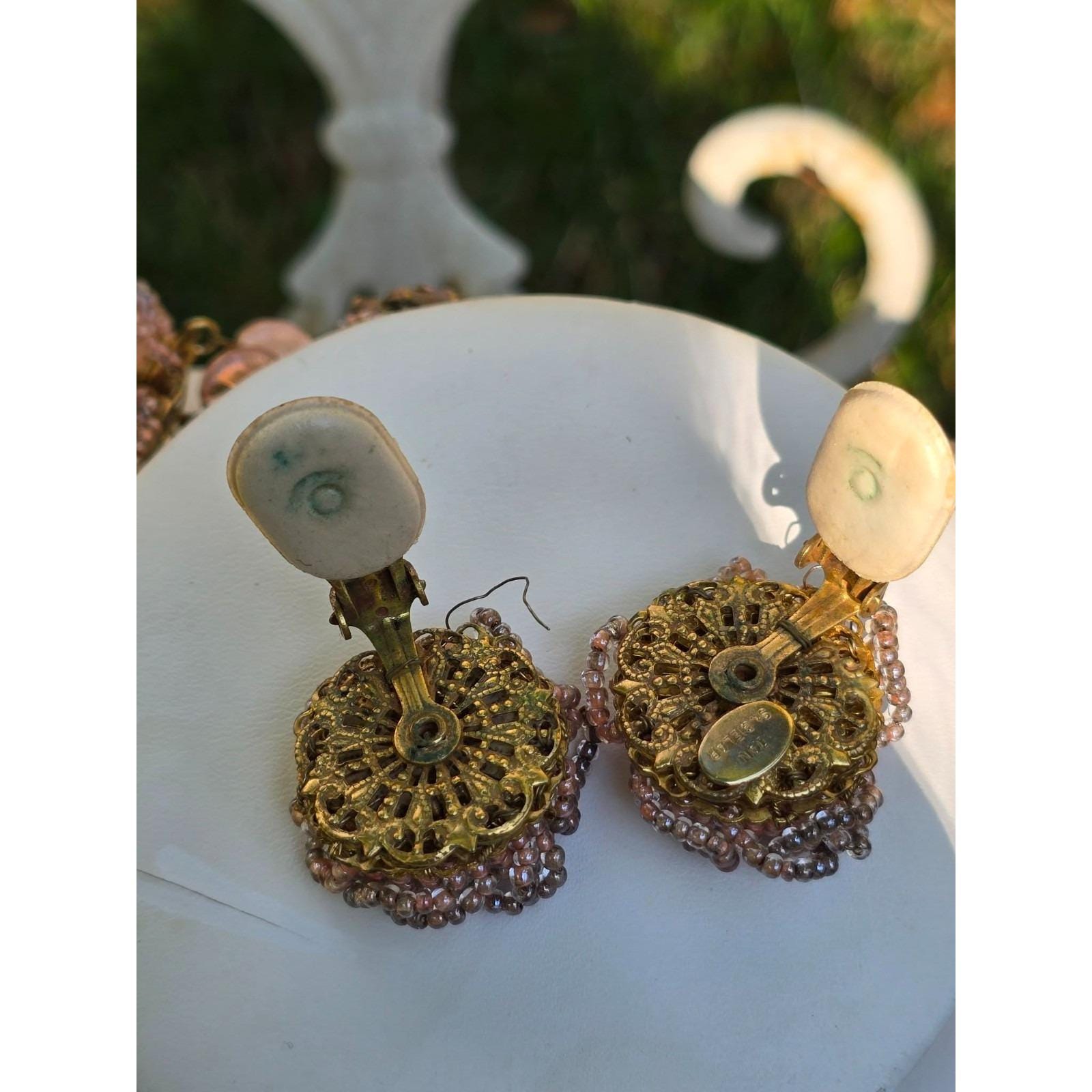 - One earring has a small piece of wire visible where some seed beads are missing.