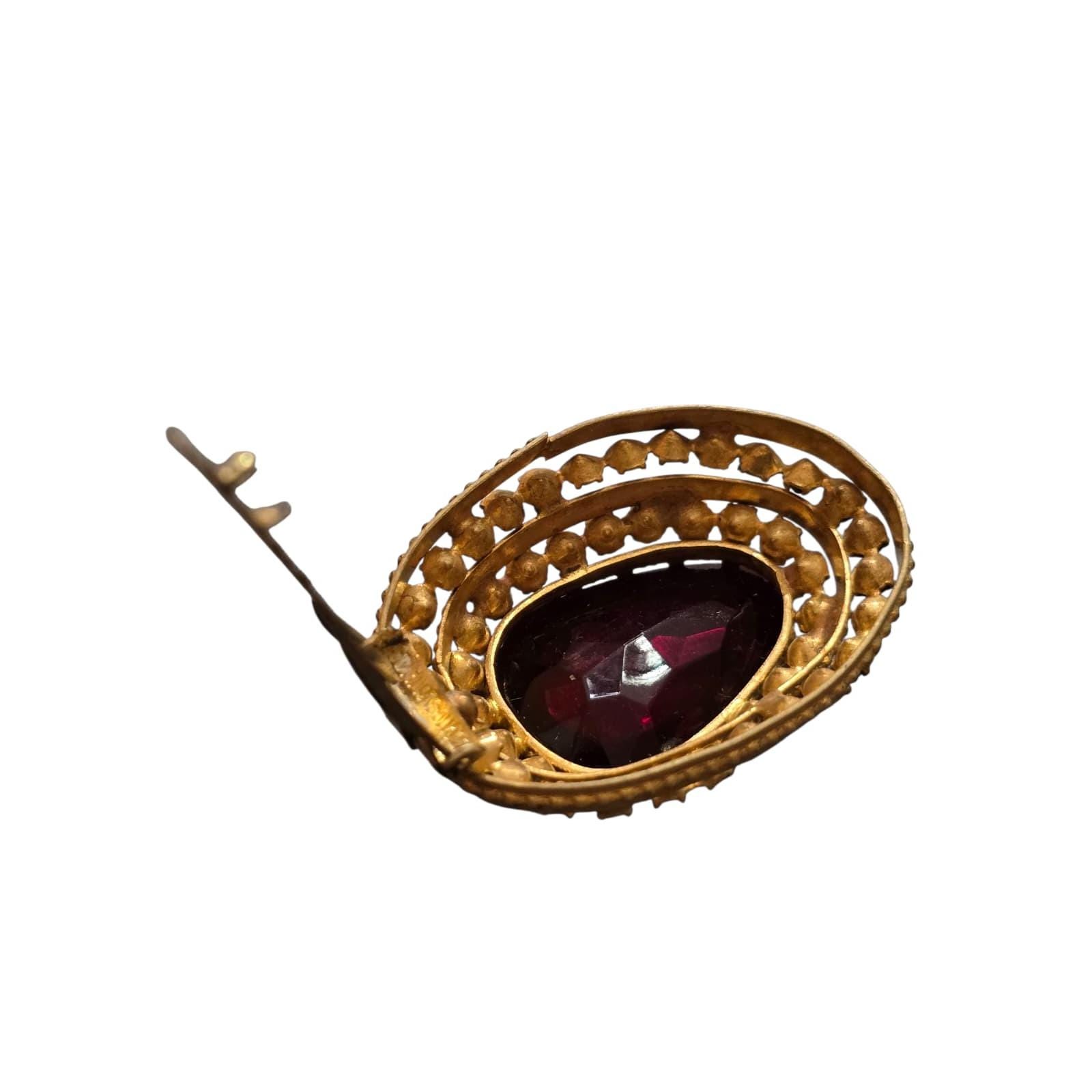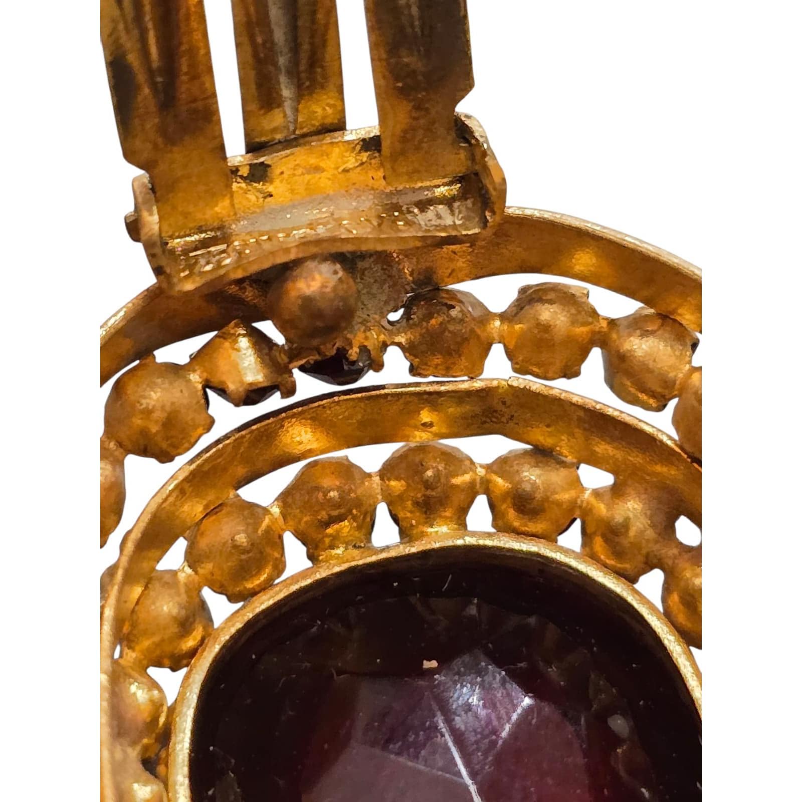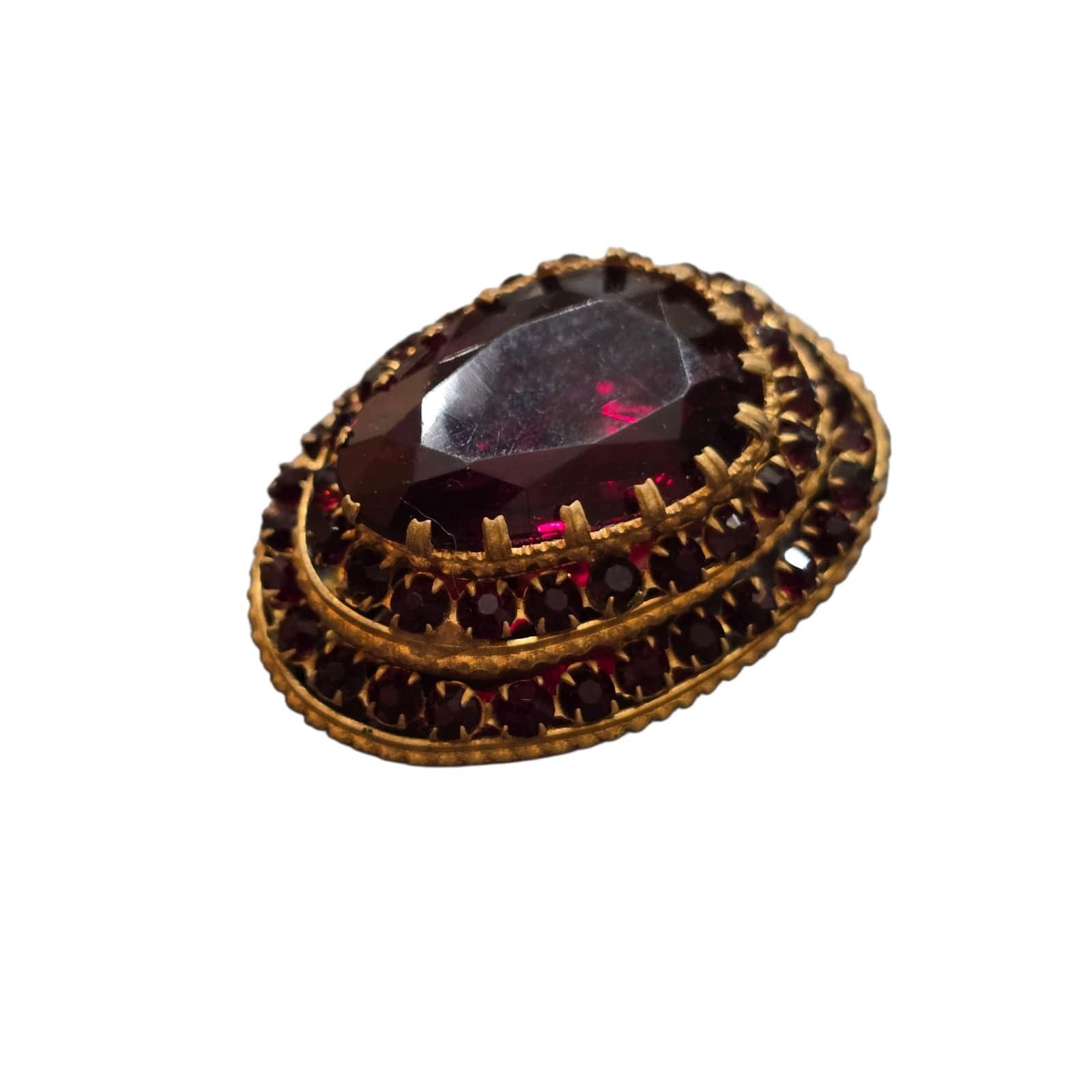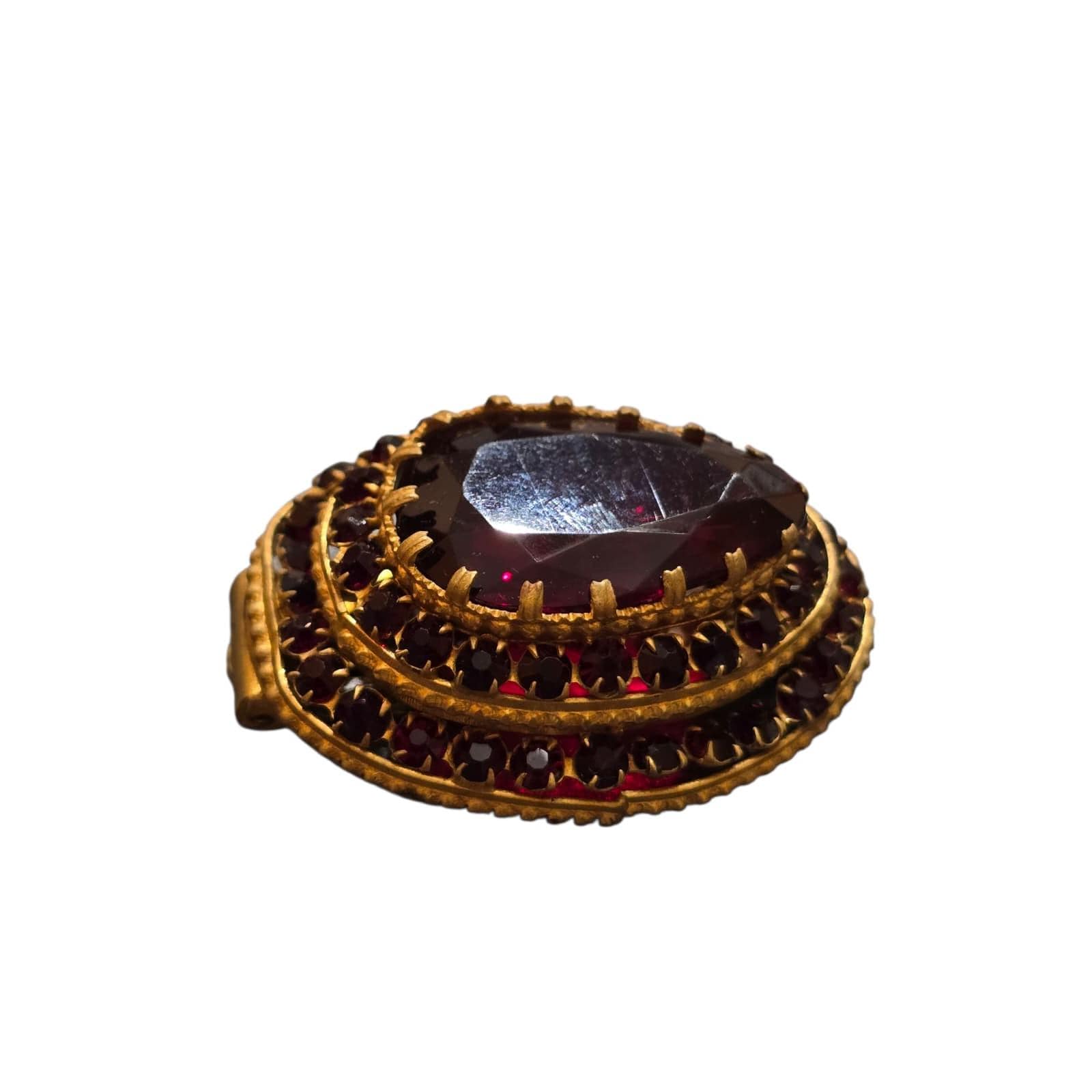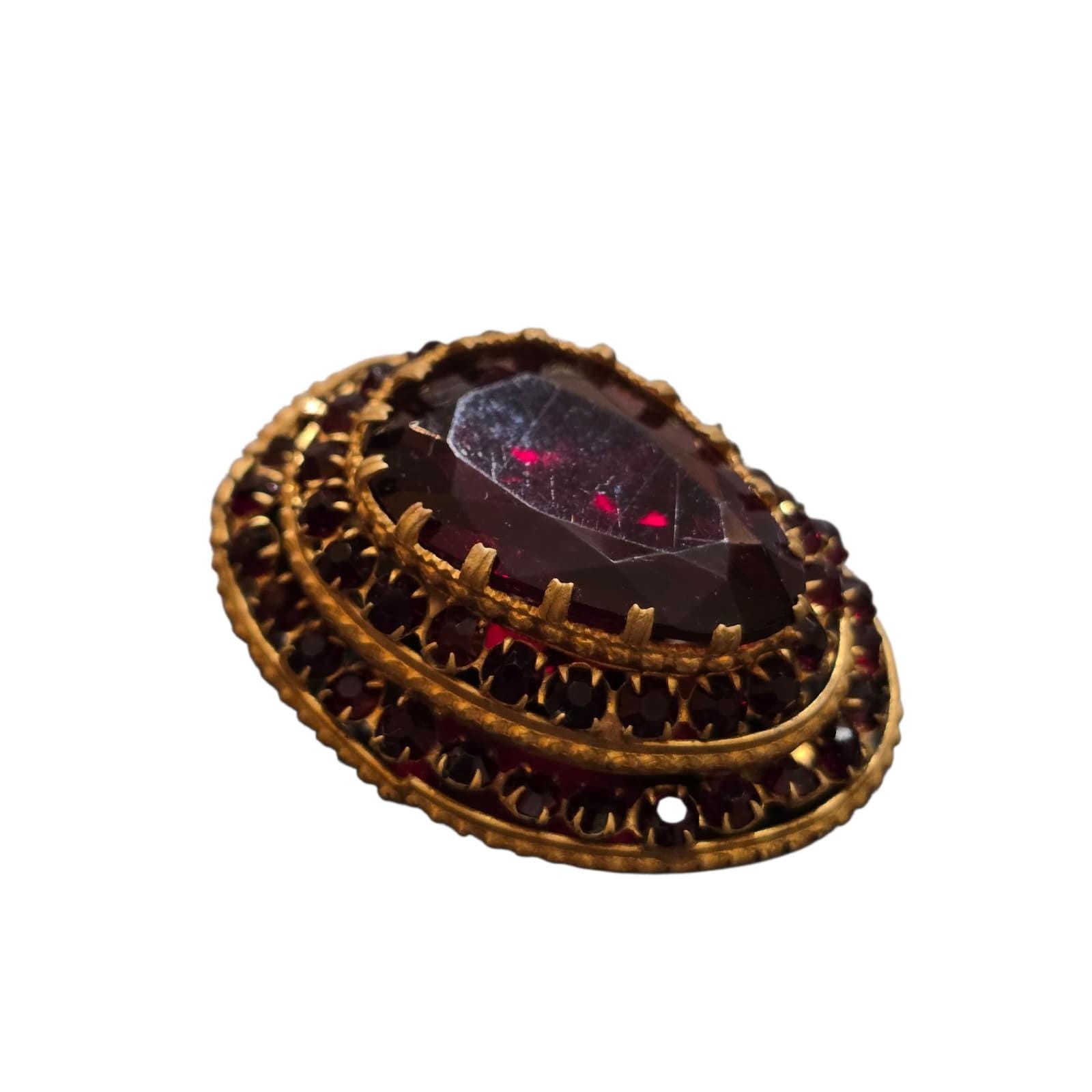 Antique Marked Czech Layered Bohemian Garnet Glass Dress Clip (A6797)