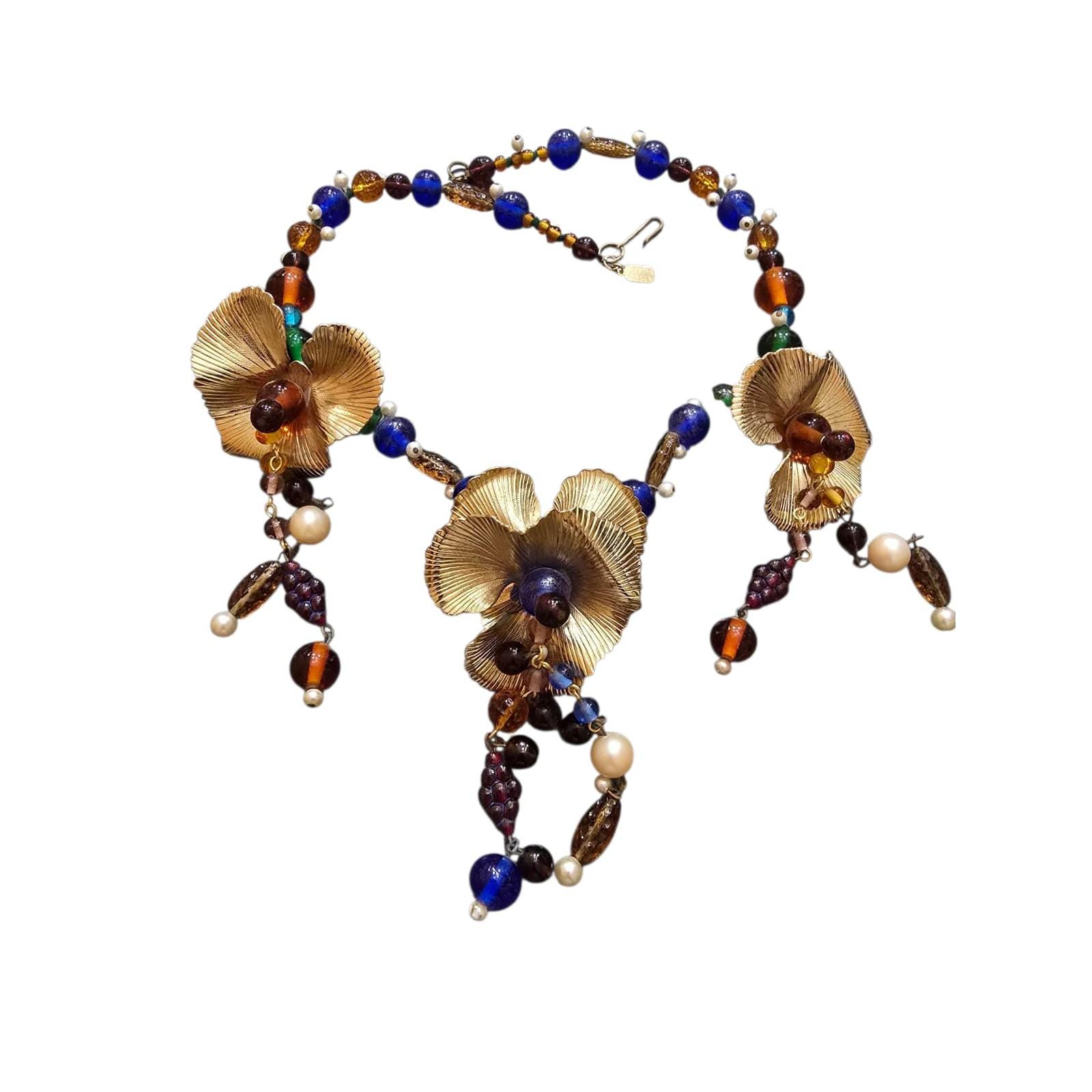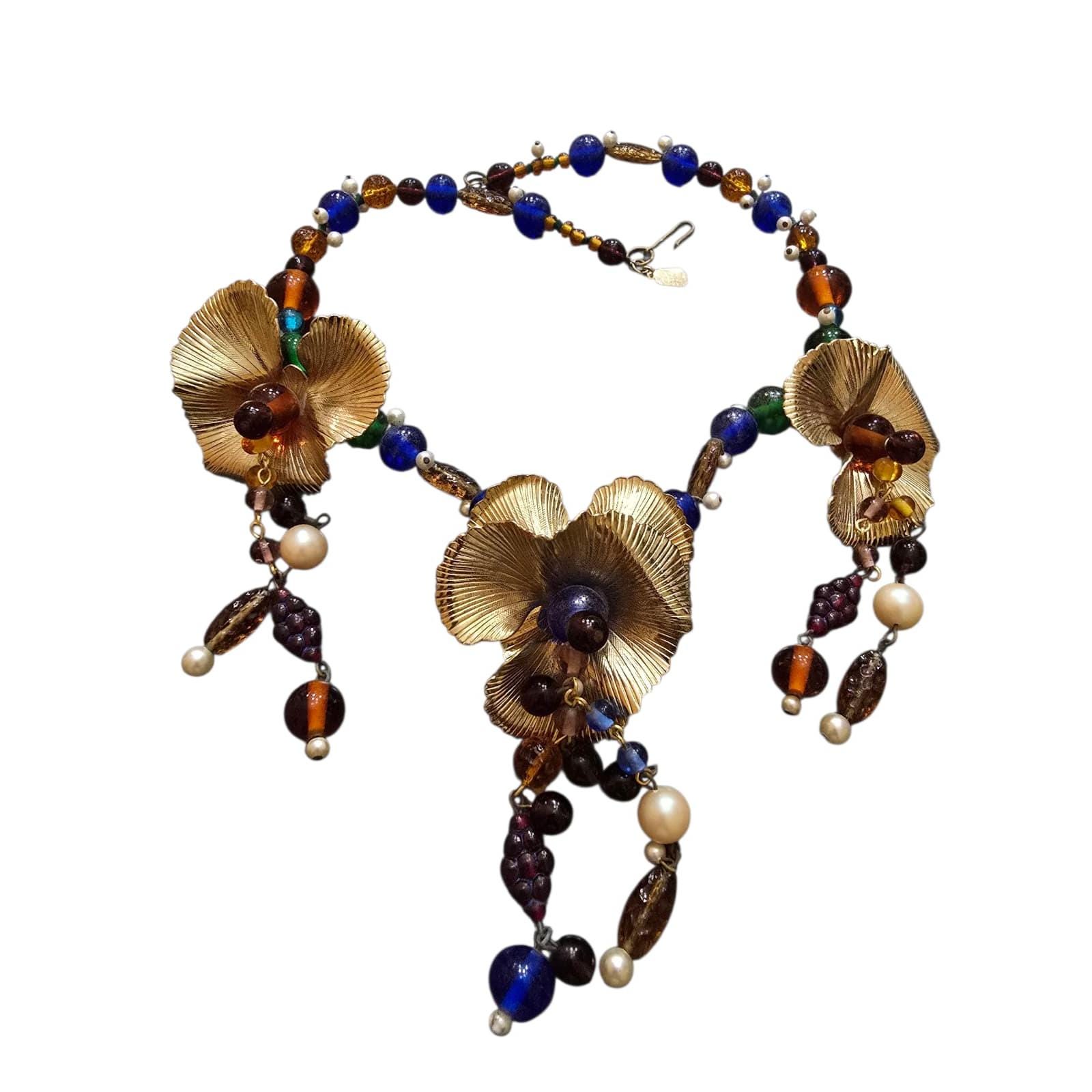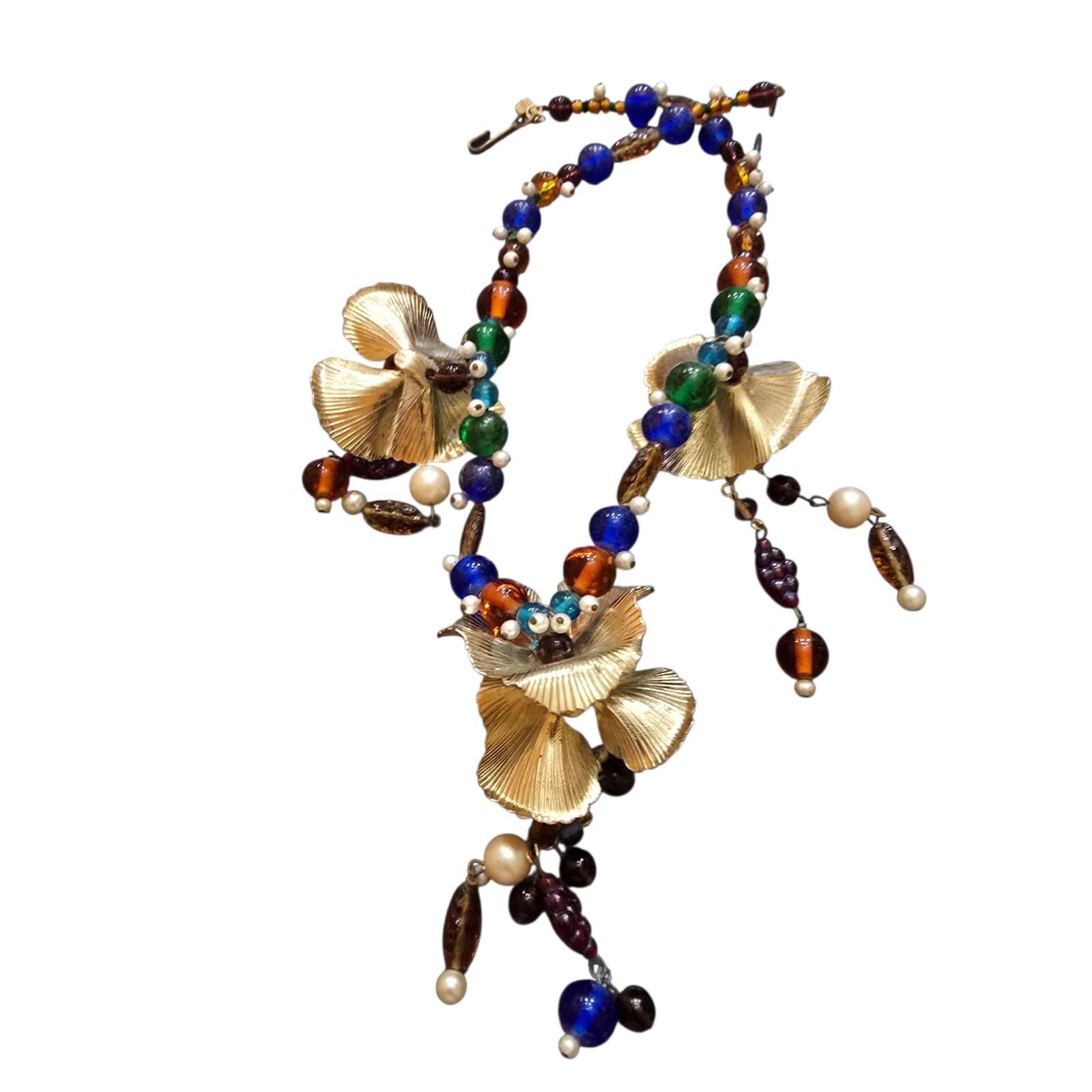 Vintage Olympia Gibson Signed Unique Glass Flower Necklace (A9488)