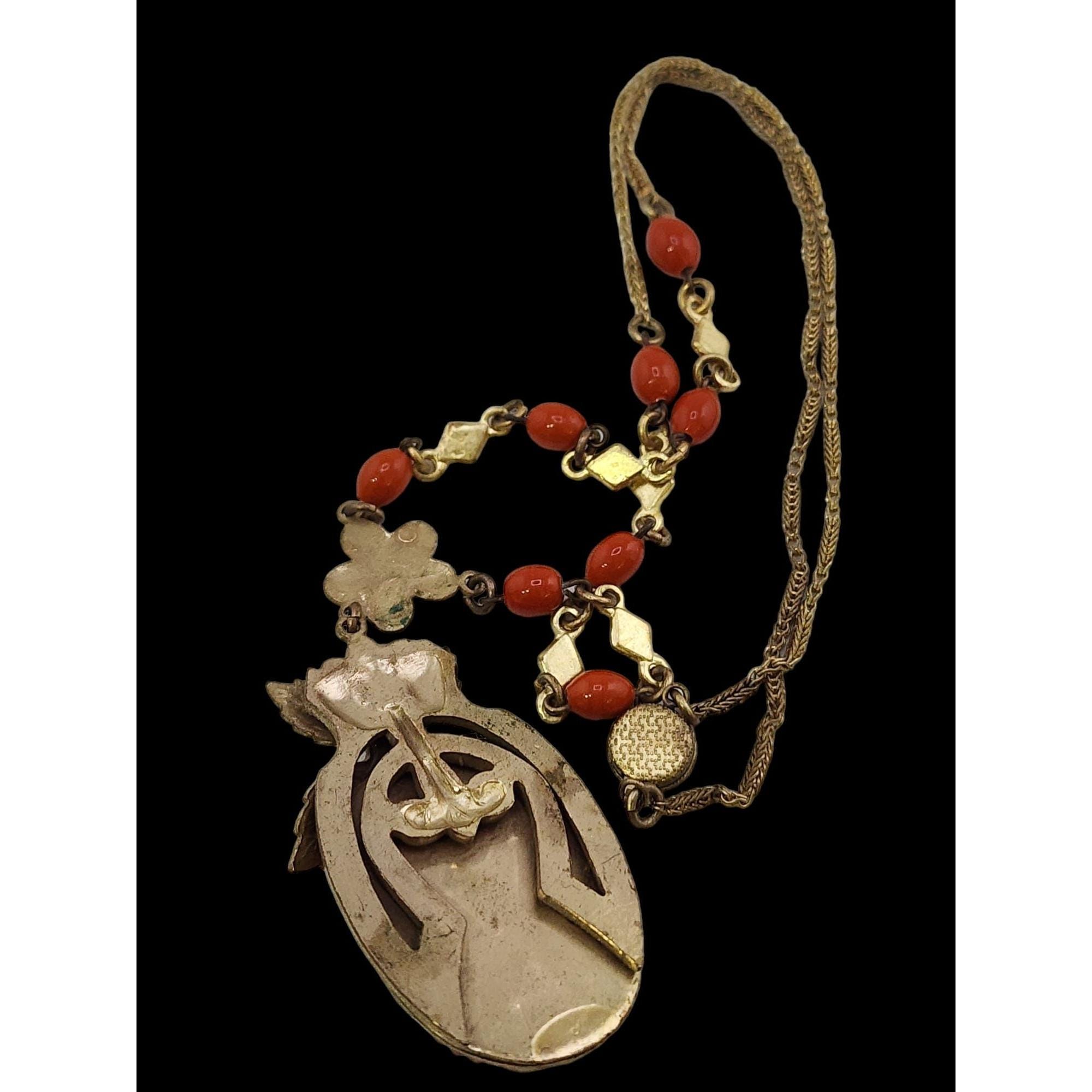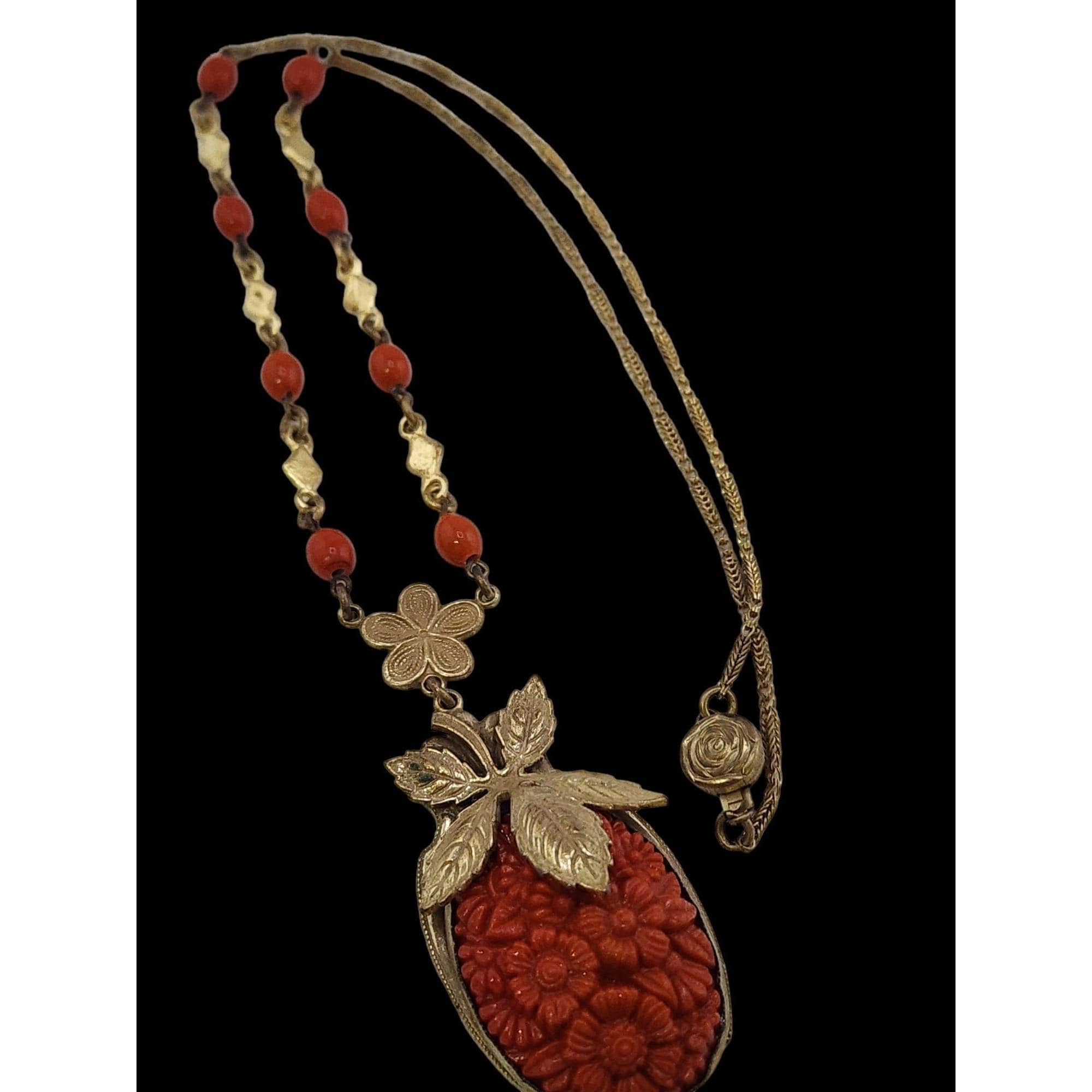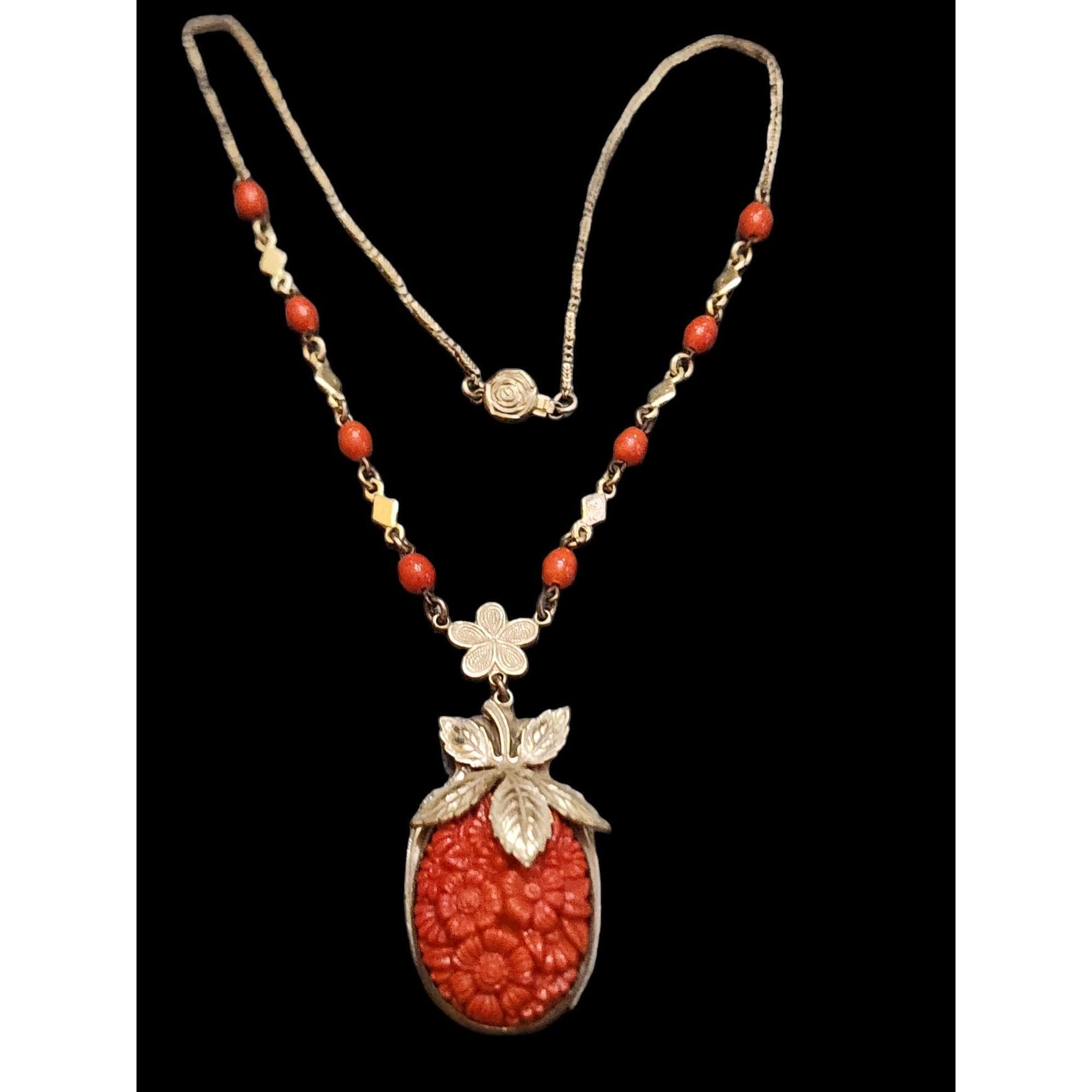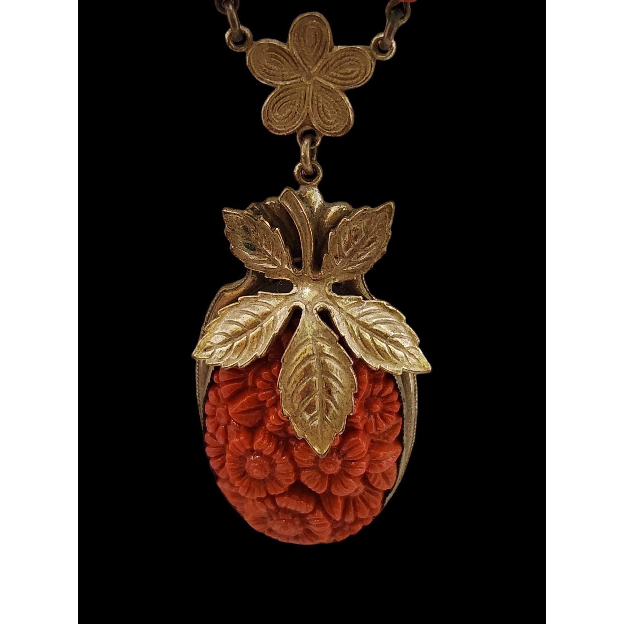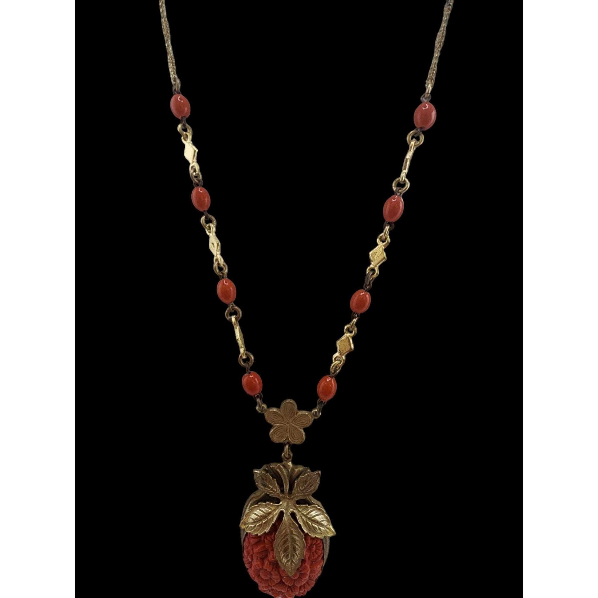 Antique Molded Floral Glass Pendant Necklace (A4877)