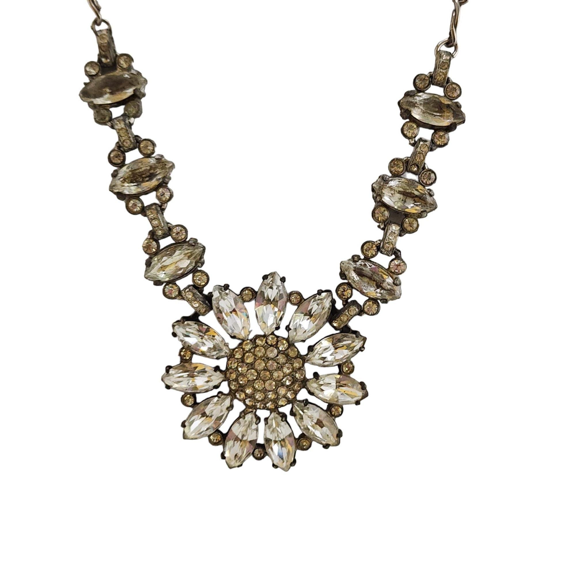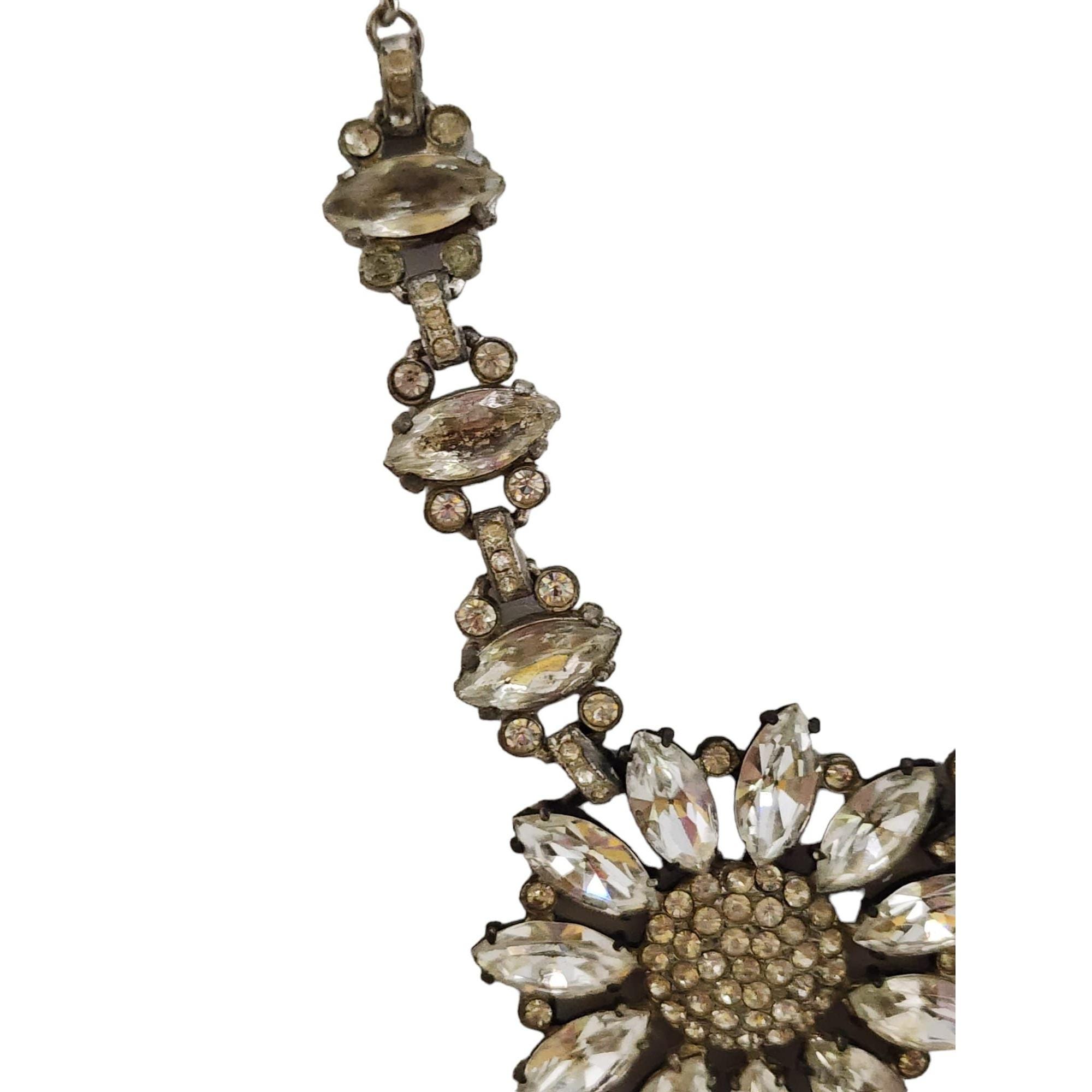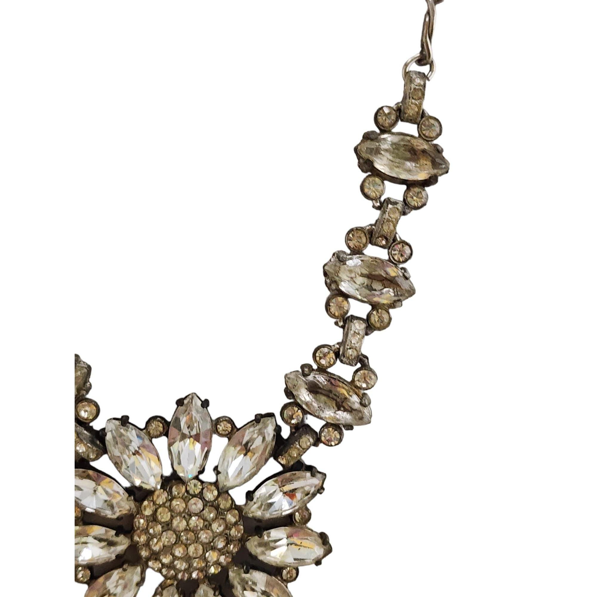 Vintage Blingy Rhinestone Flower Necklace (A4886)