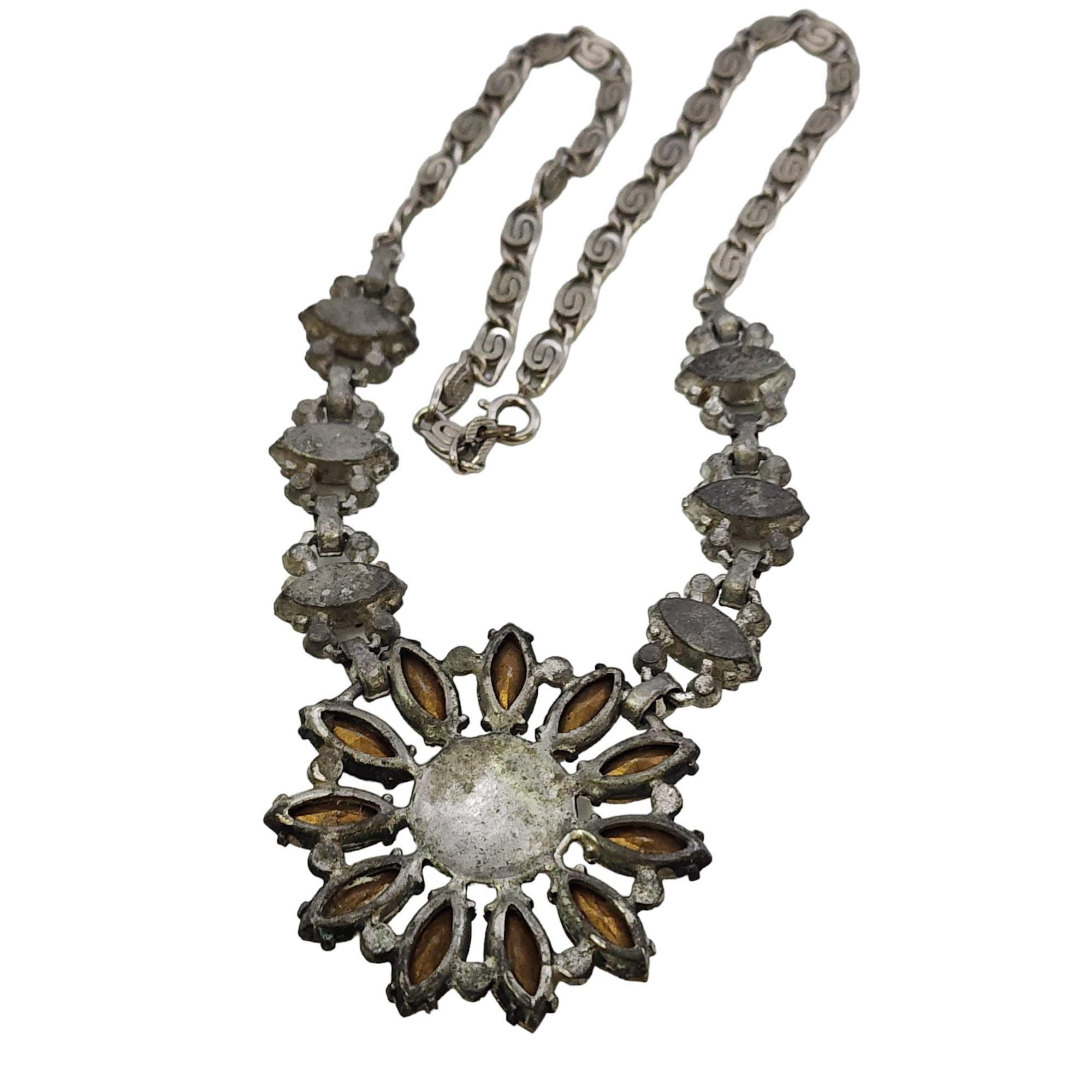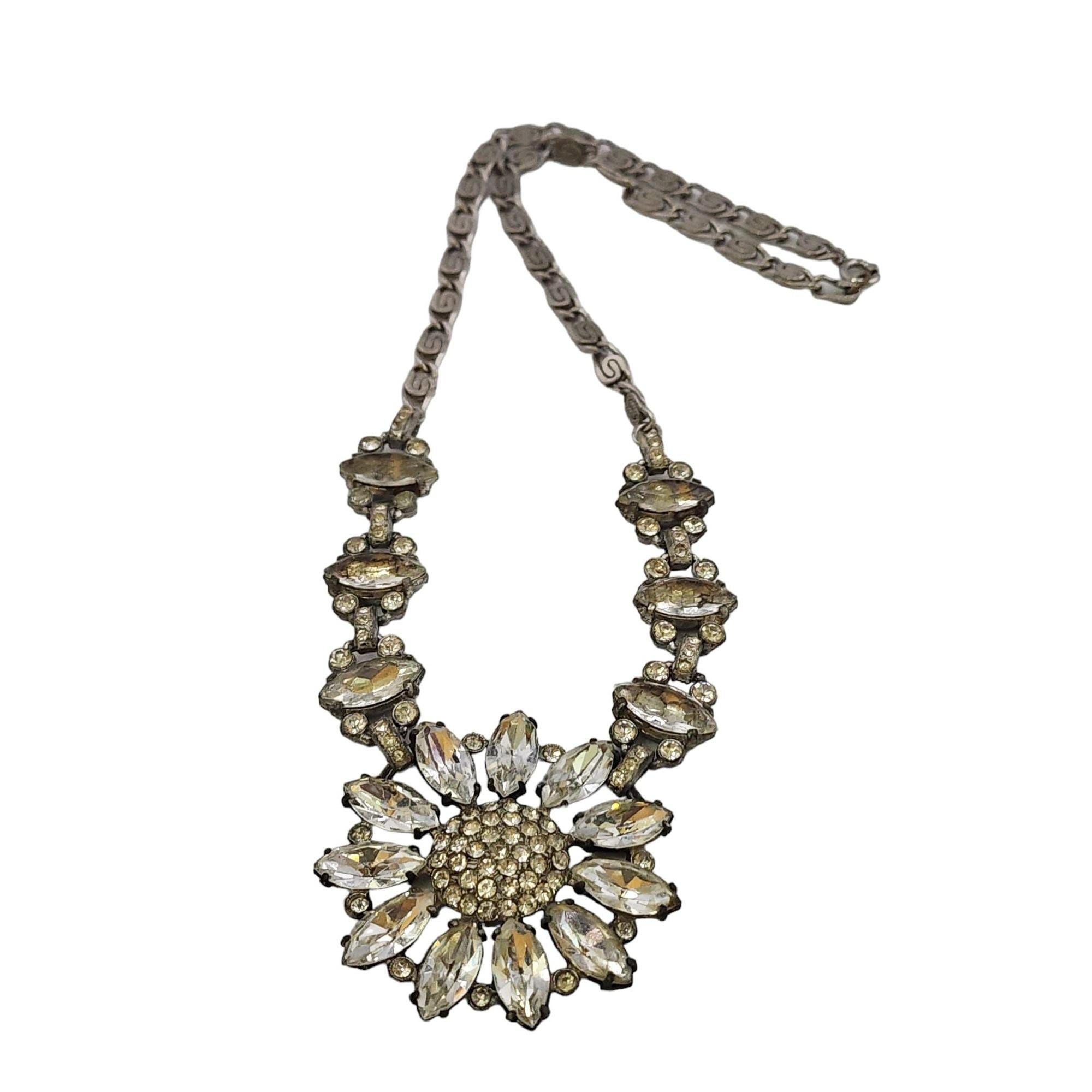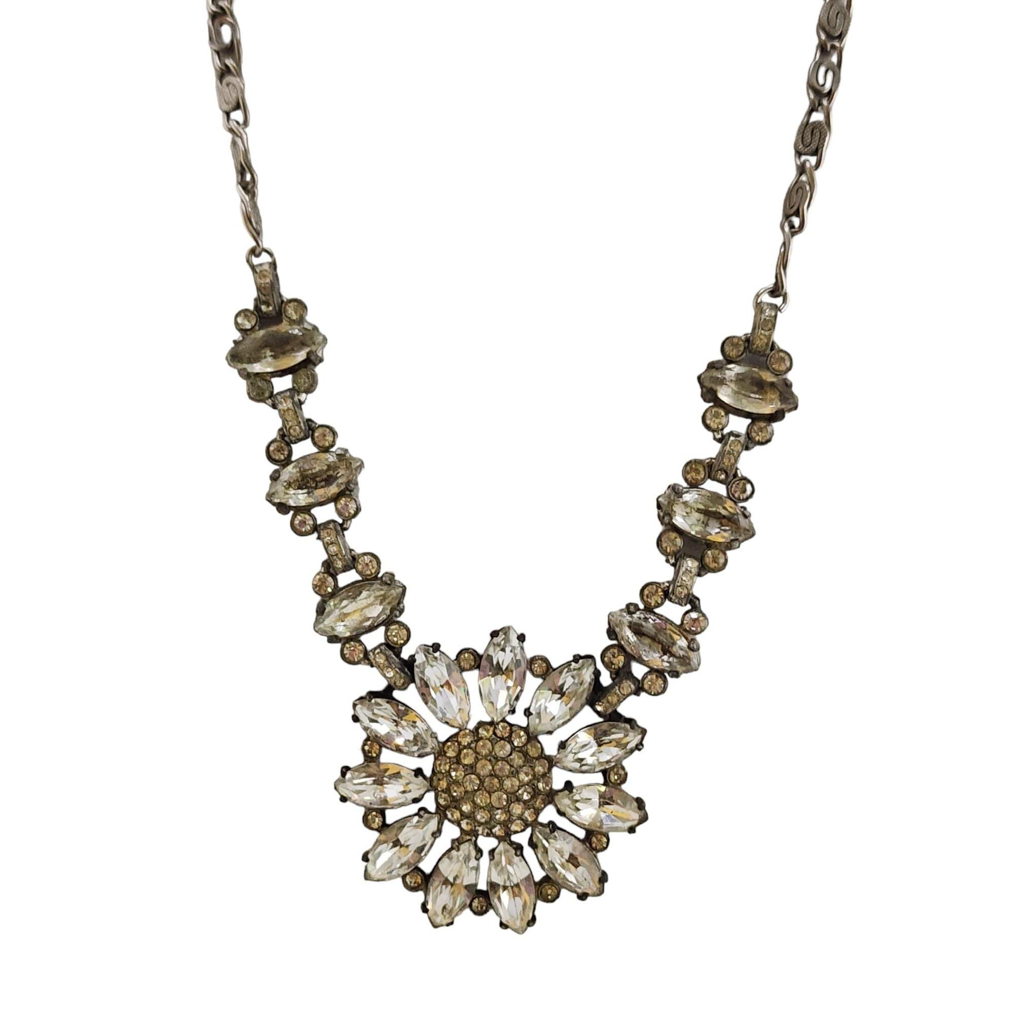 Vintage Blingy Rhinestone Flower Necklace (A4886)