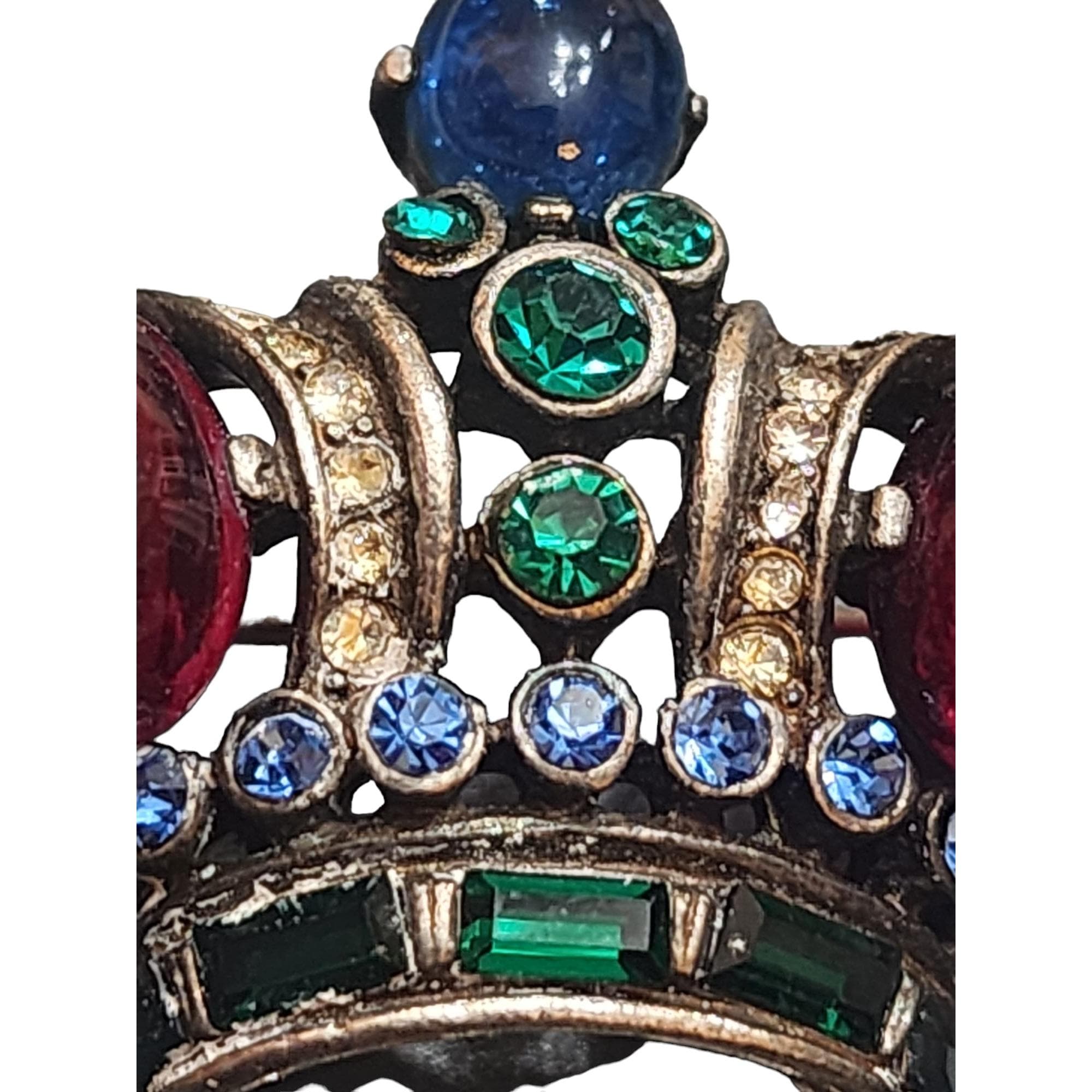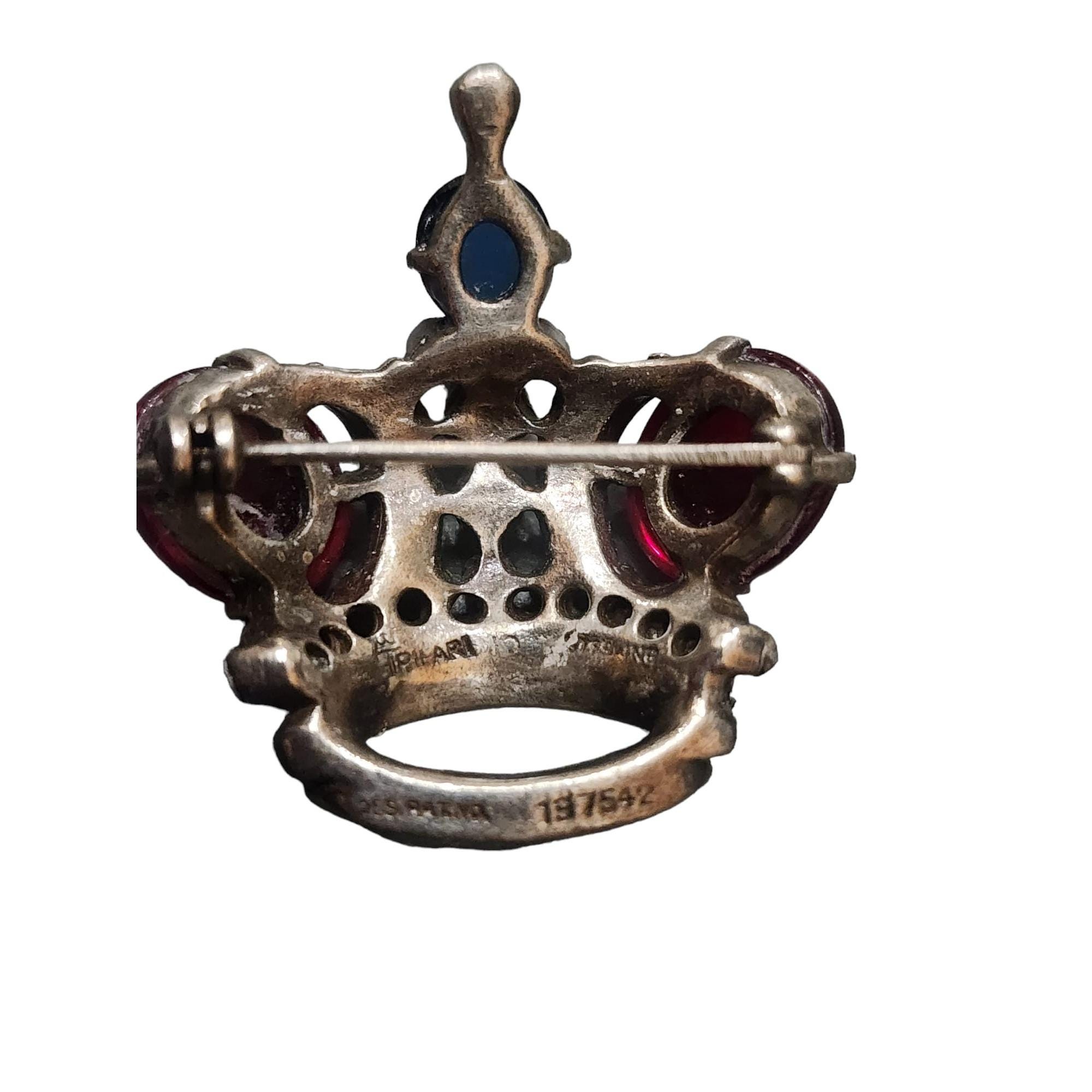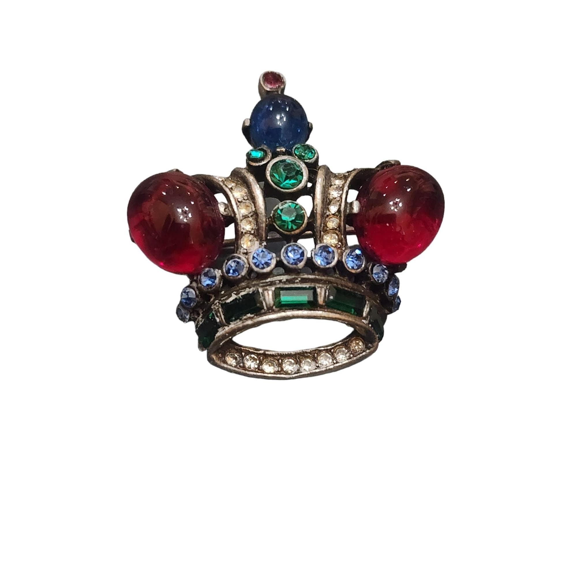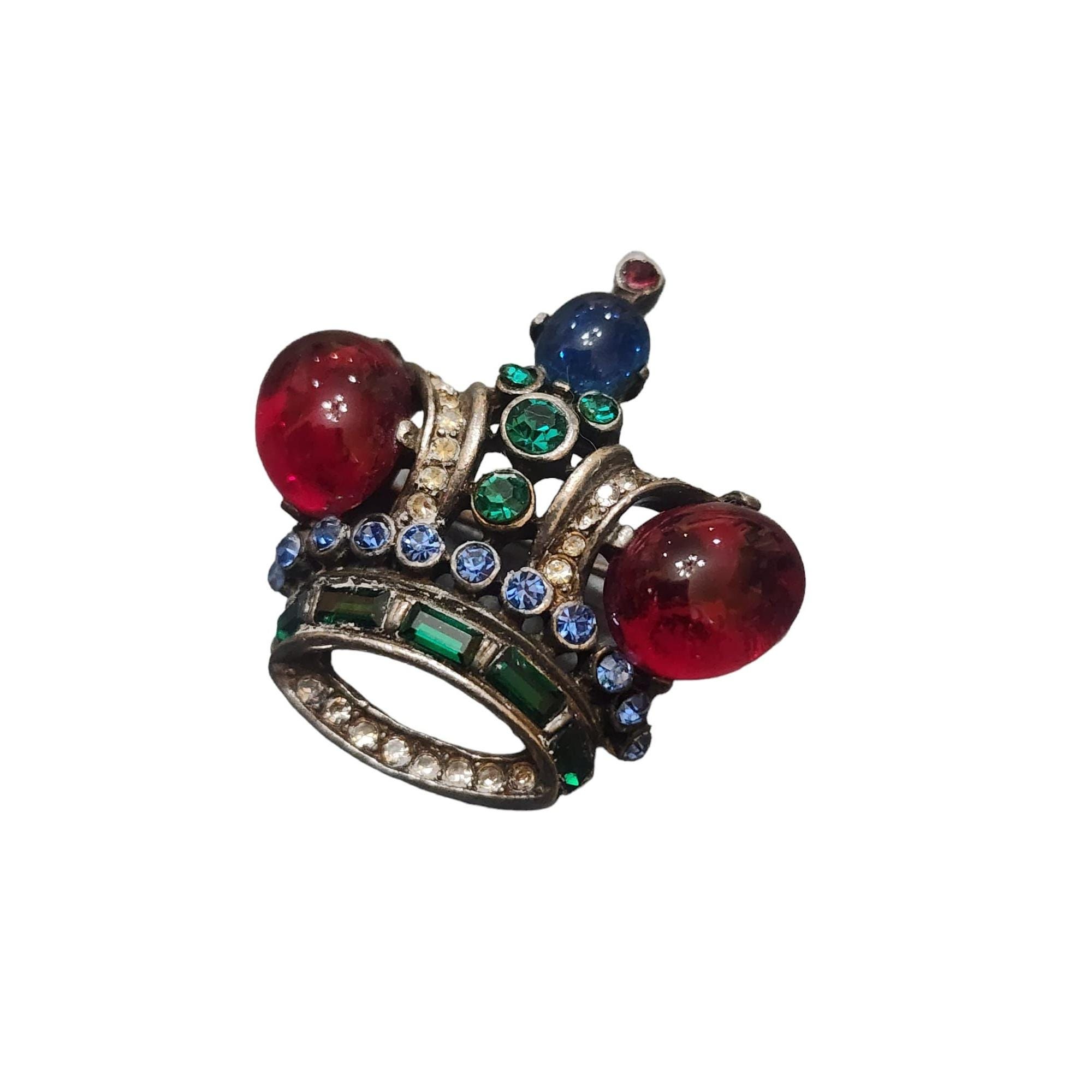 Vintage Trifari Coronation Jeweled Sterling Crown Brooch Pat #137542 (A4617)