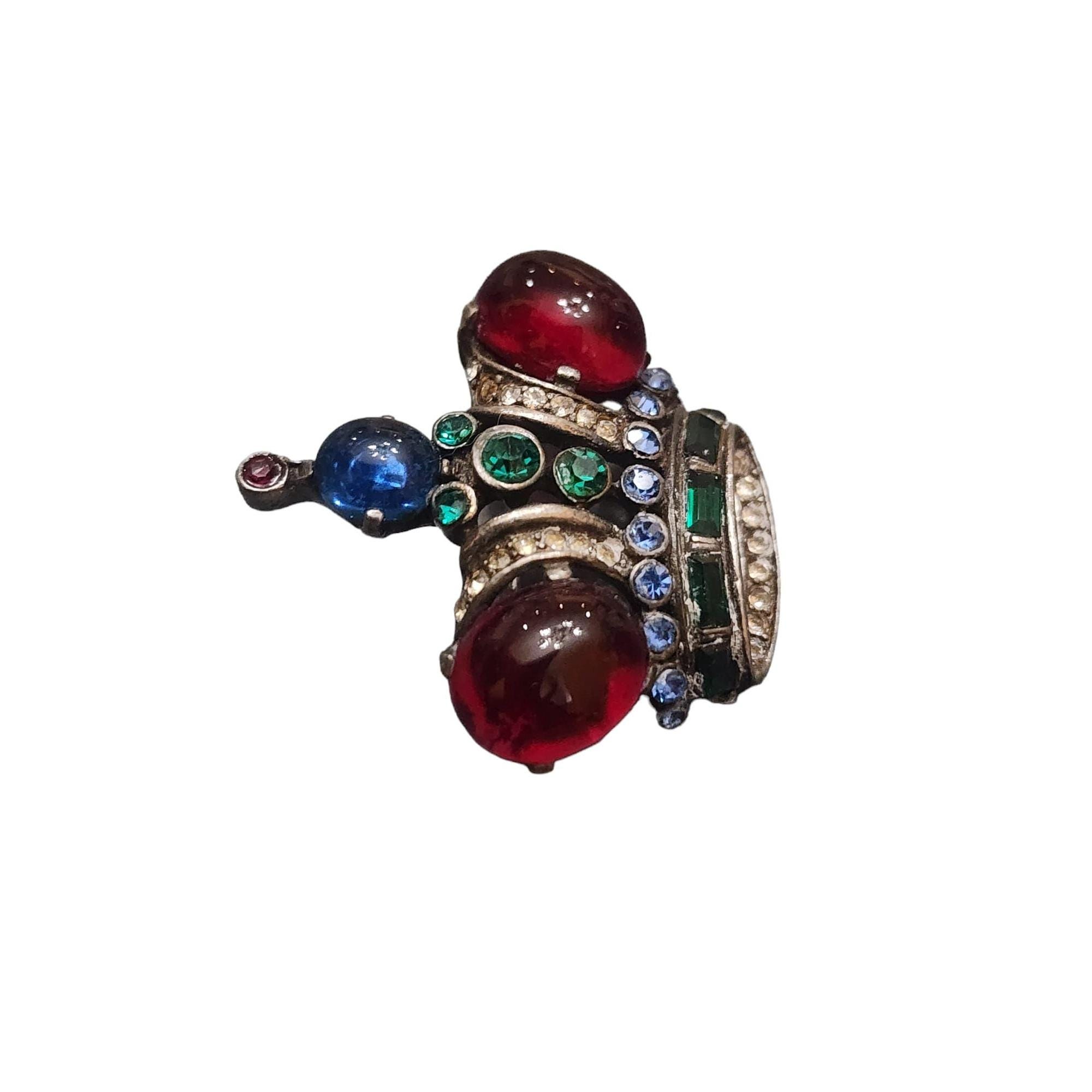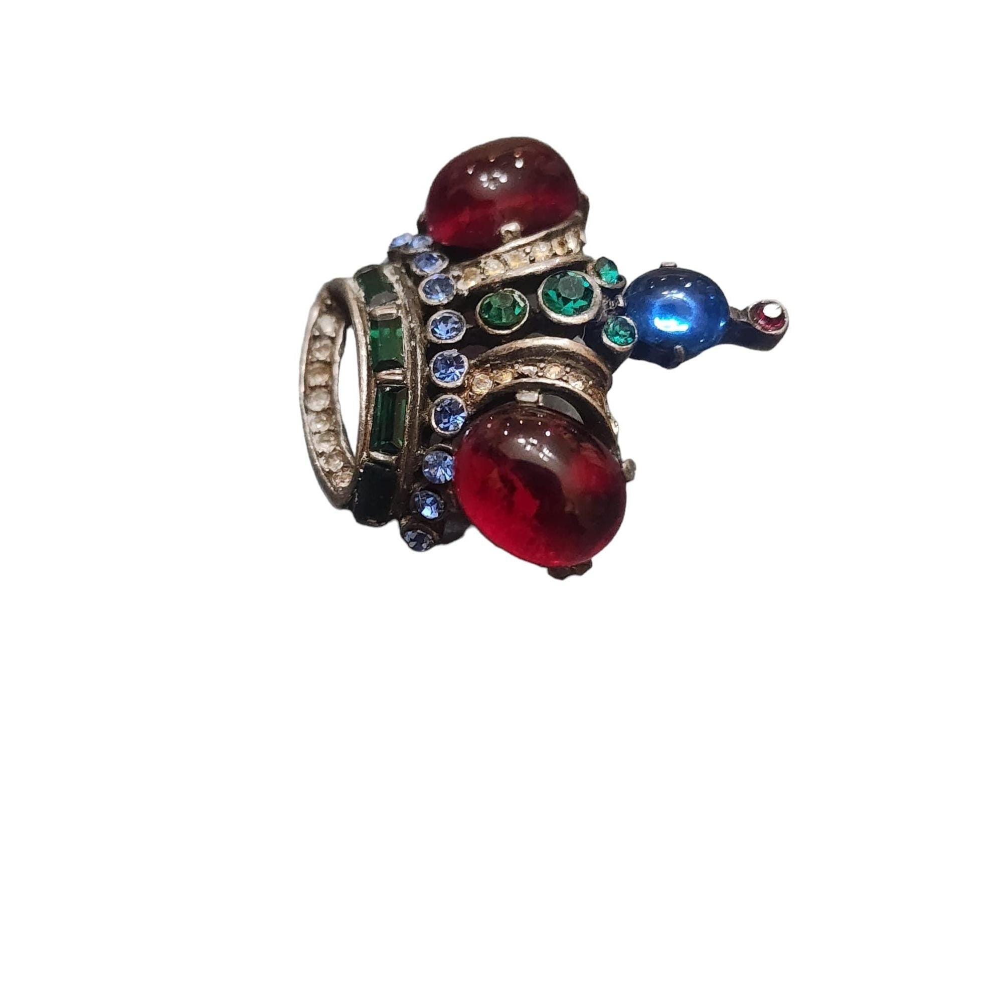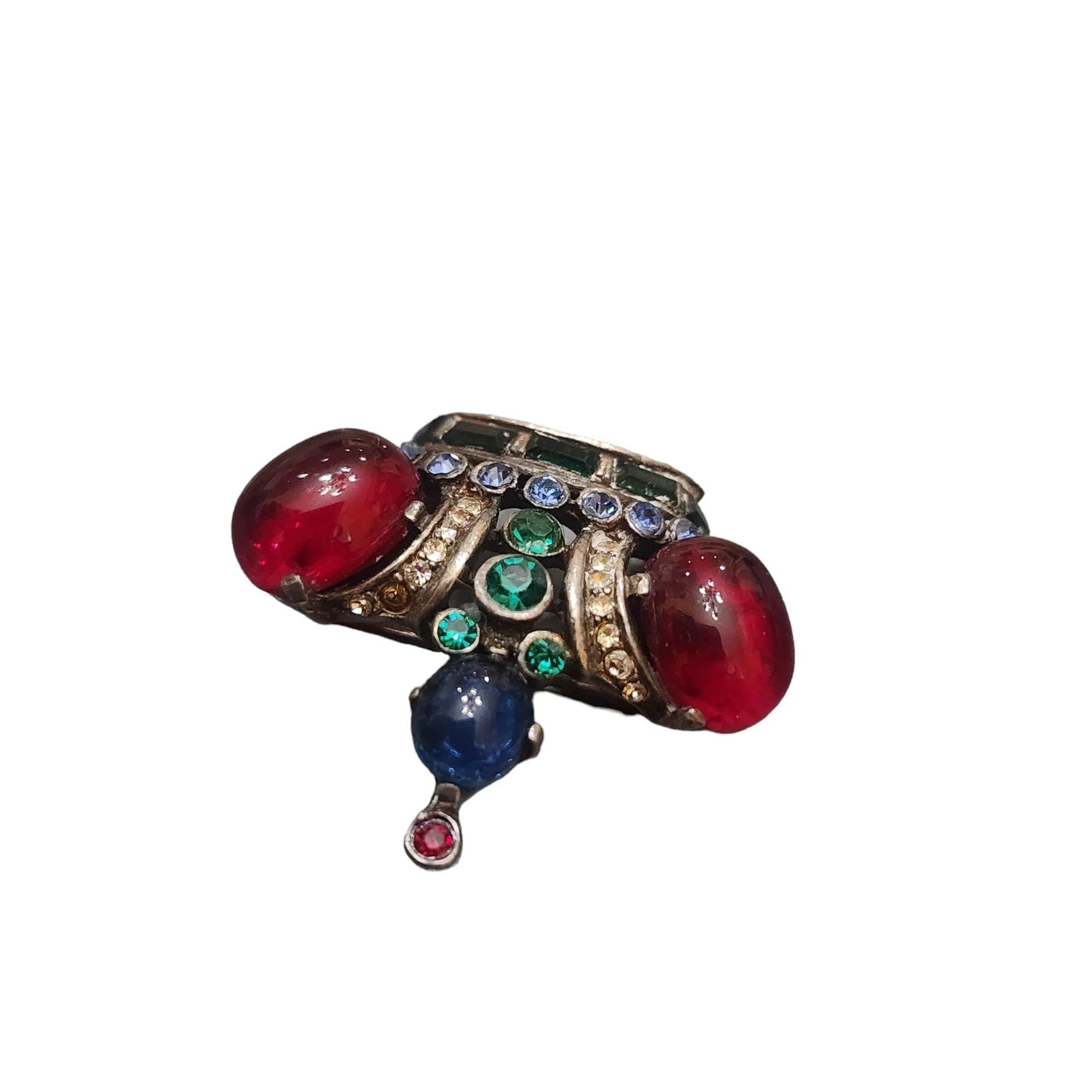 Details: In very nice condition, 1 clear stone is on an angle and will need to be reglued, look at the photo. Sterling with pat.