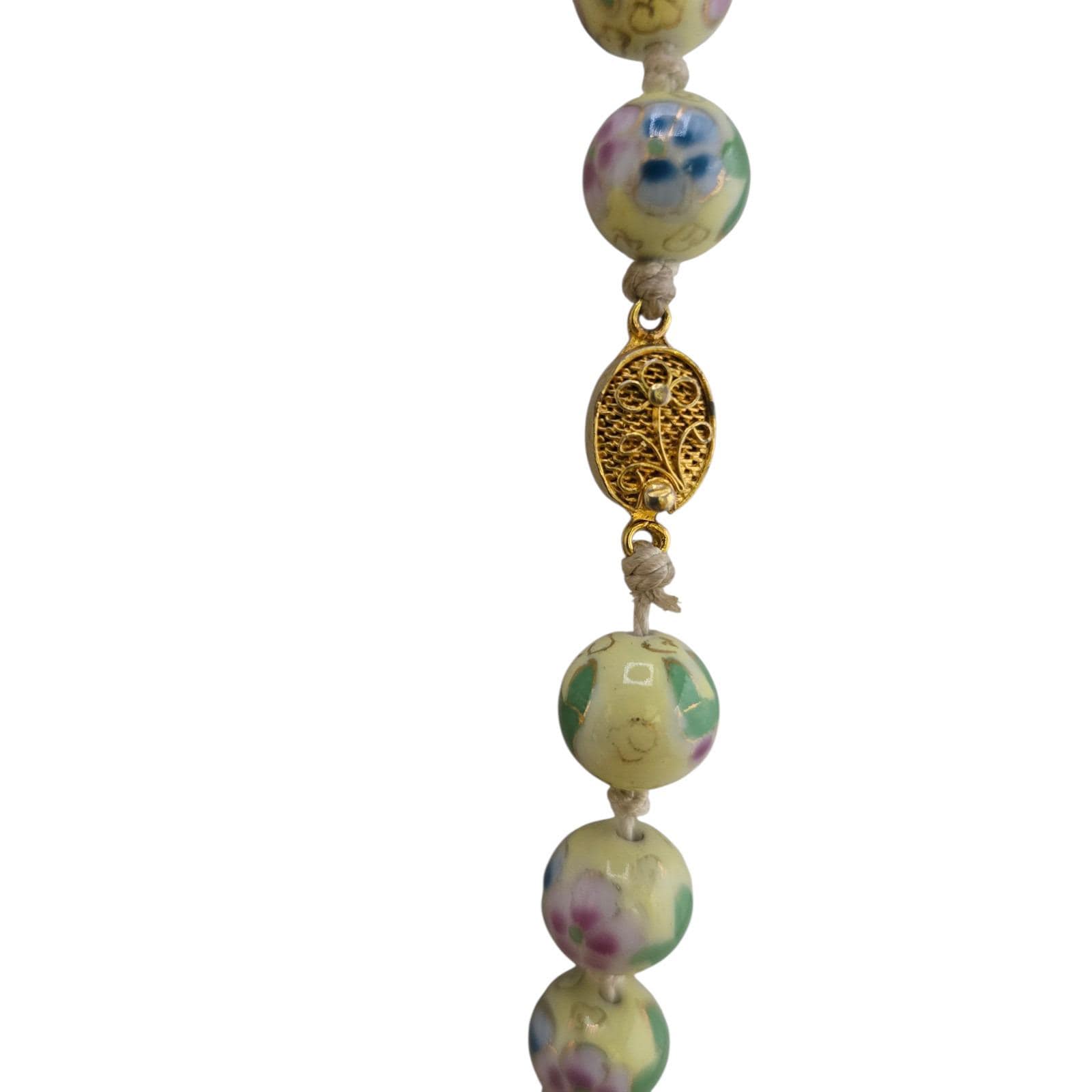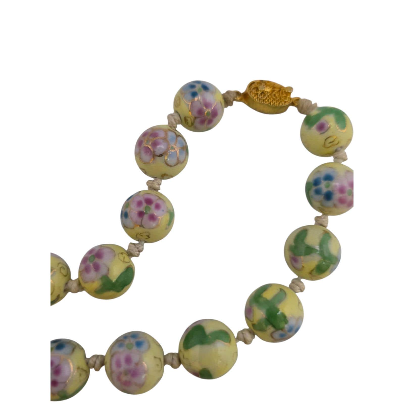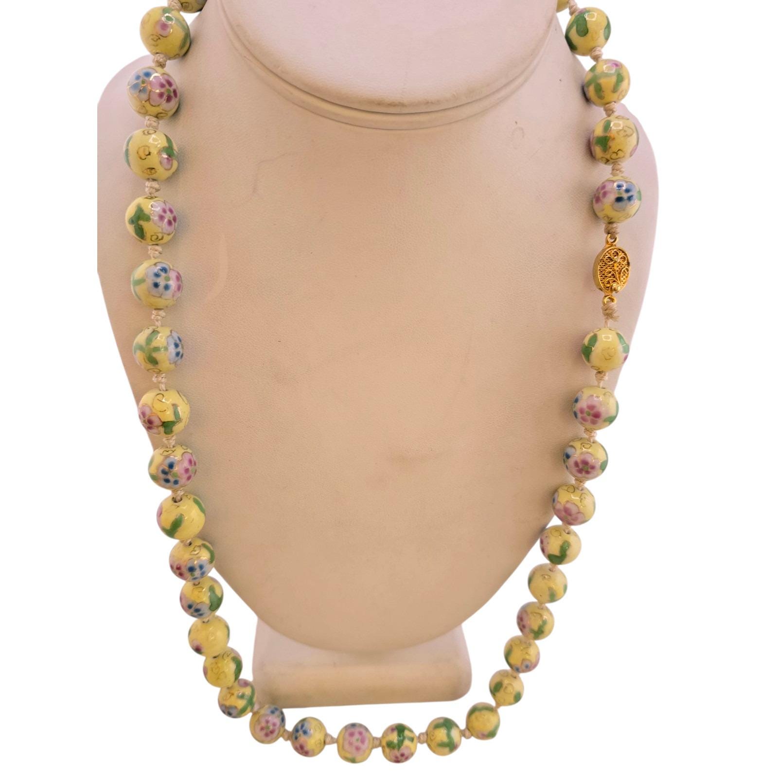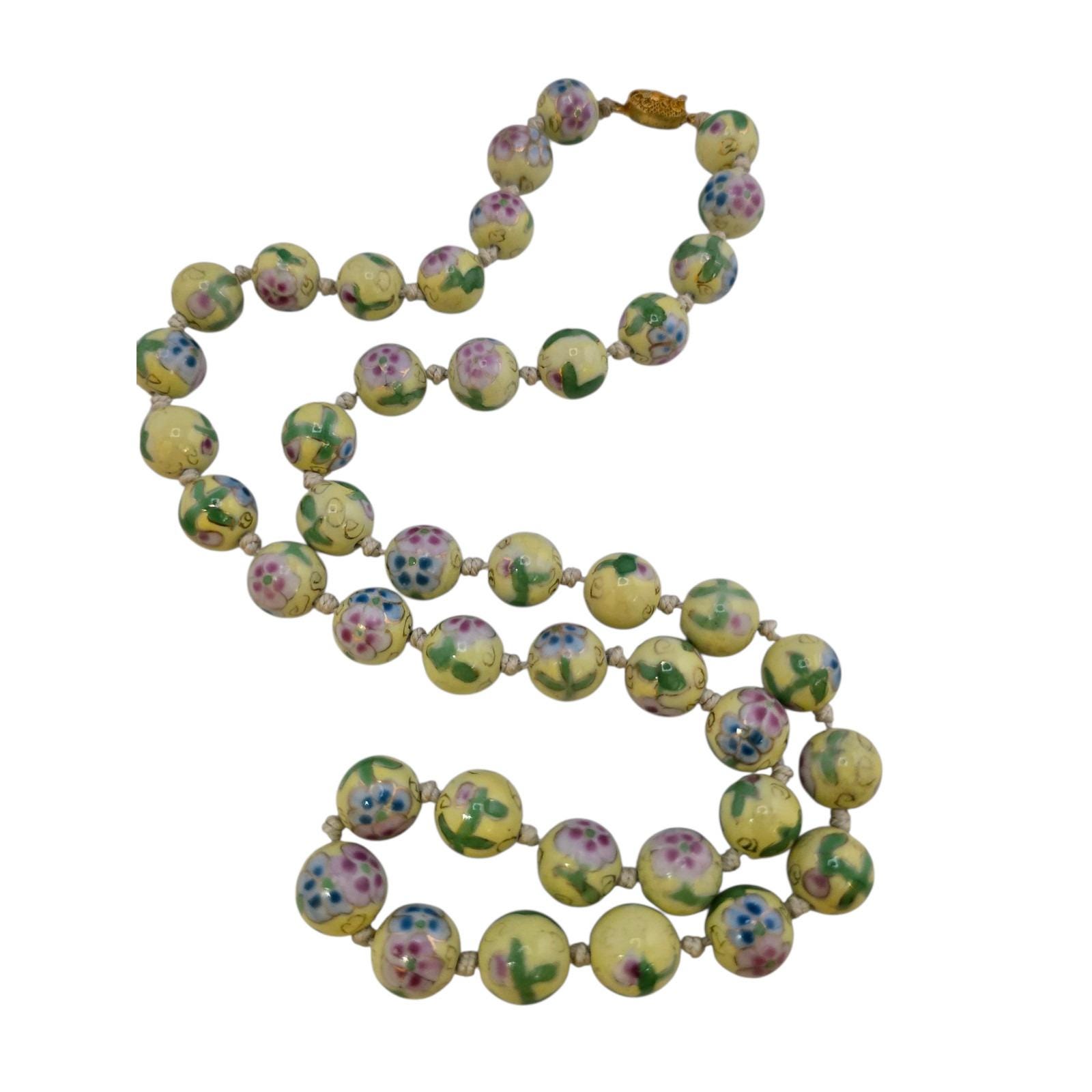 Antique Hand-Knotted Yellow Cloisonne Necklace (A9088)