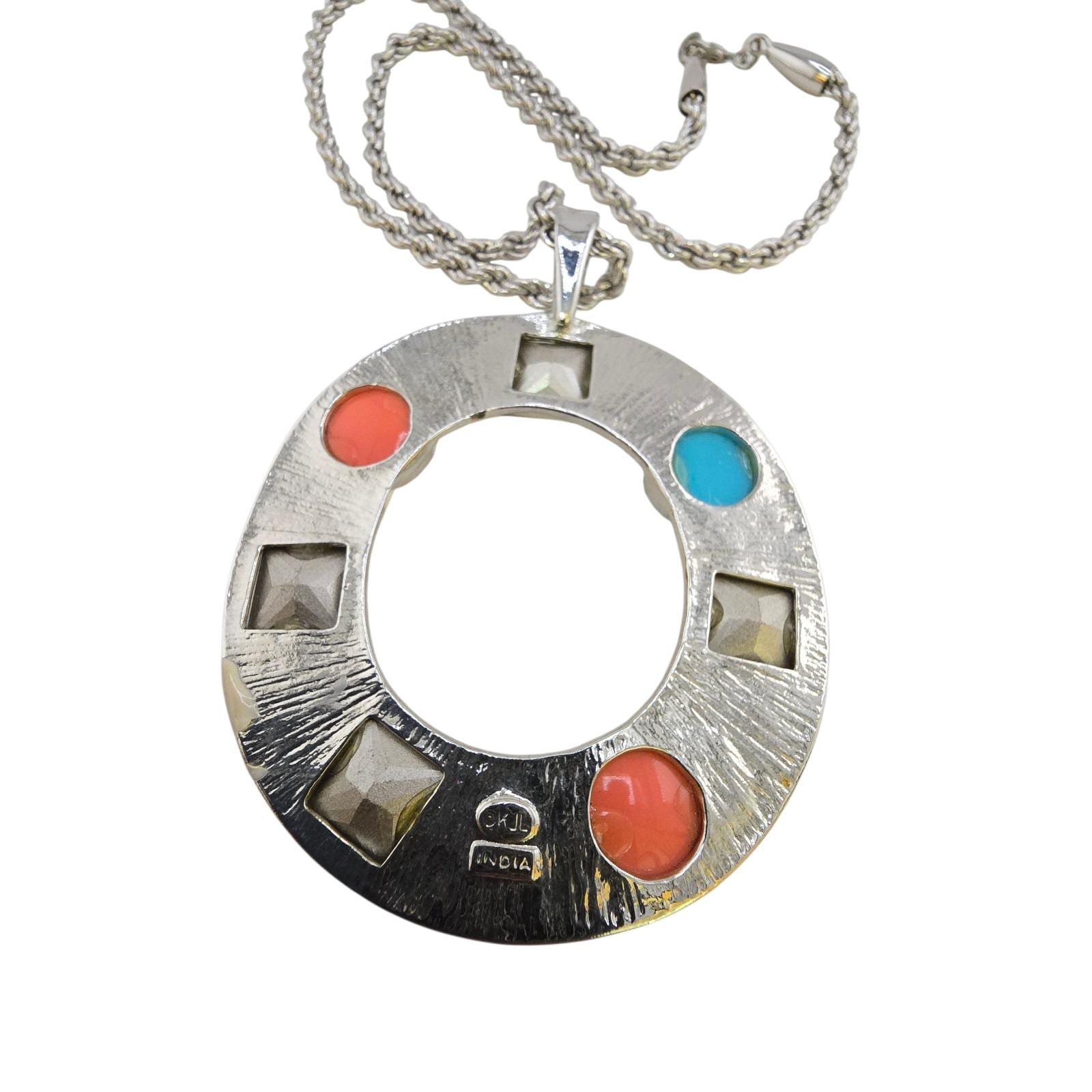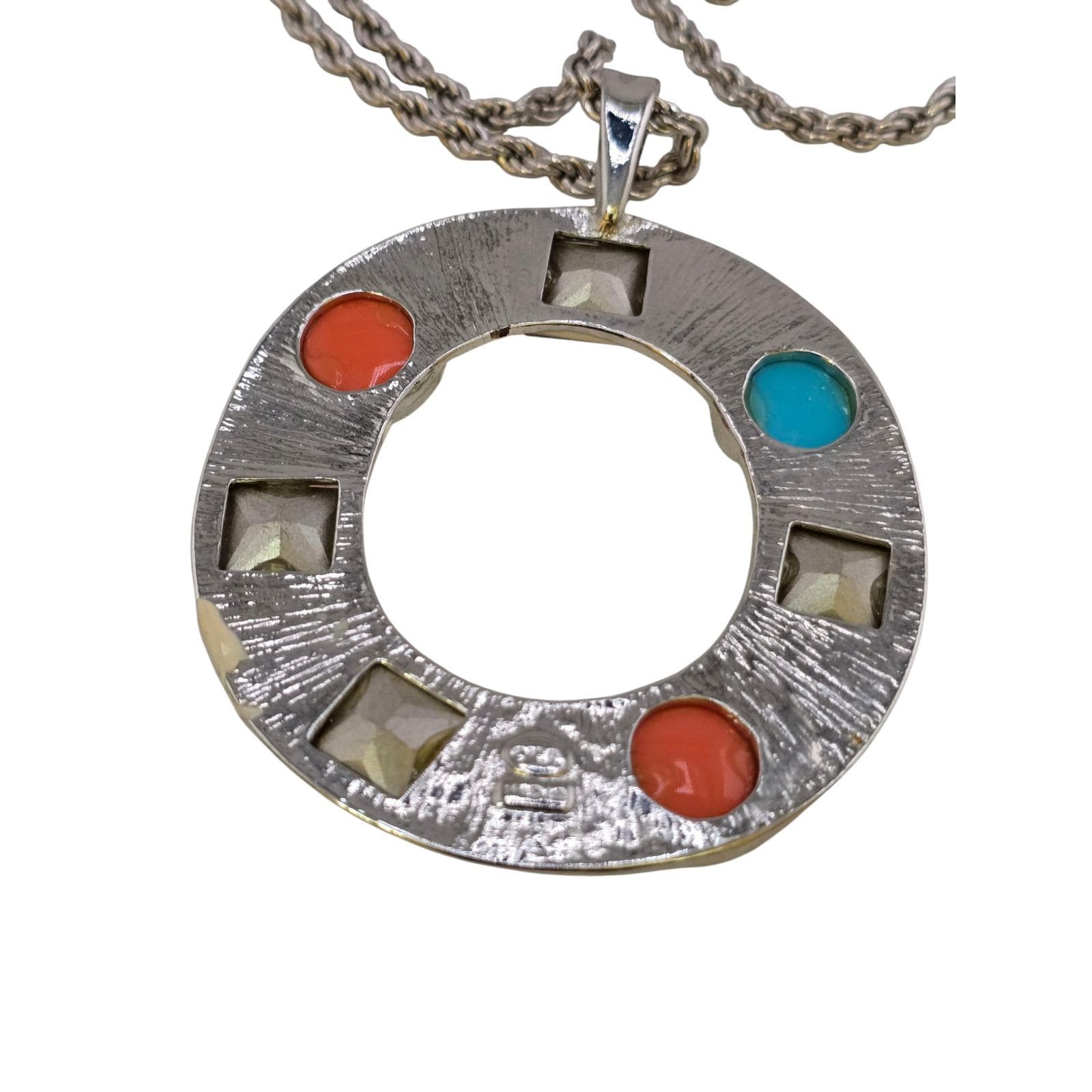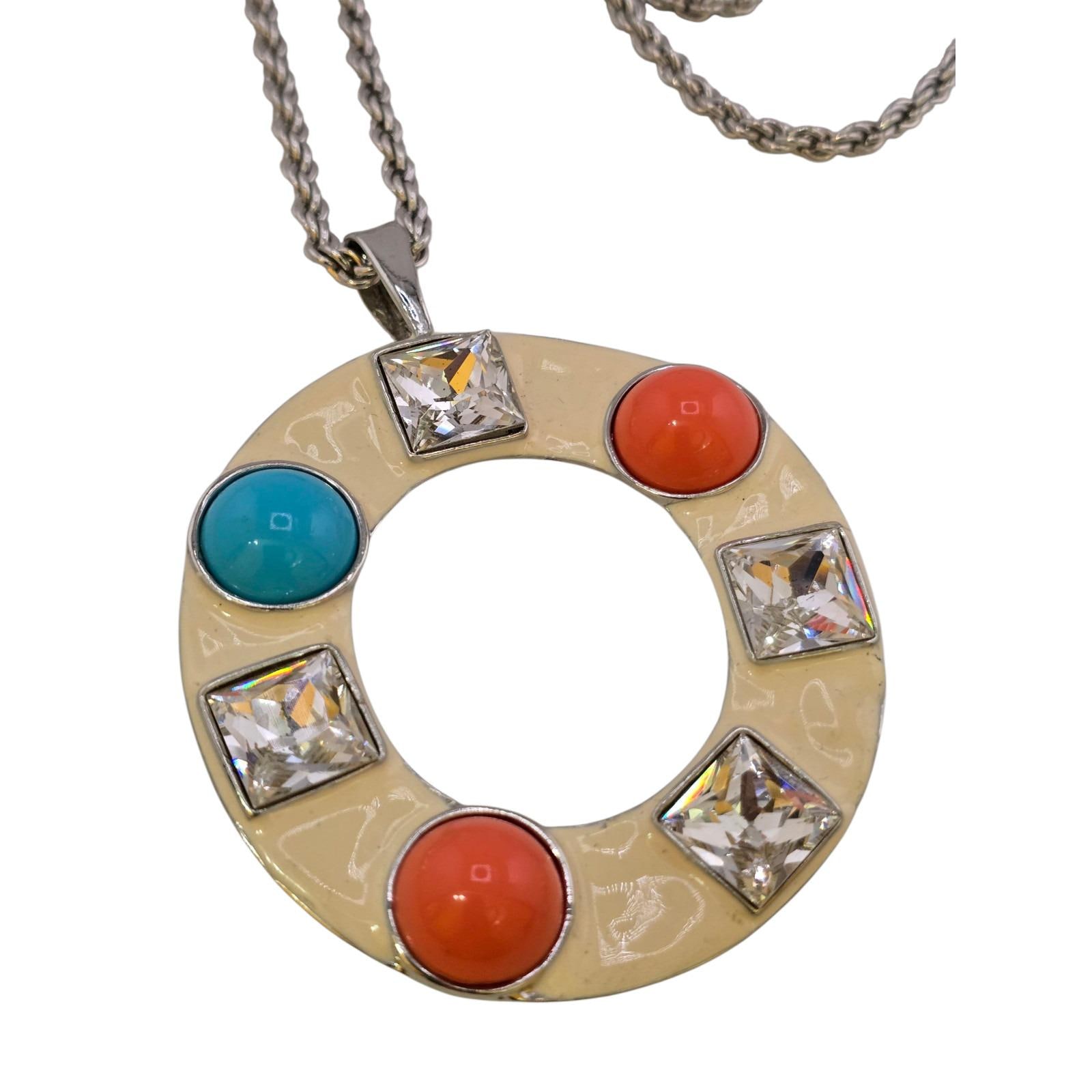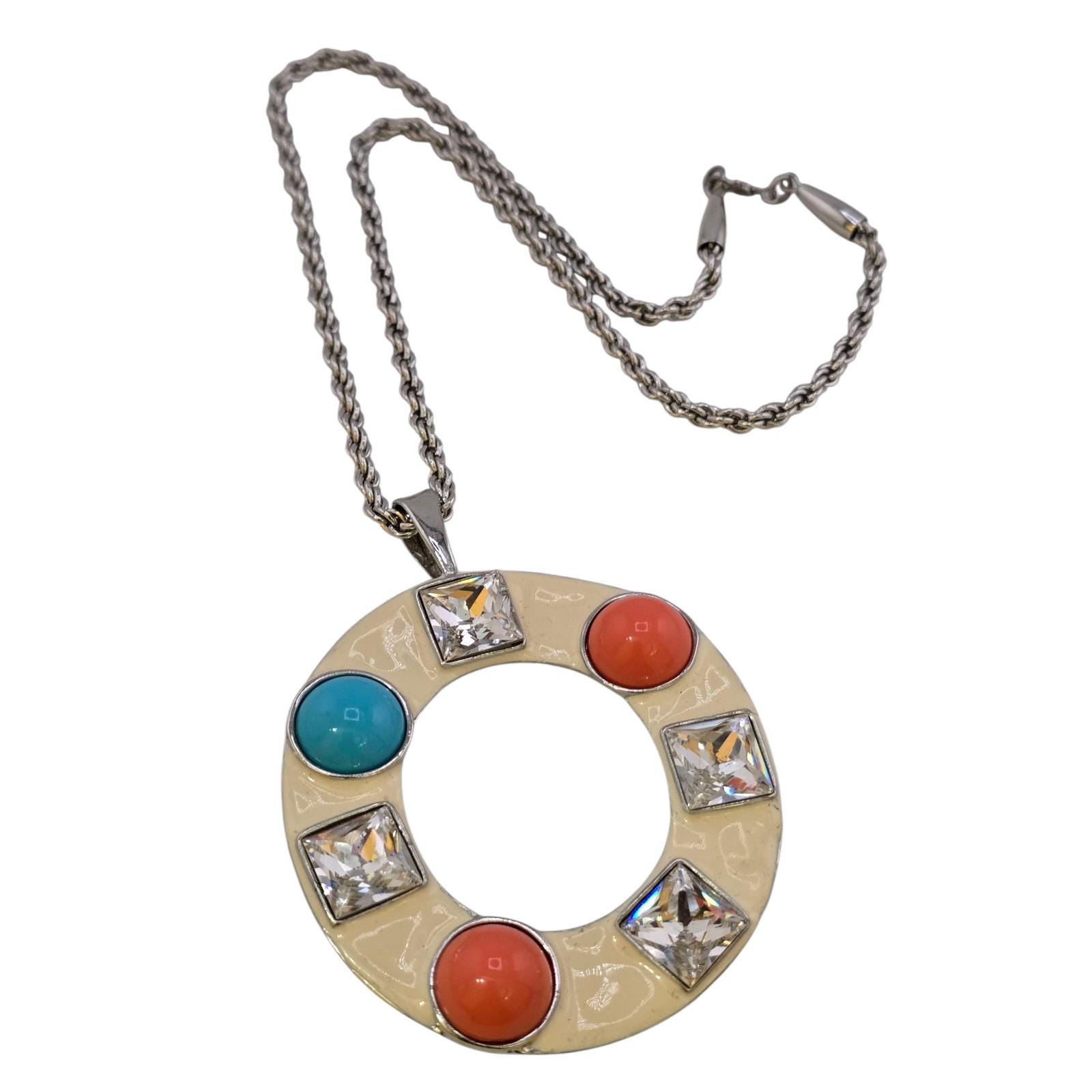 Vintage Enamel KJL Circle Necklace With Rhinestone (A9093)