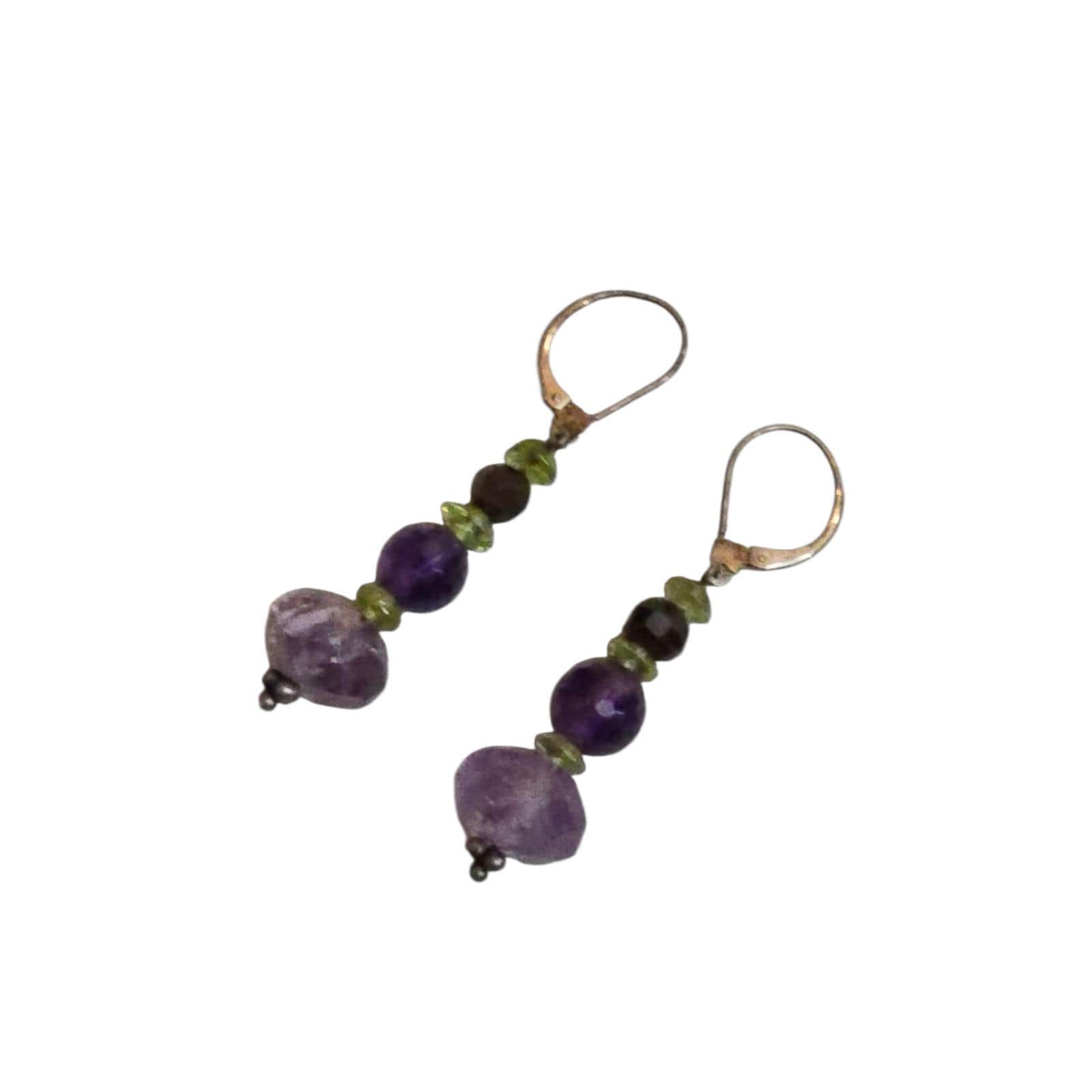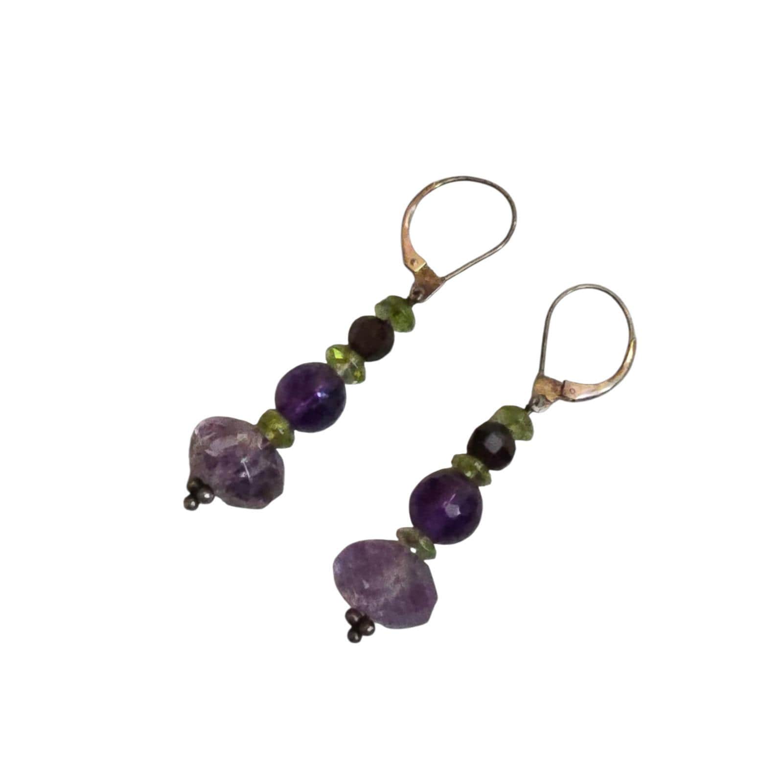 Vintage Glass Crystal Amethyst Pierced Earrings (A9471)