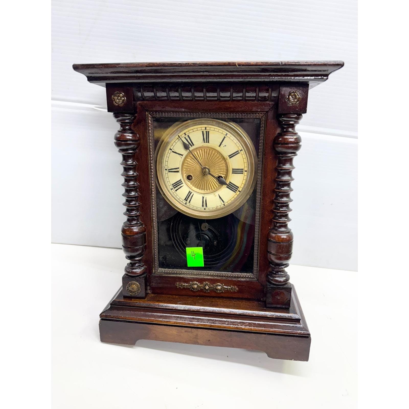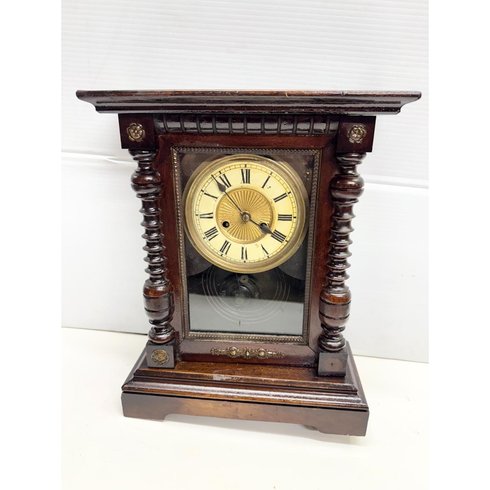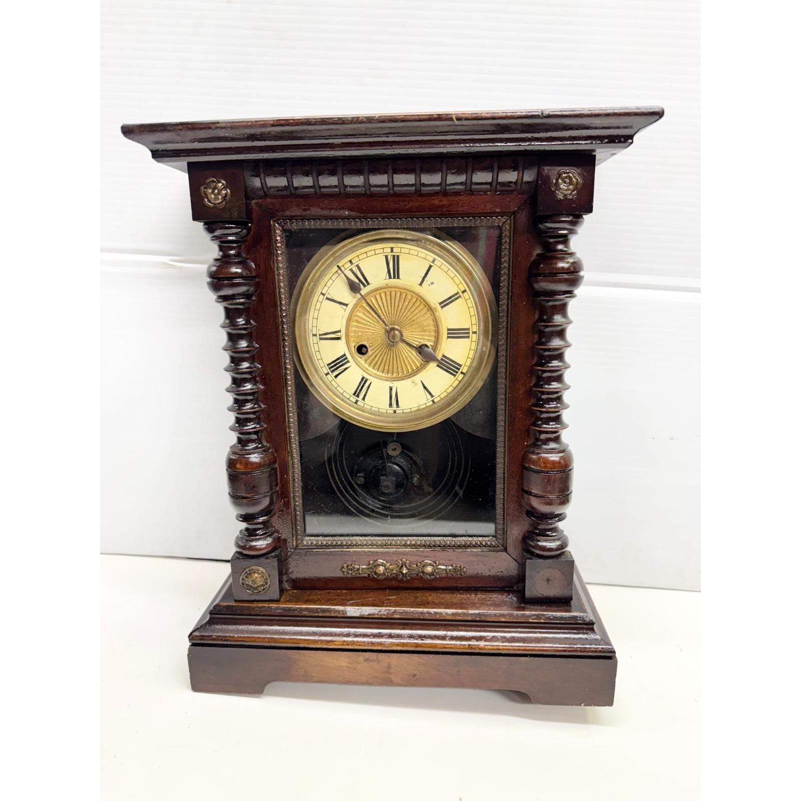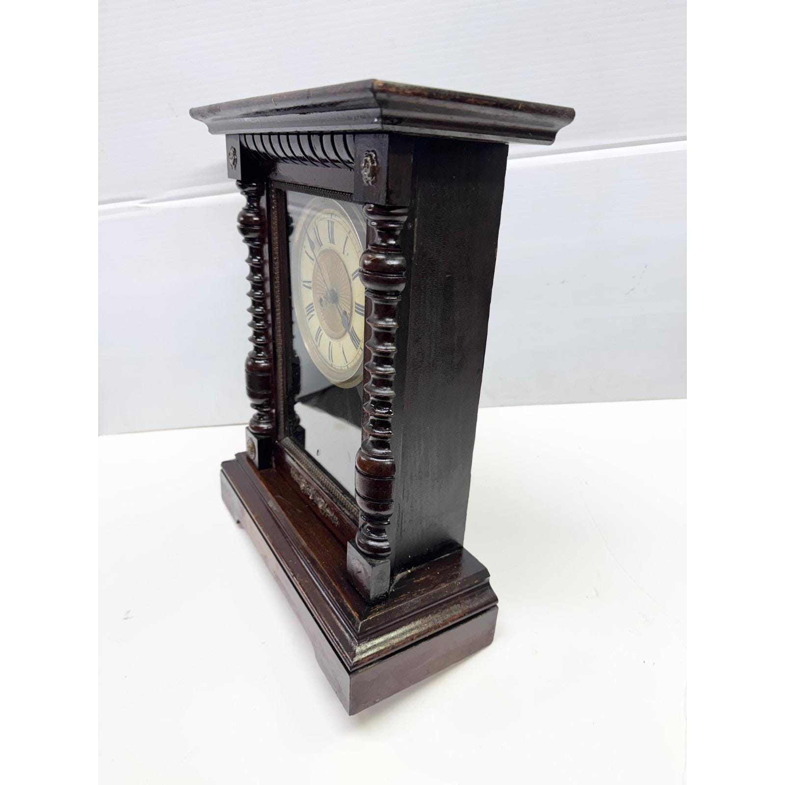 Vintage Walnut Wood Wooden Mantle Clock