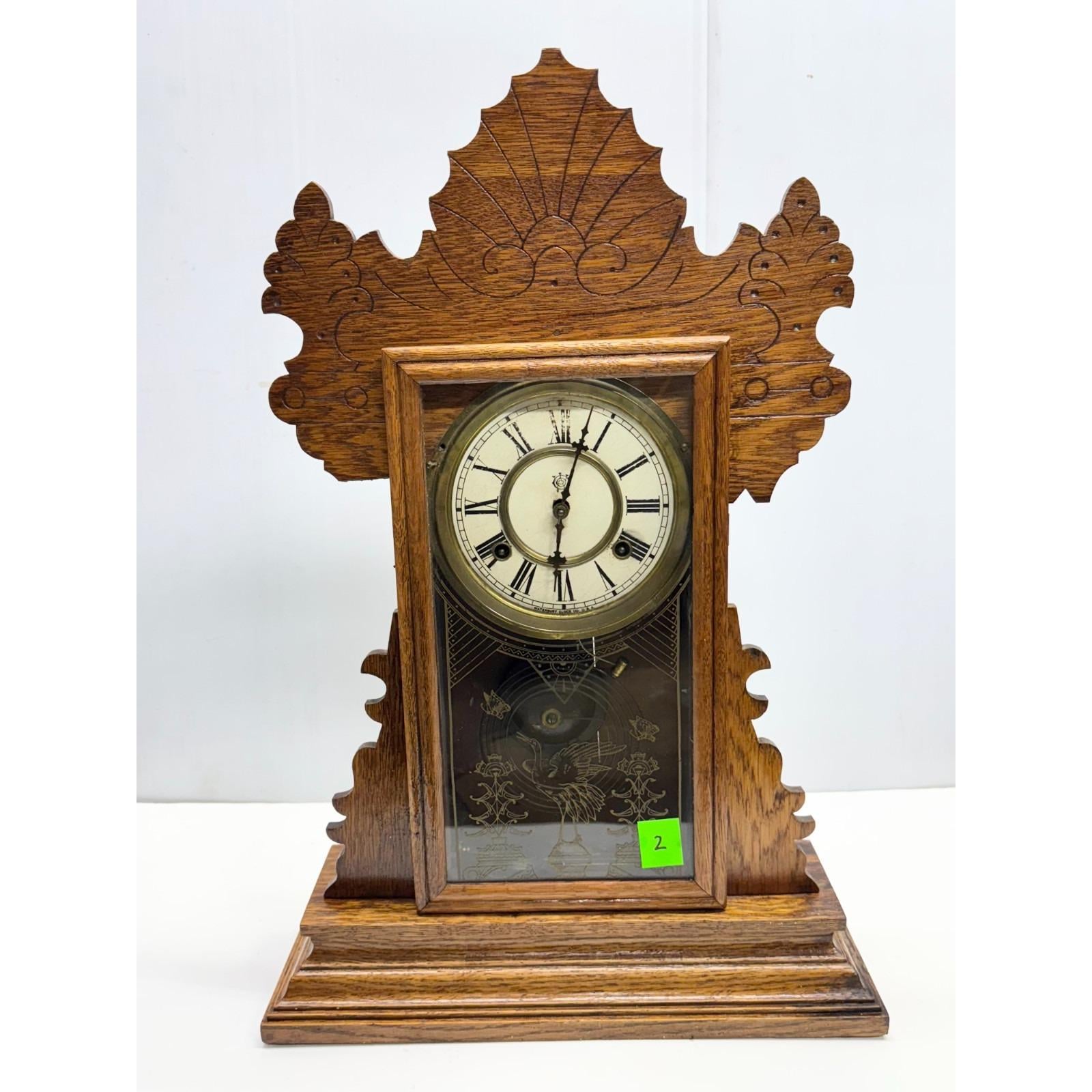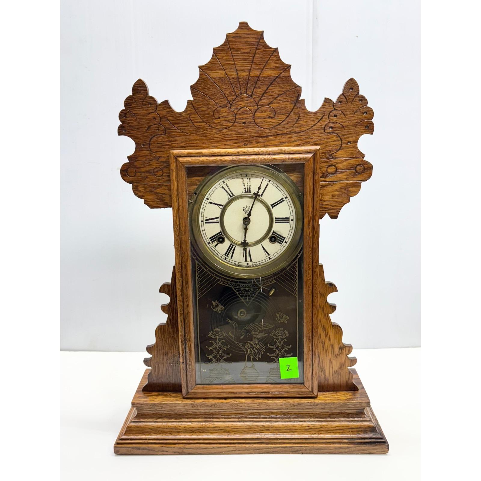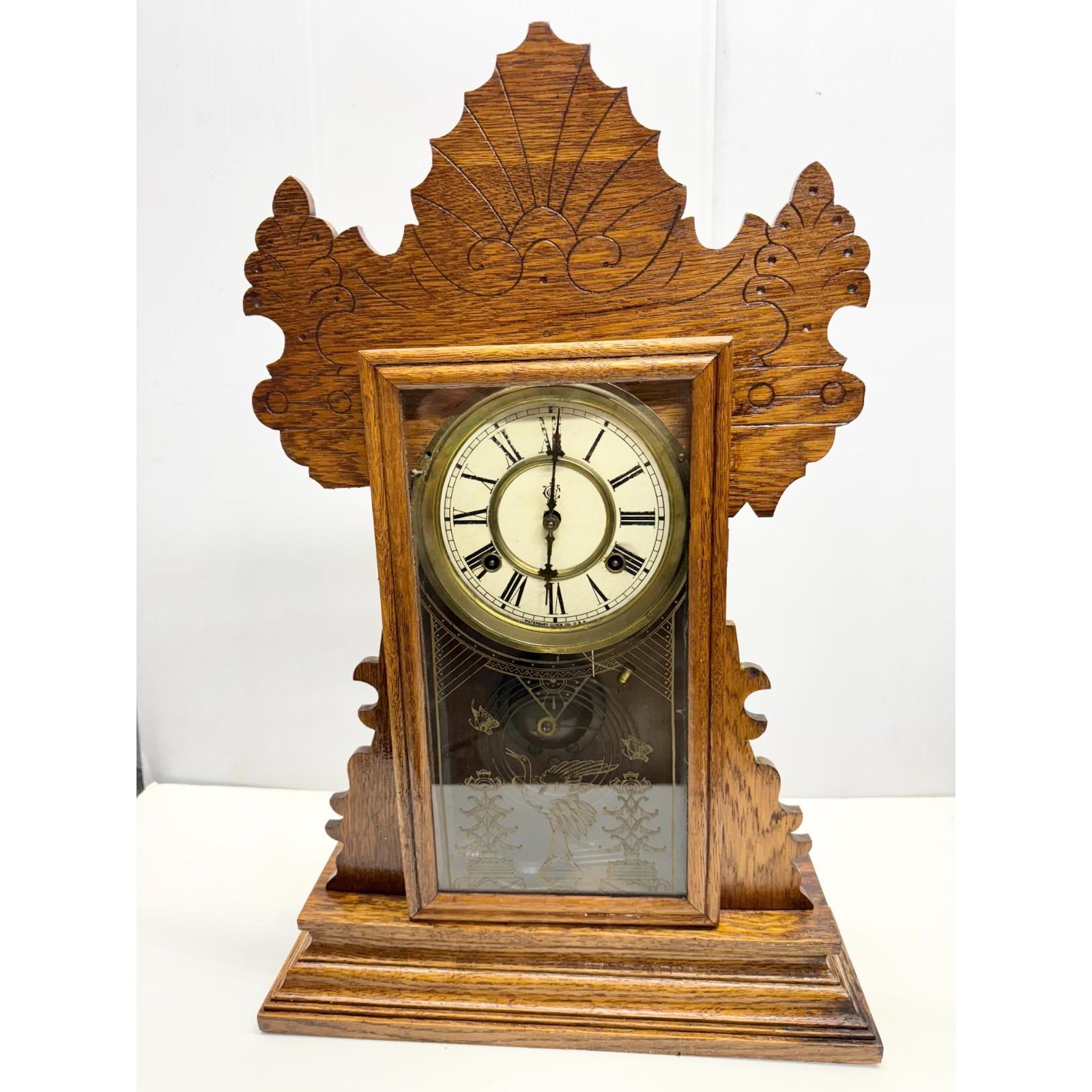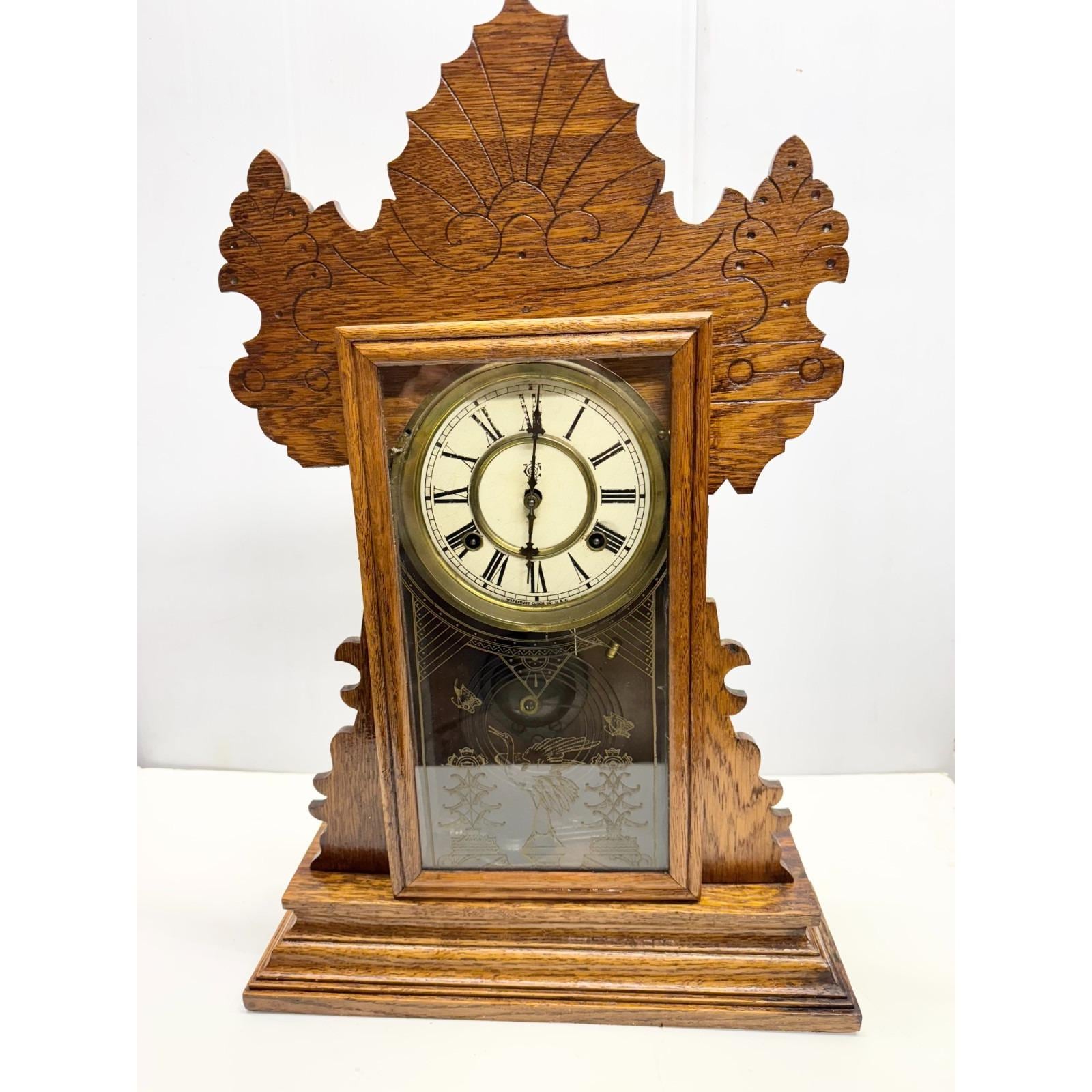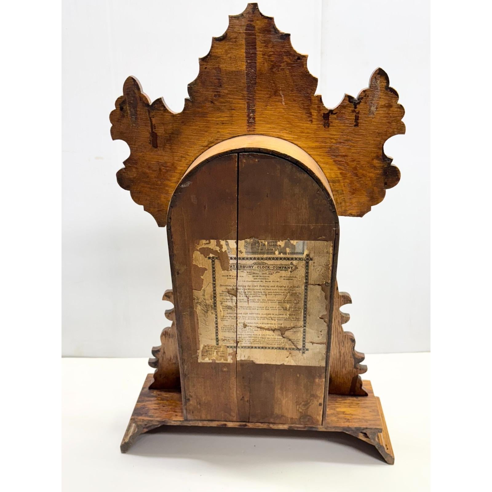 Waterbury Ornate Oak Clock Company Waterbury Conn. USA Gingerbread Working Clock
