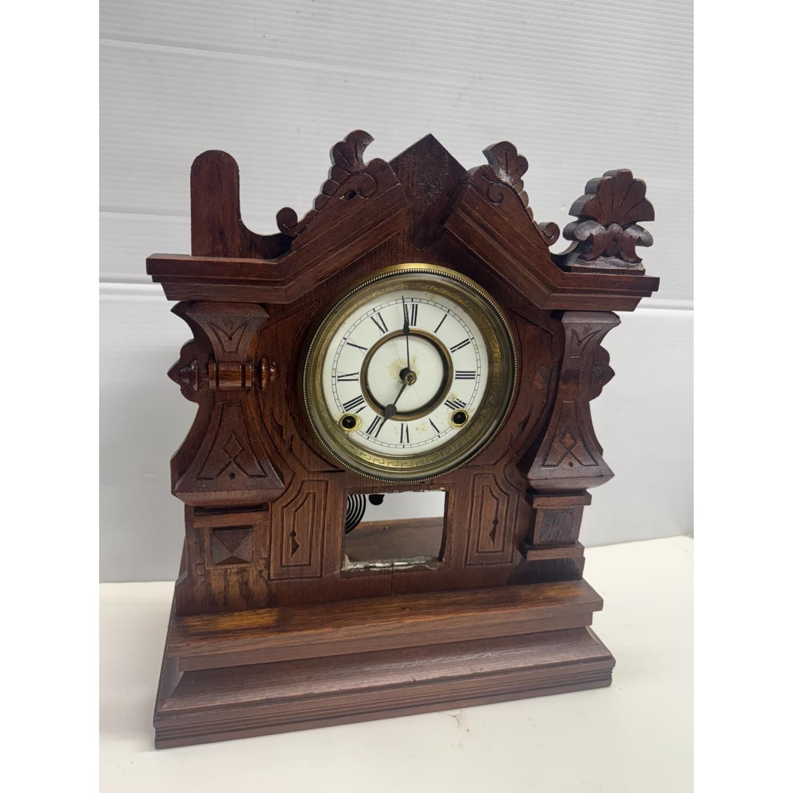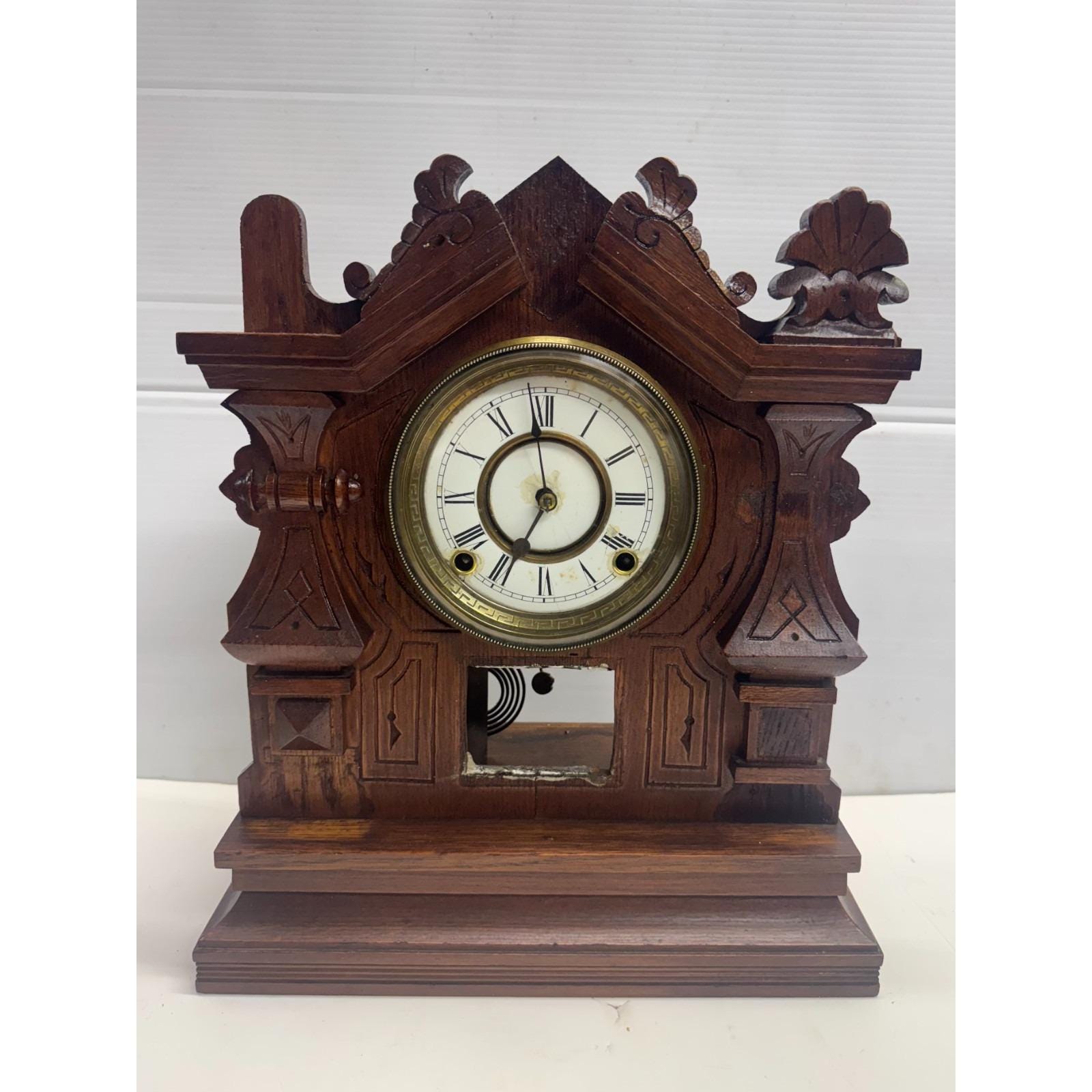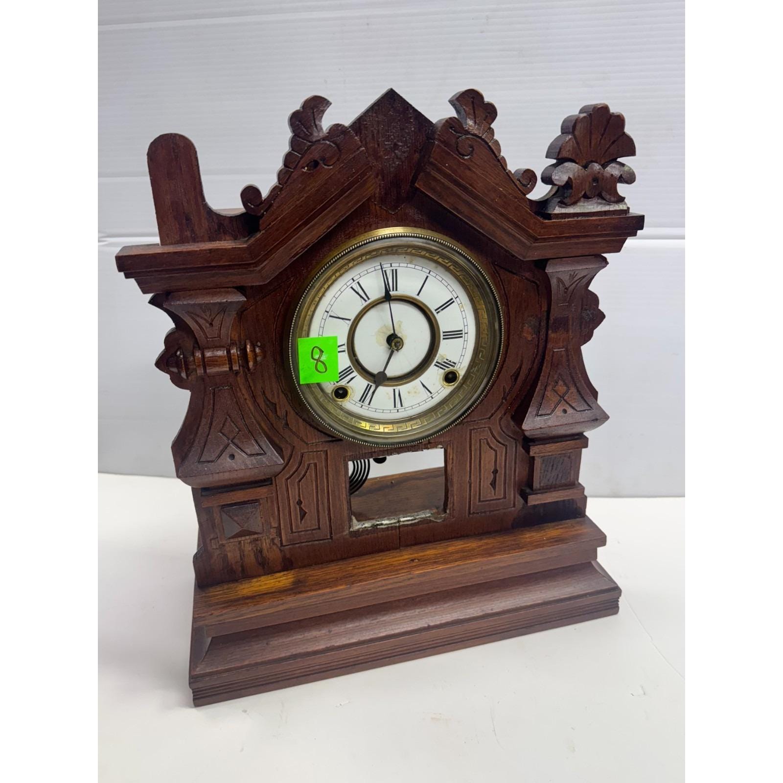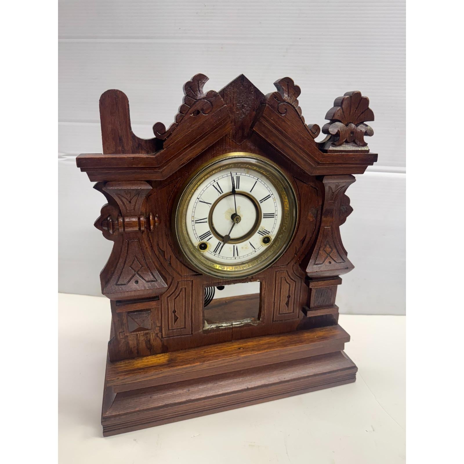 Antique Vintage Estate Wooden Mantle Clock