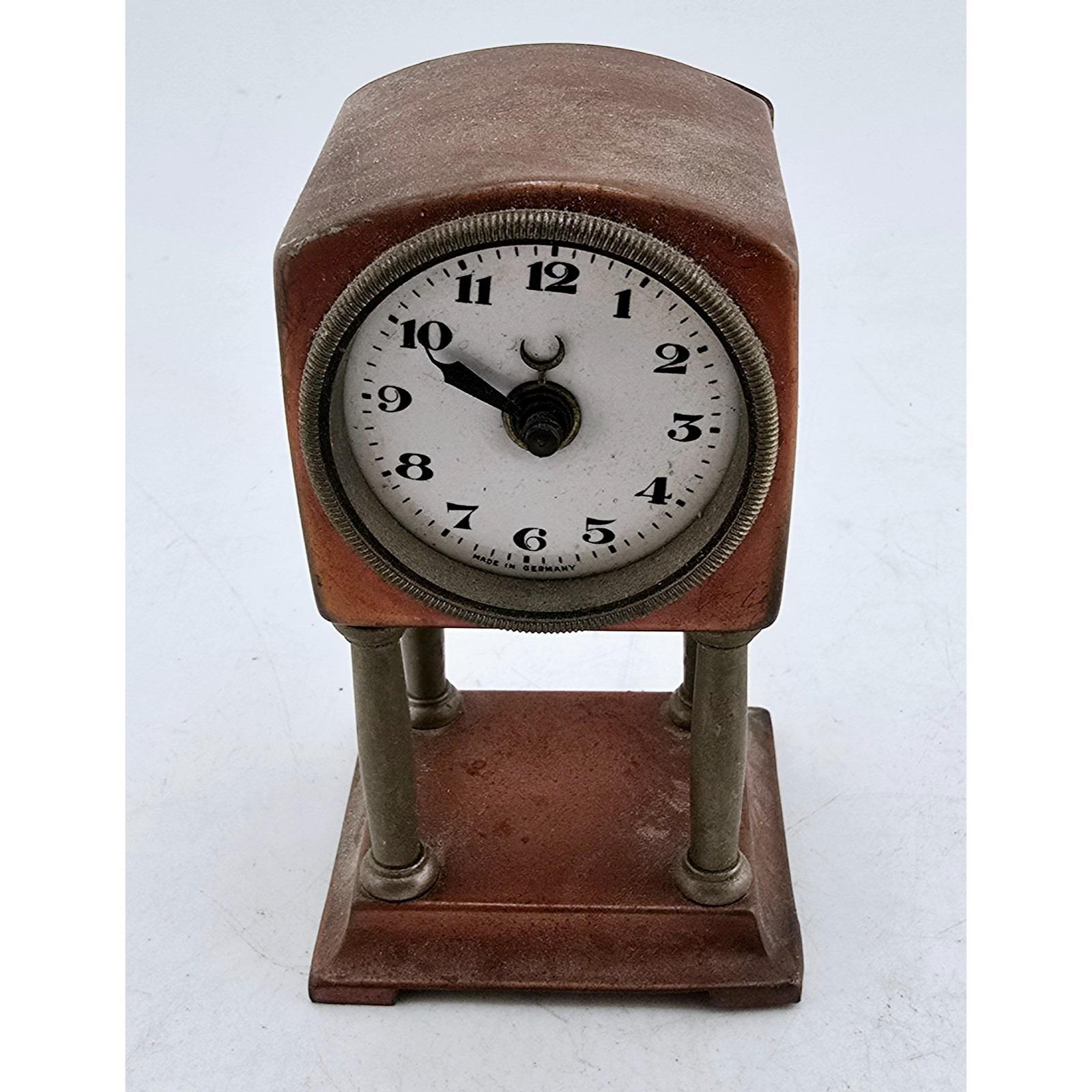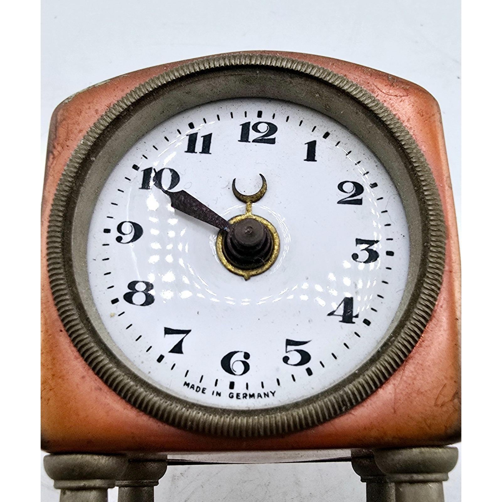 Antique Brass And Copper Rare Elevated German Wind Up Clock