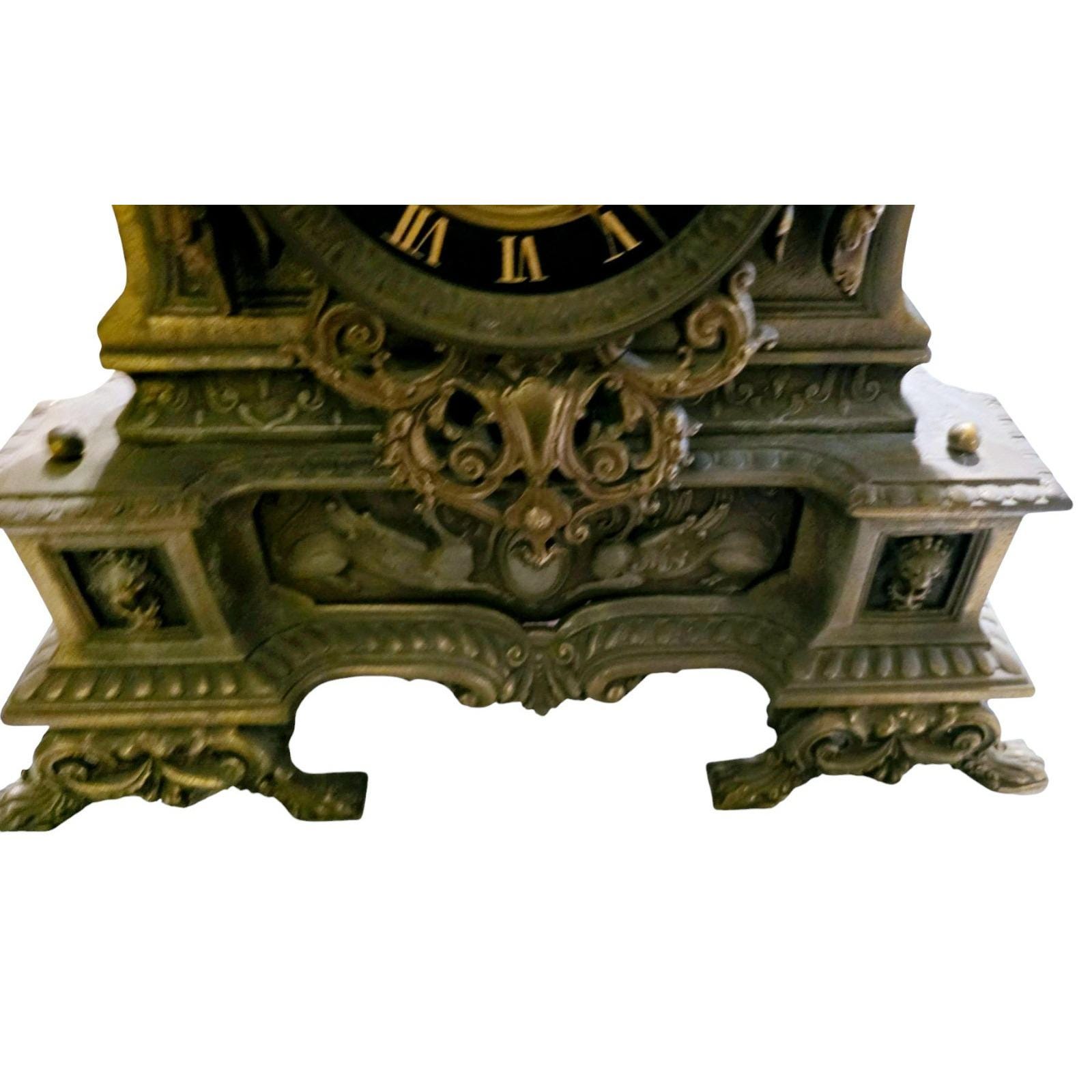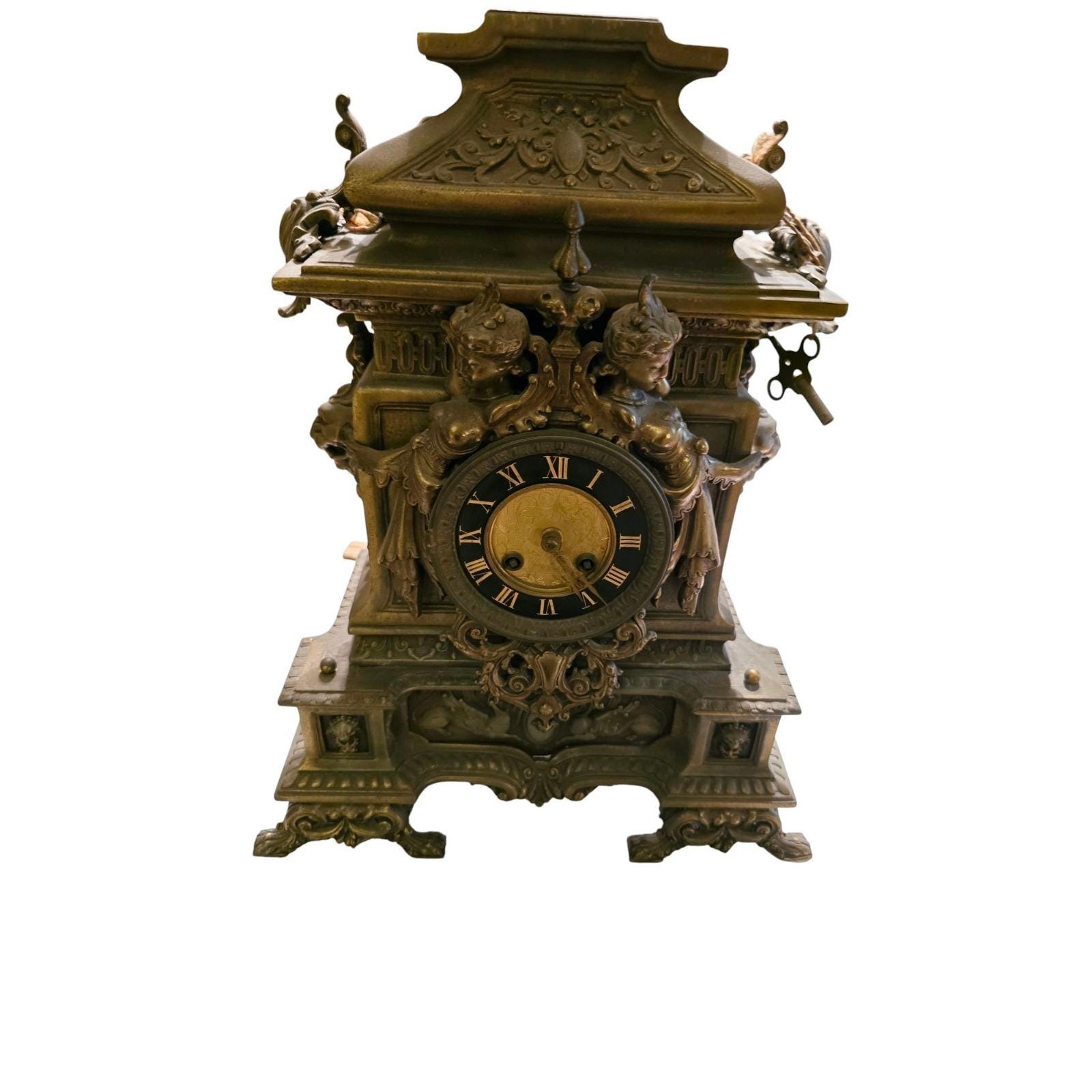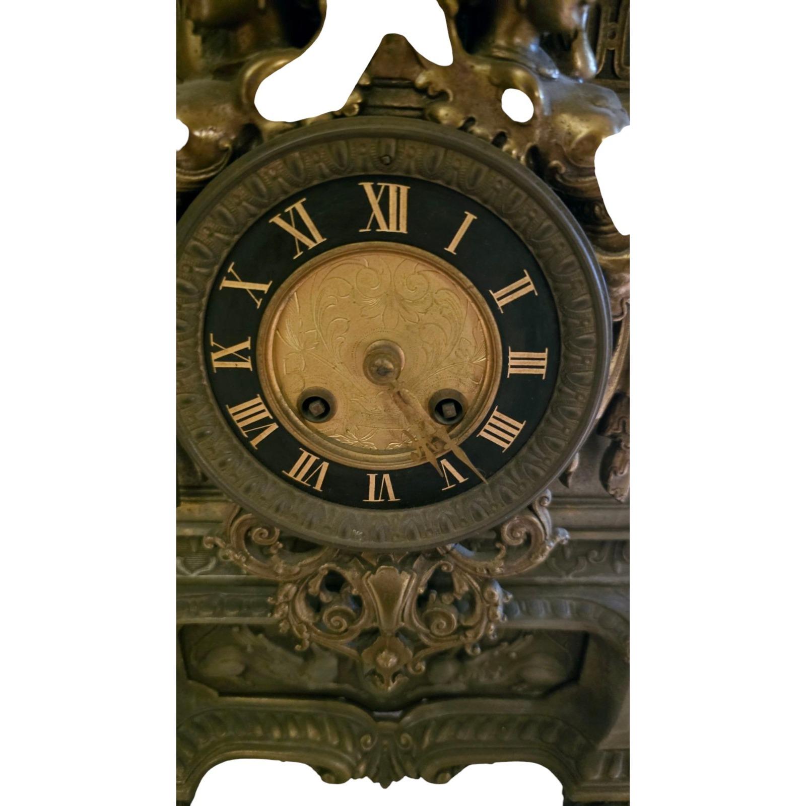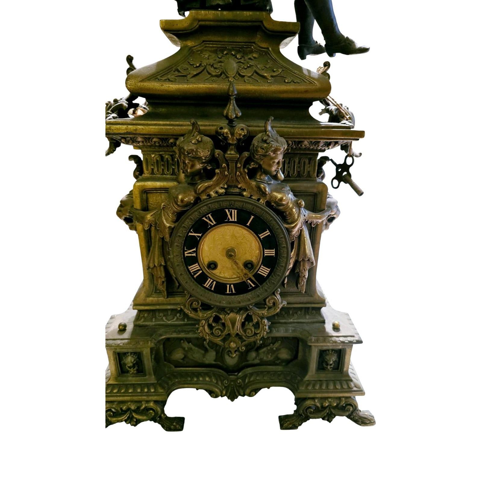 Antique Very Heavily Detailed Bronze Figural Clock With Statue On Top