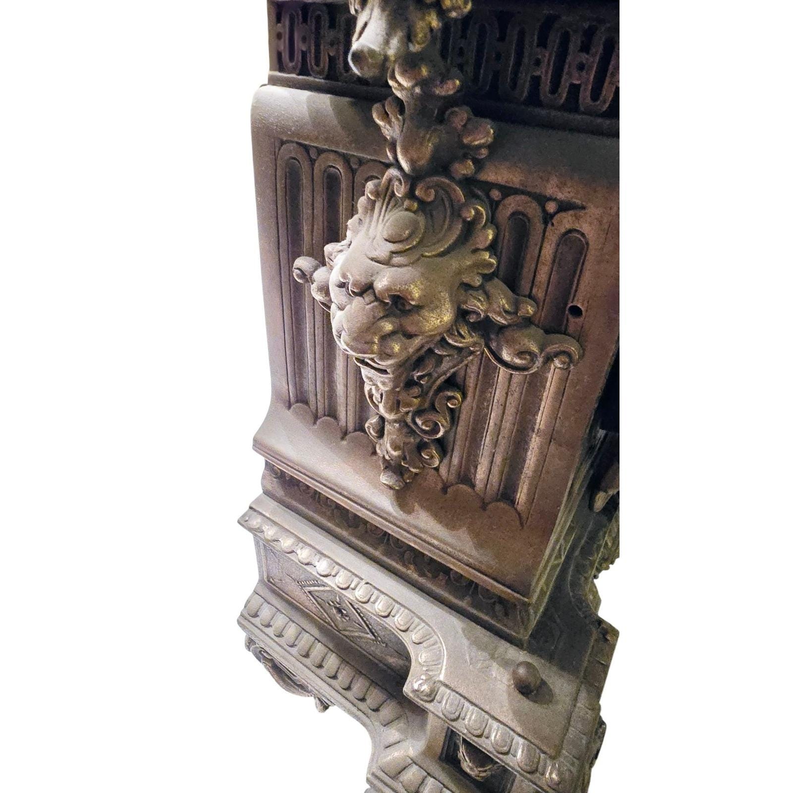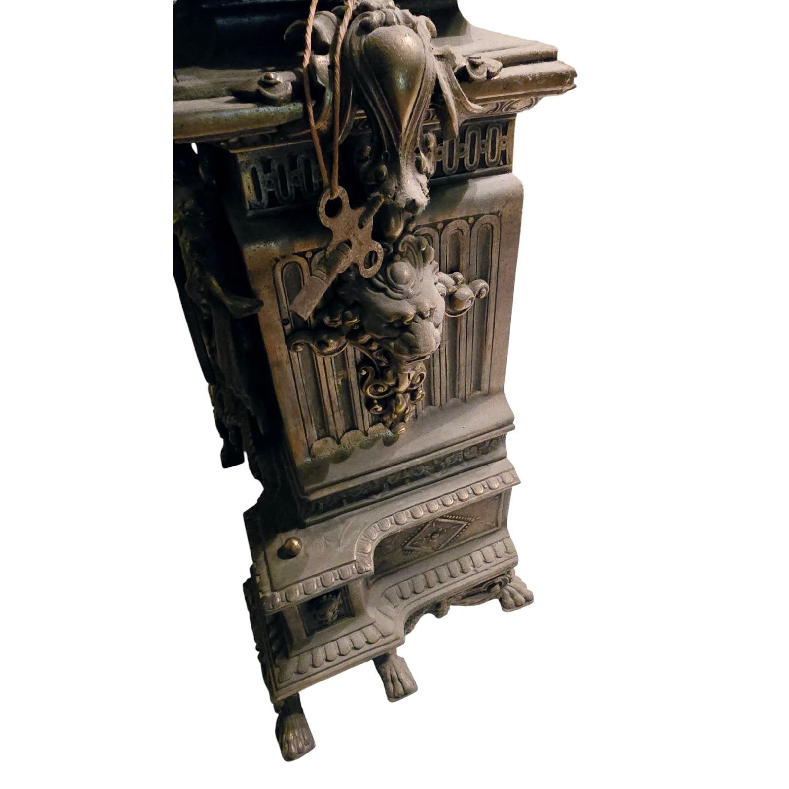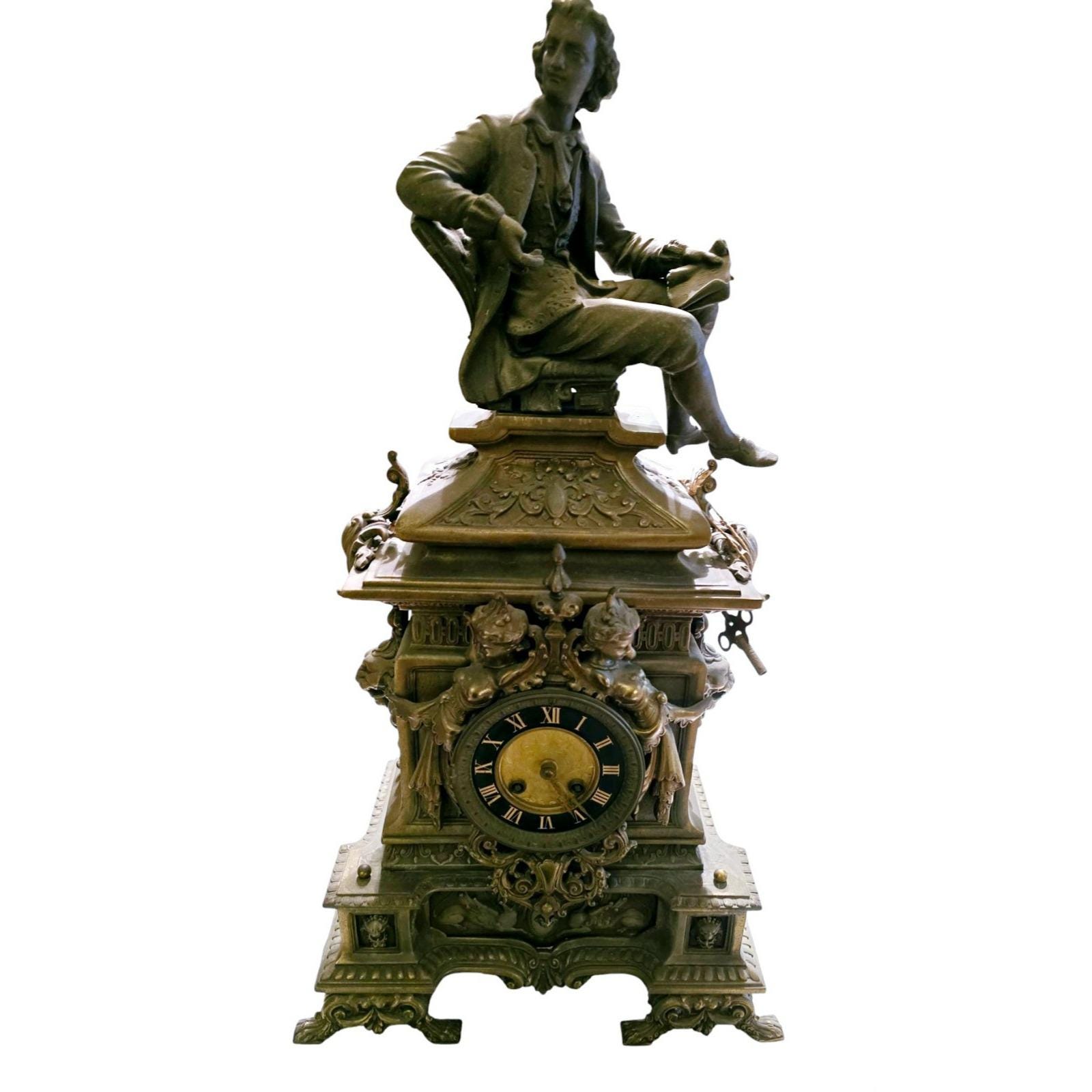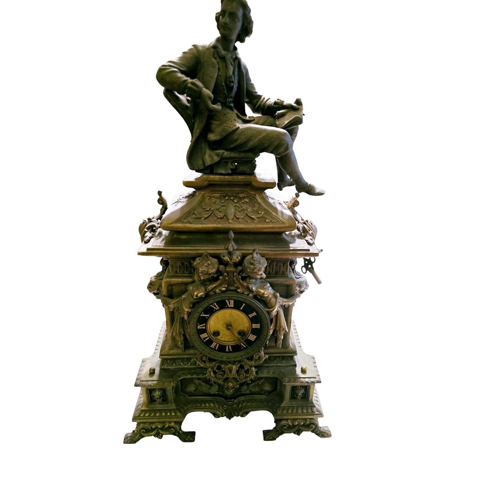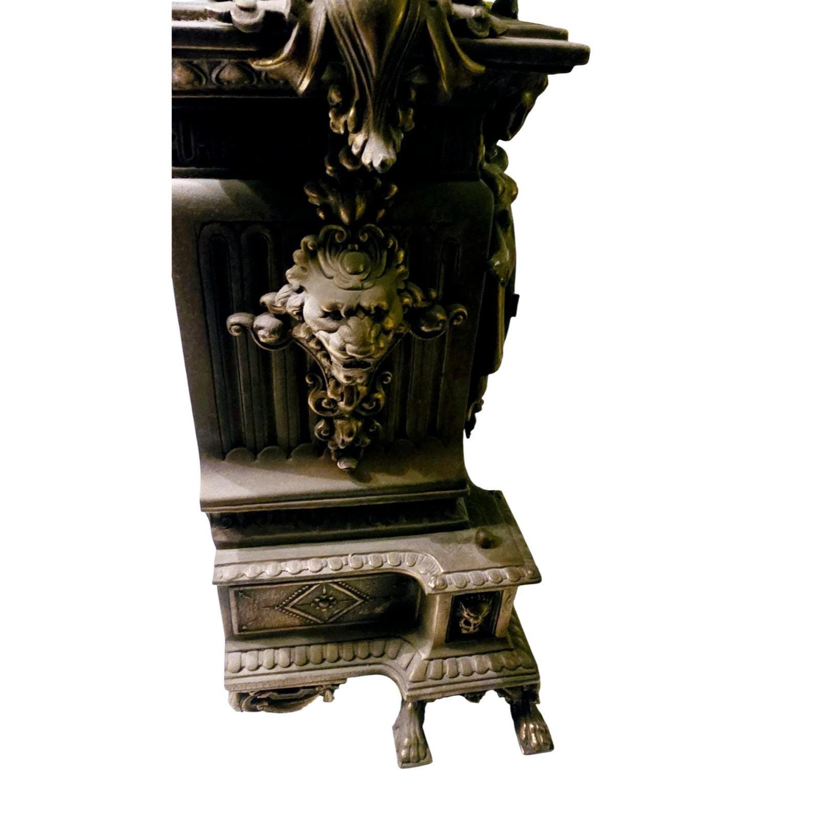 Antique Very Heavily Detailed Bronze Figural Clock With Statue On Top