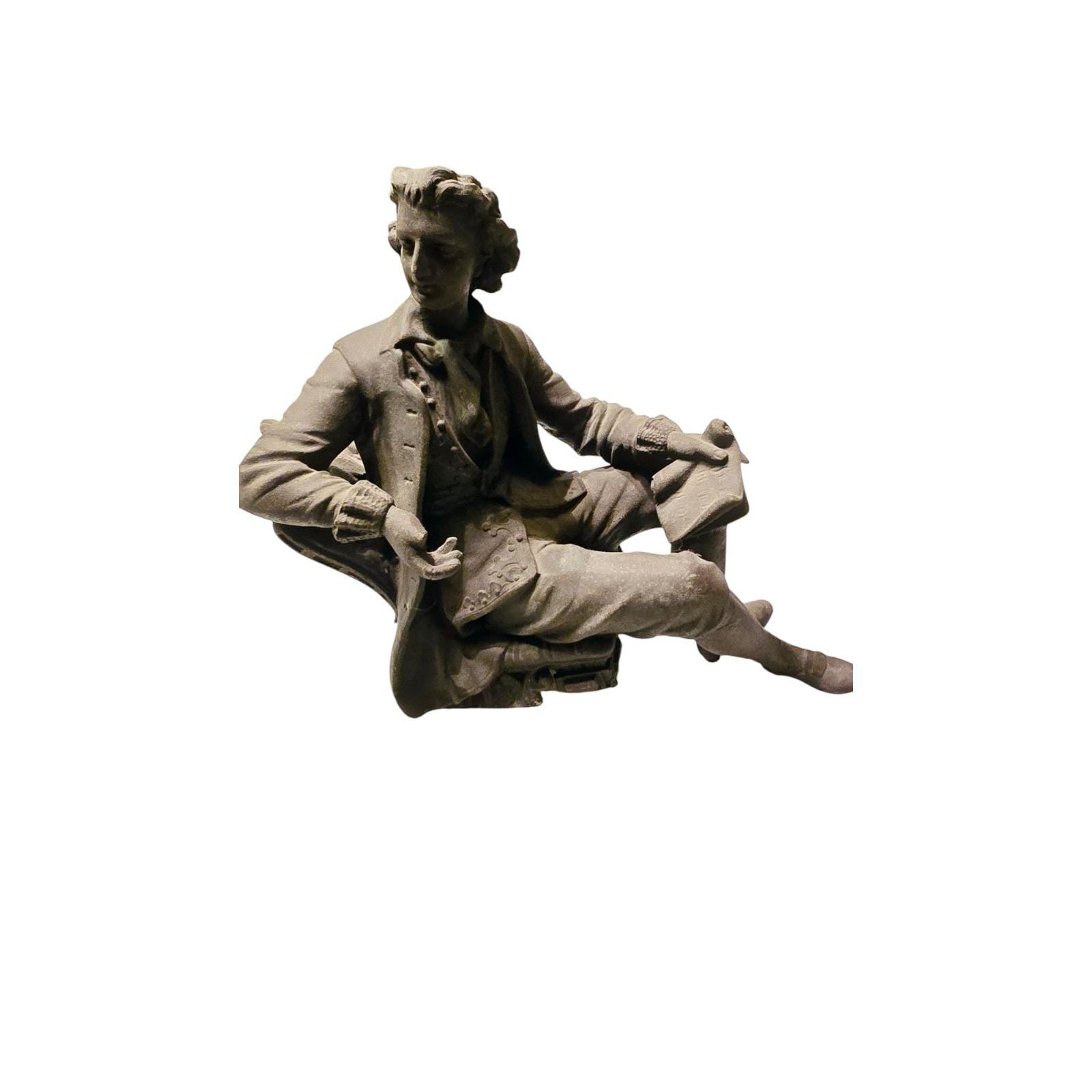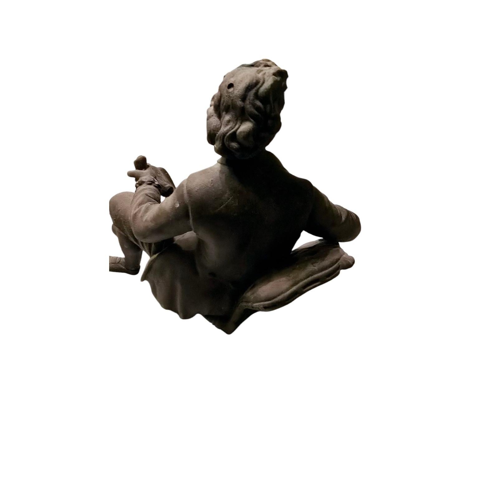Has key. Sitting figure probably not original to the clock. No glass face. Clock 16", statue is 8".