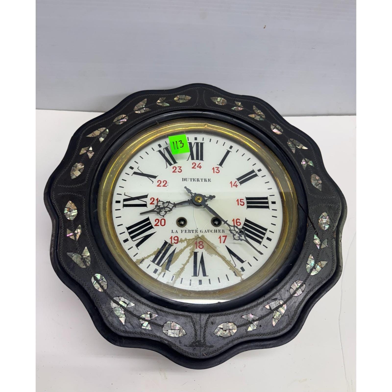 Antique French Dutertre La Ferte Gaucher Mother of Pearl Inlay Wall Clock