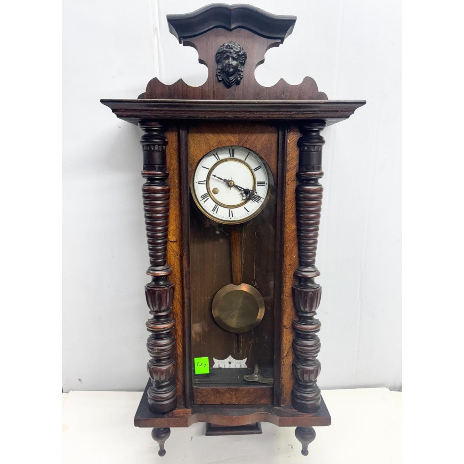 Antique Art Nouveau lady Pendulum Walnut Wood Wall Clock