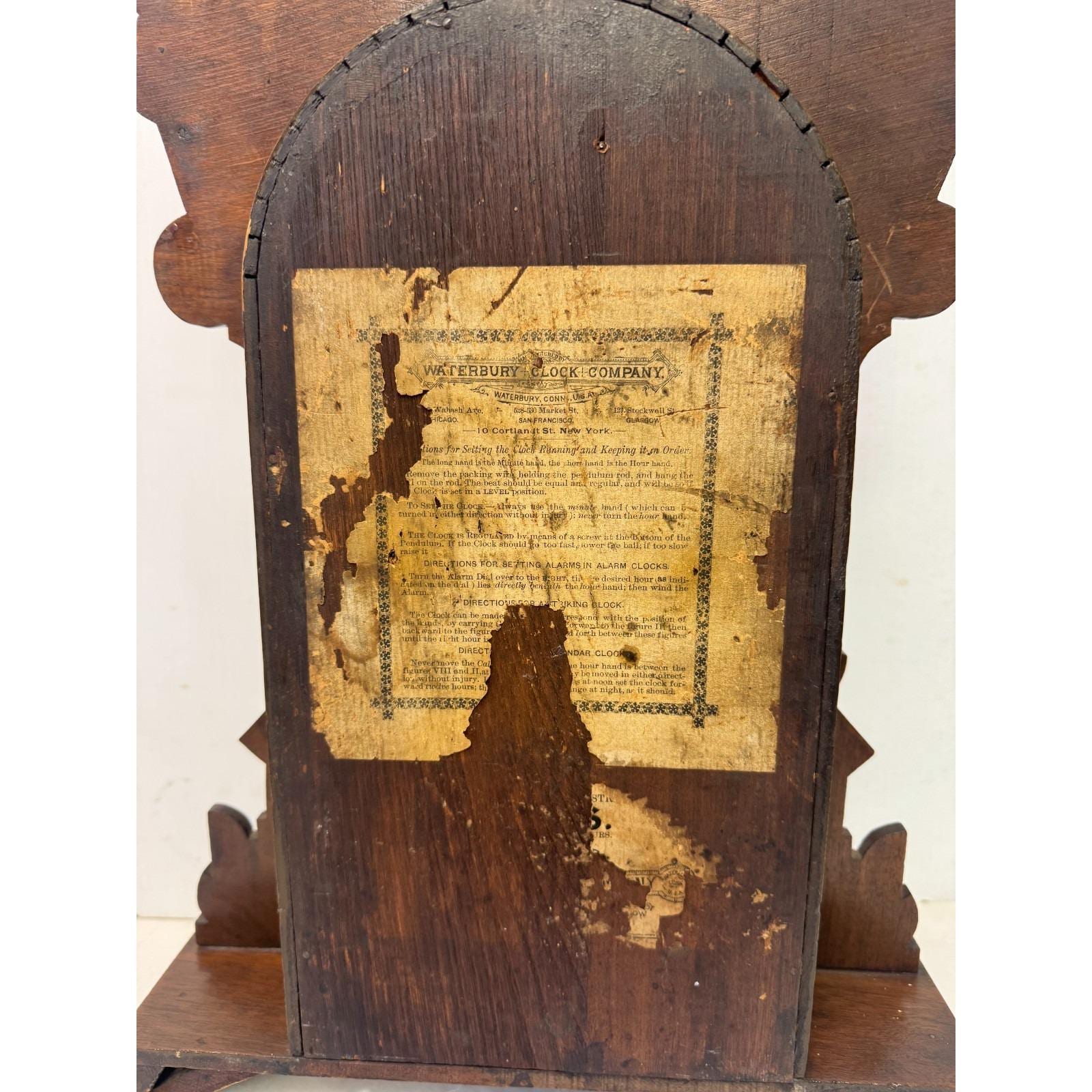 Antique Waterbury Clock Attleboro Clock Co. Gingerbread Oak Shelf Mantle