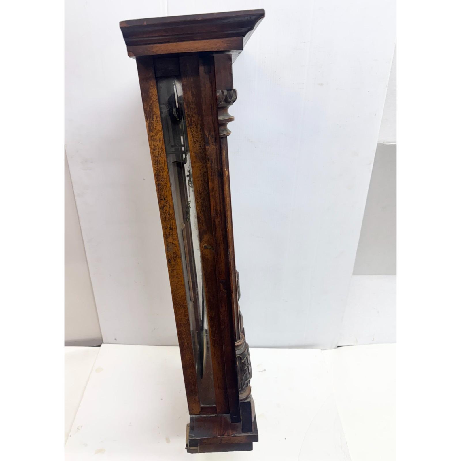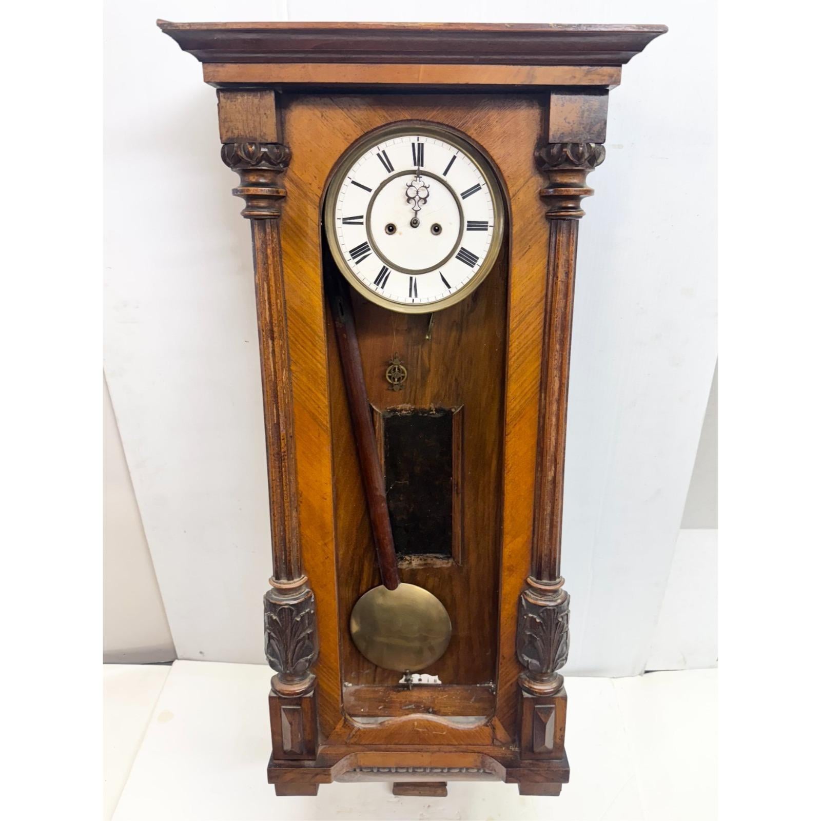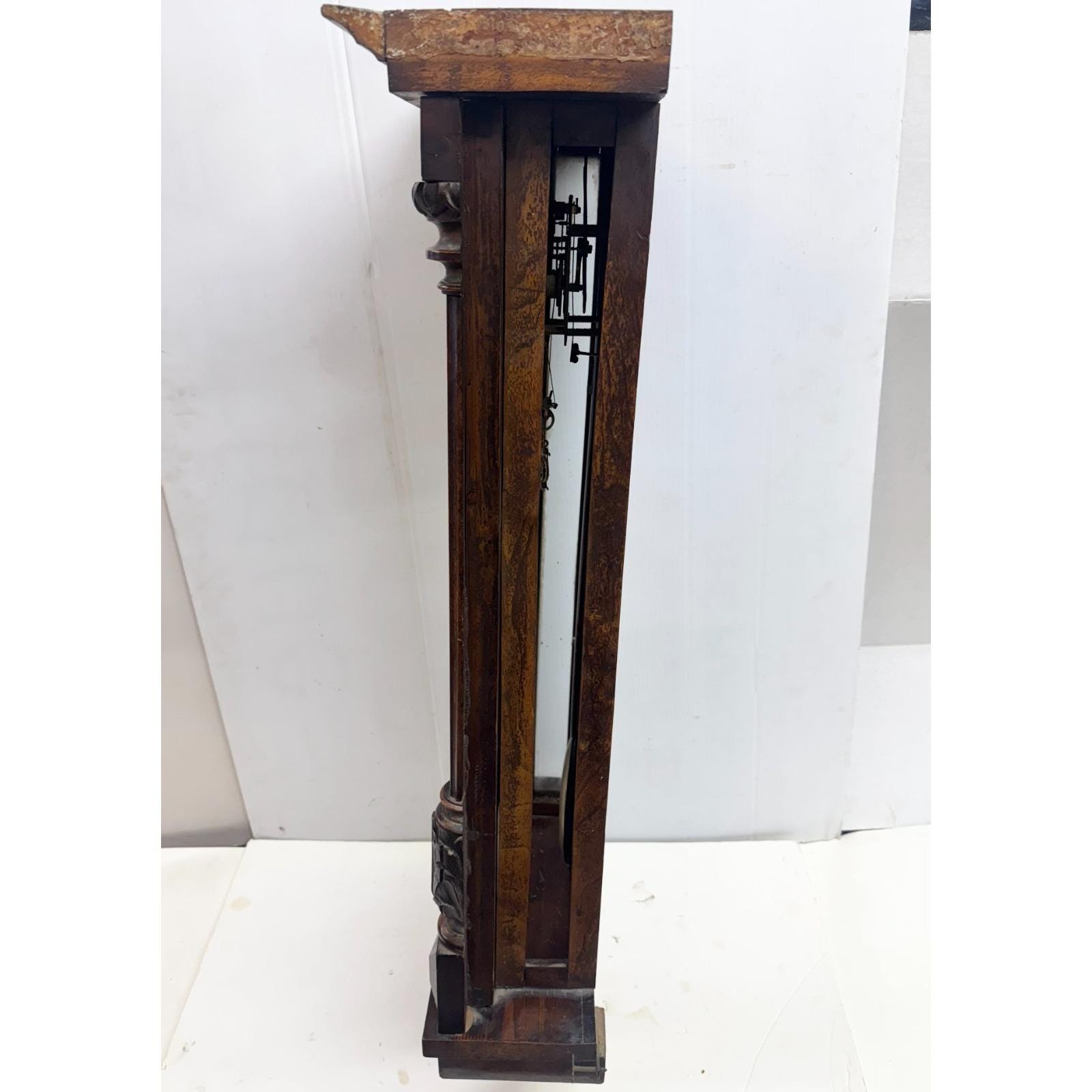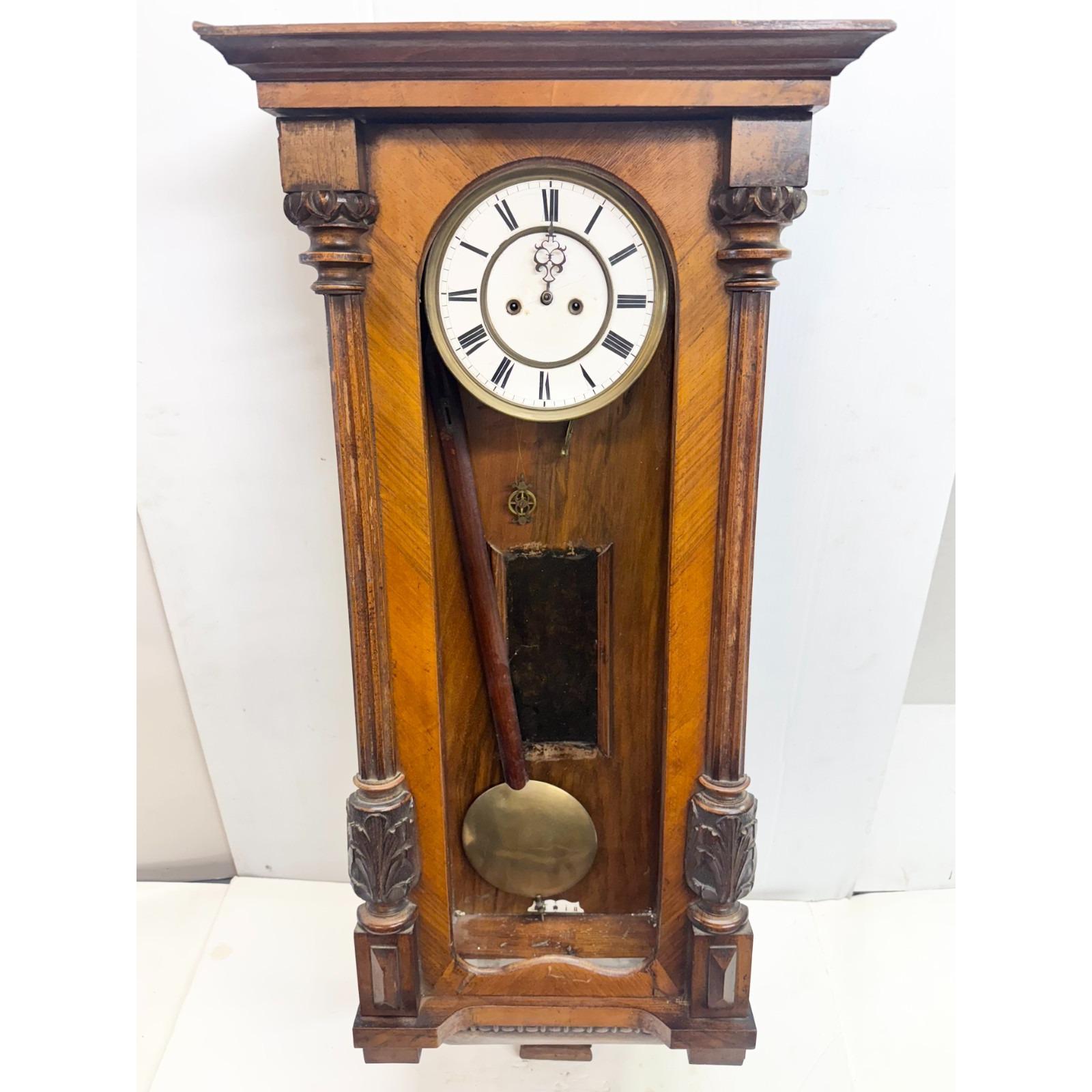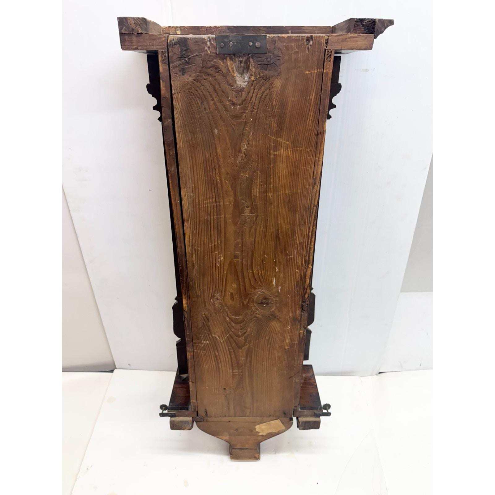 Missing front glass door and side door glass. Glass panel on one side. Hanging large pendulum. Approx 37 inches. Approx 16 inches wide. Depth is approx 8 inches. 16 lbs.