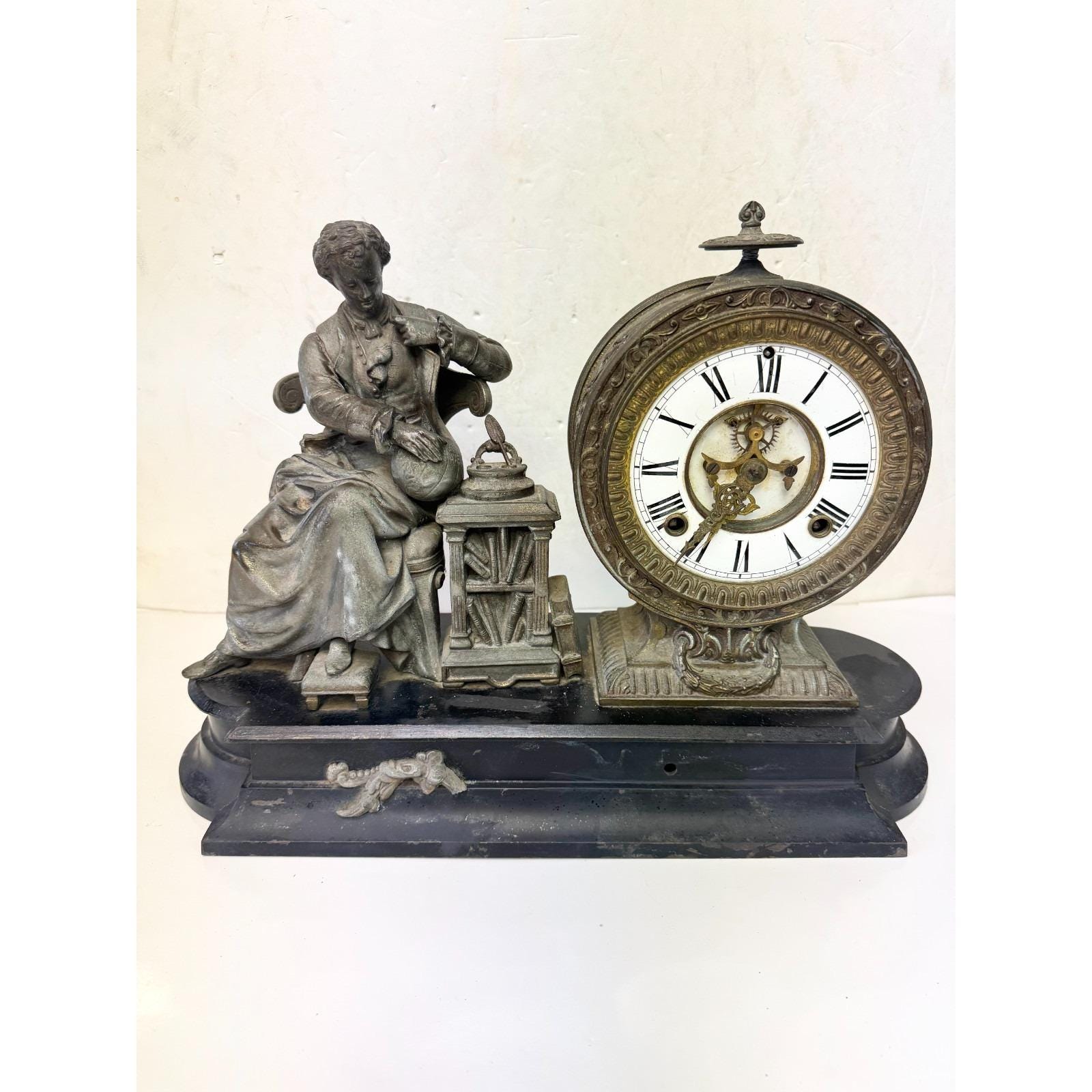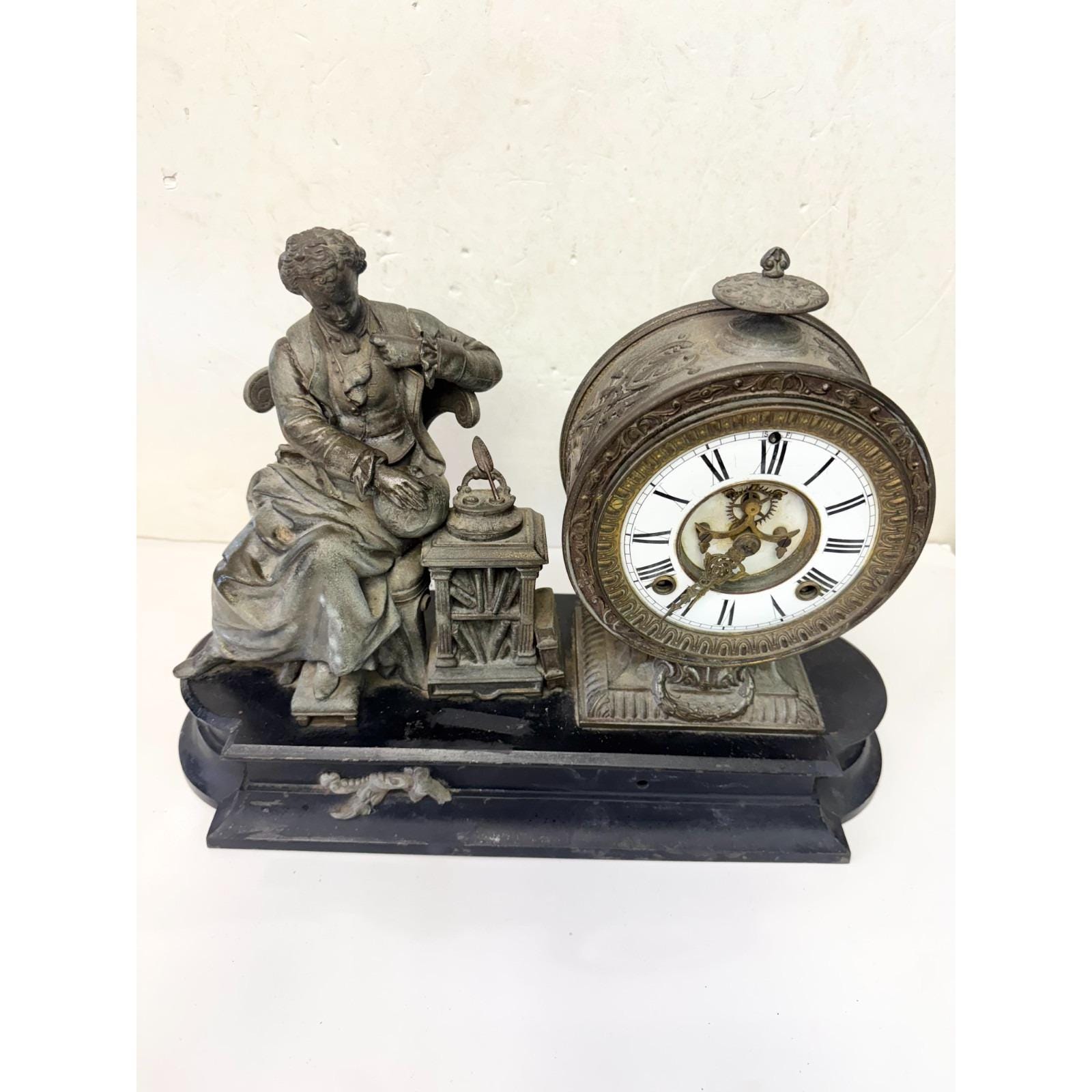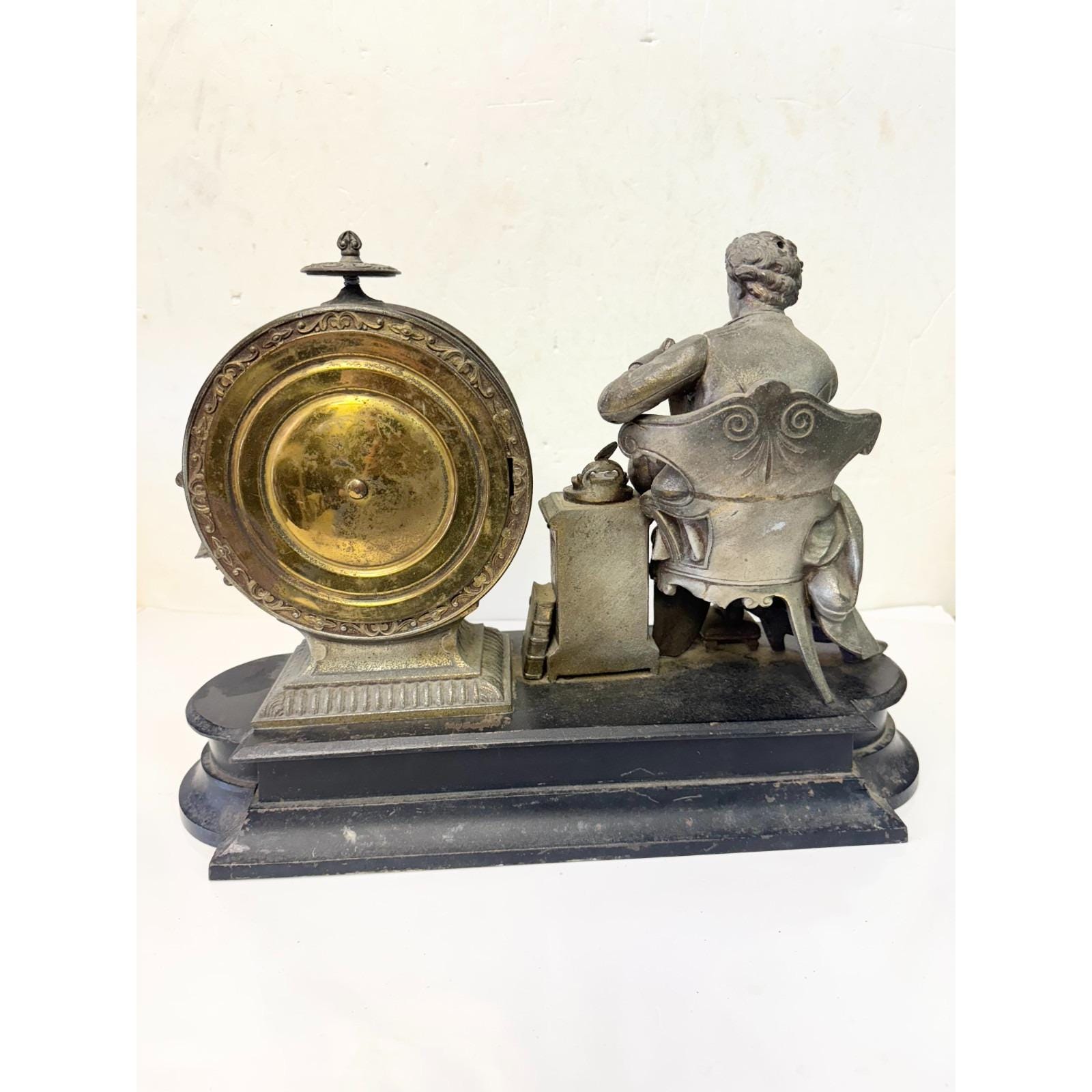 Antique Ansonia Clock Co Figural Mantle Clock Sir Issac Newton