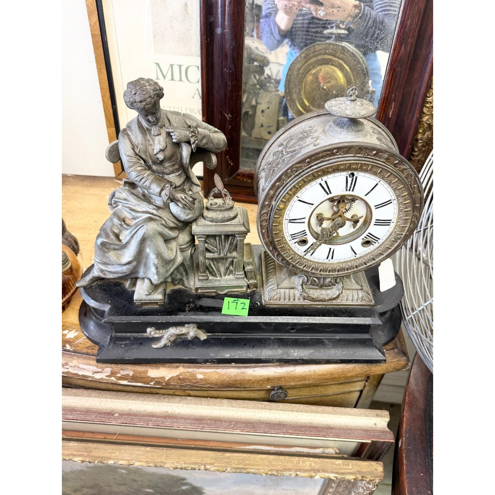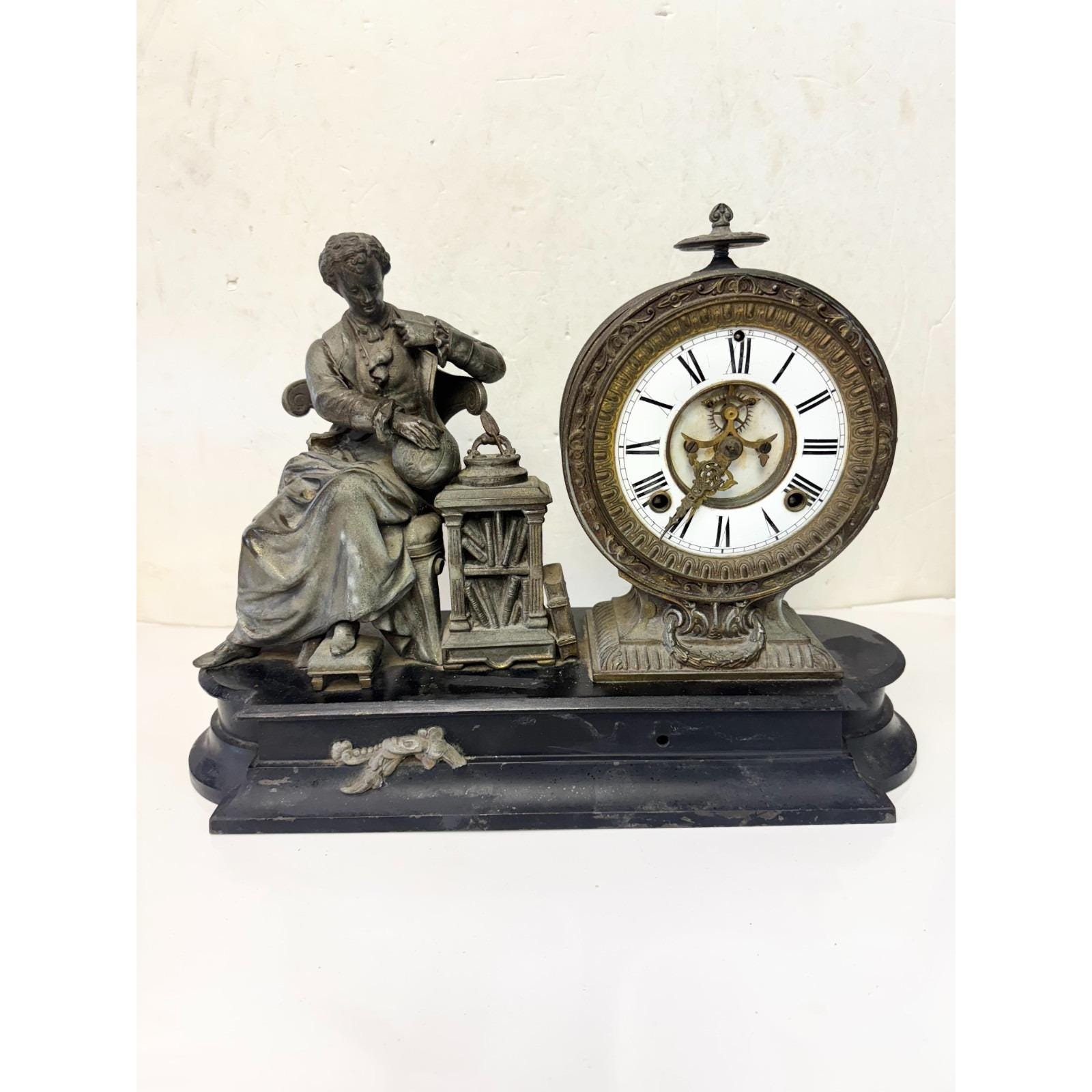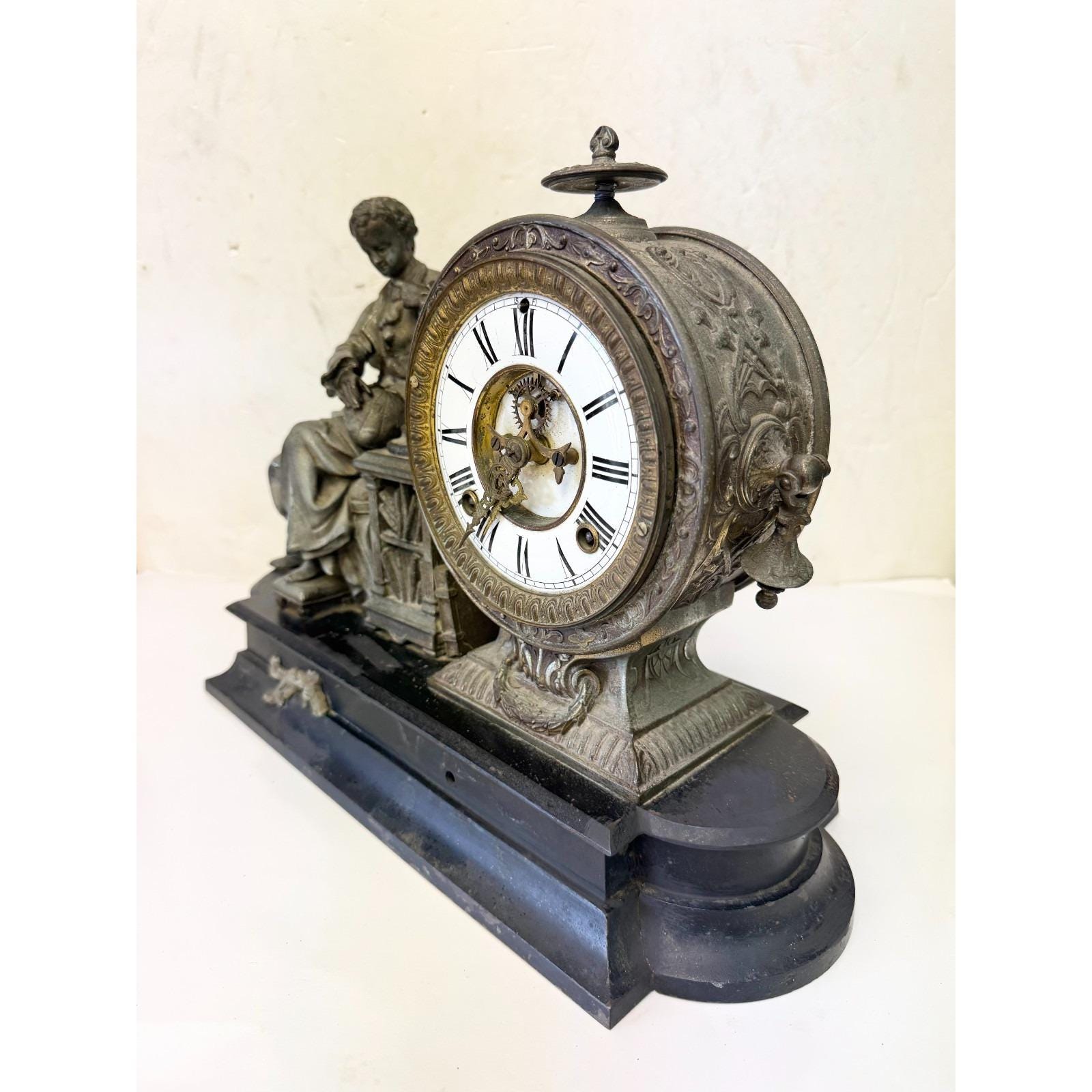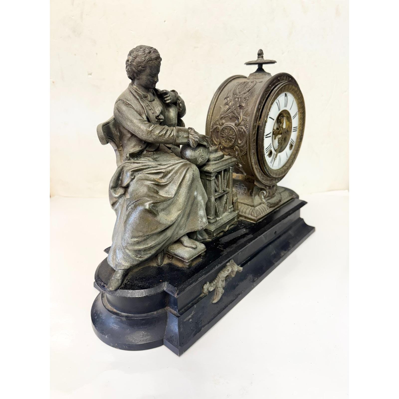 Antique Ansonia Clock Co Figural Mantle Clock Sir Issac Newton