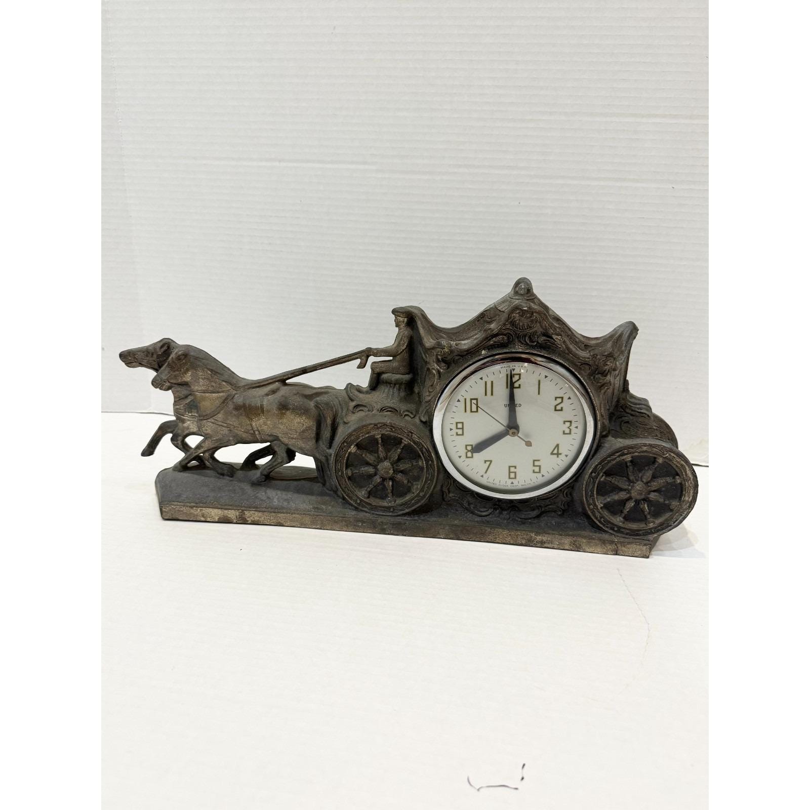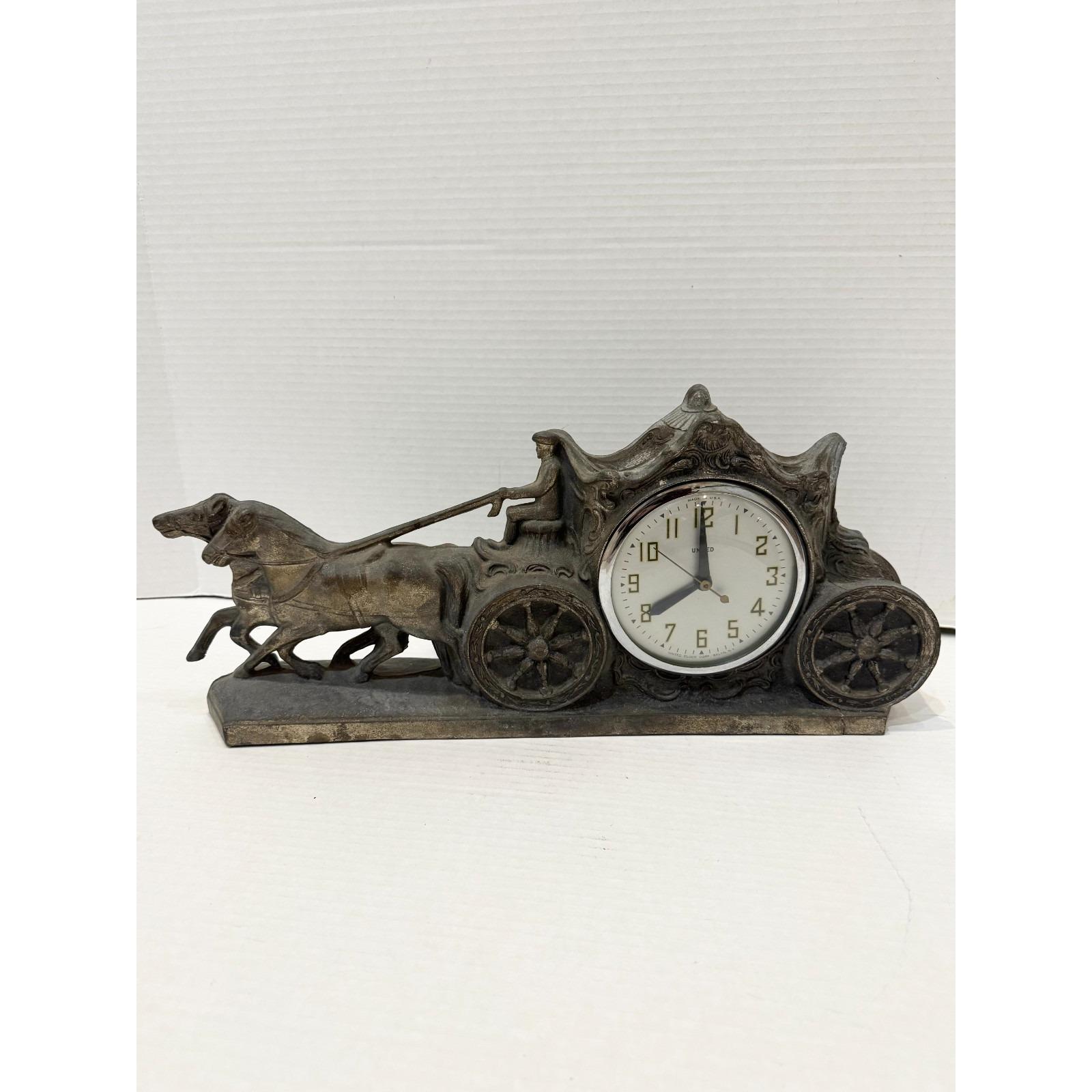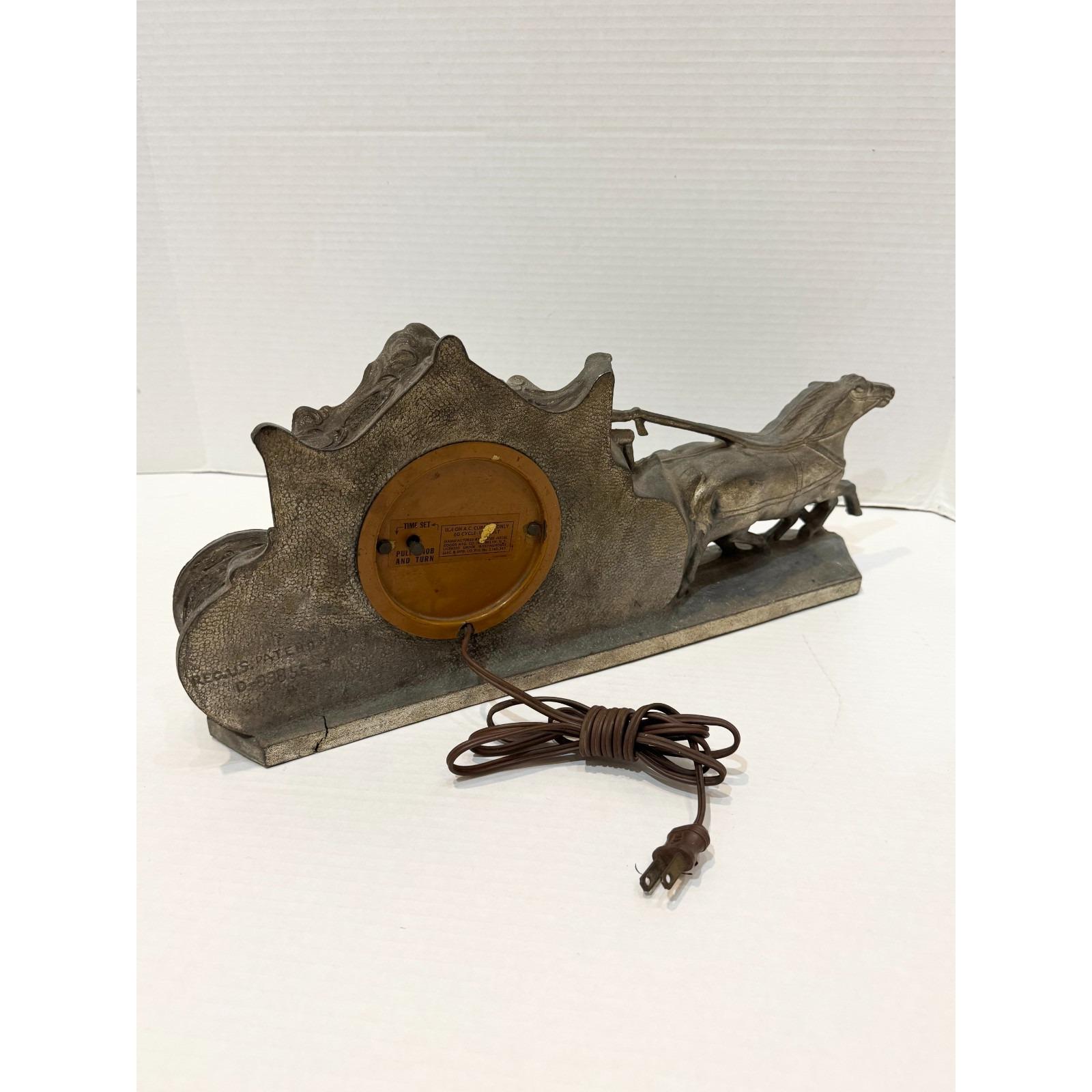 Antique United Electric Two Horses & Carriage Pewter Made In USA Mantel Clock