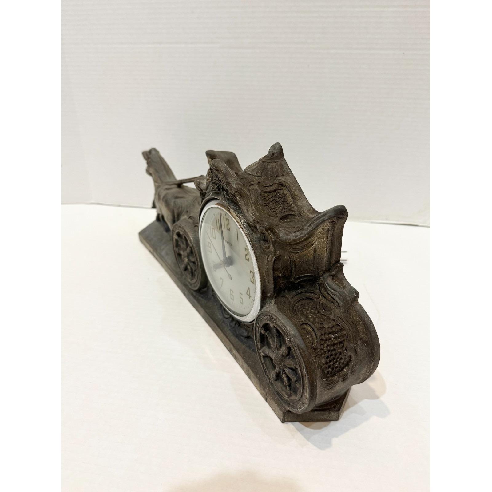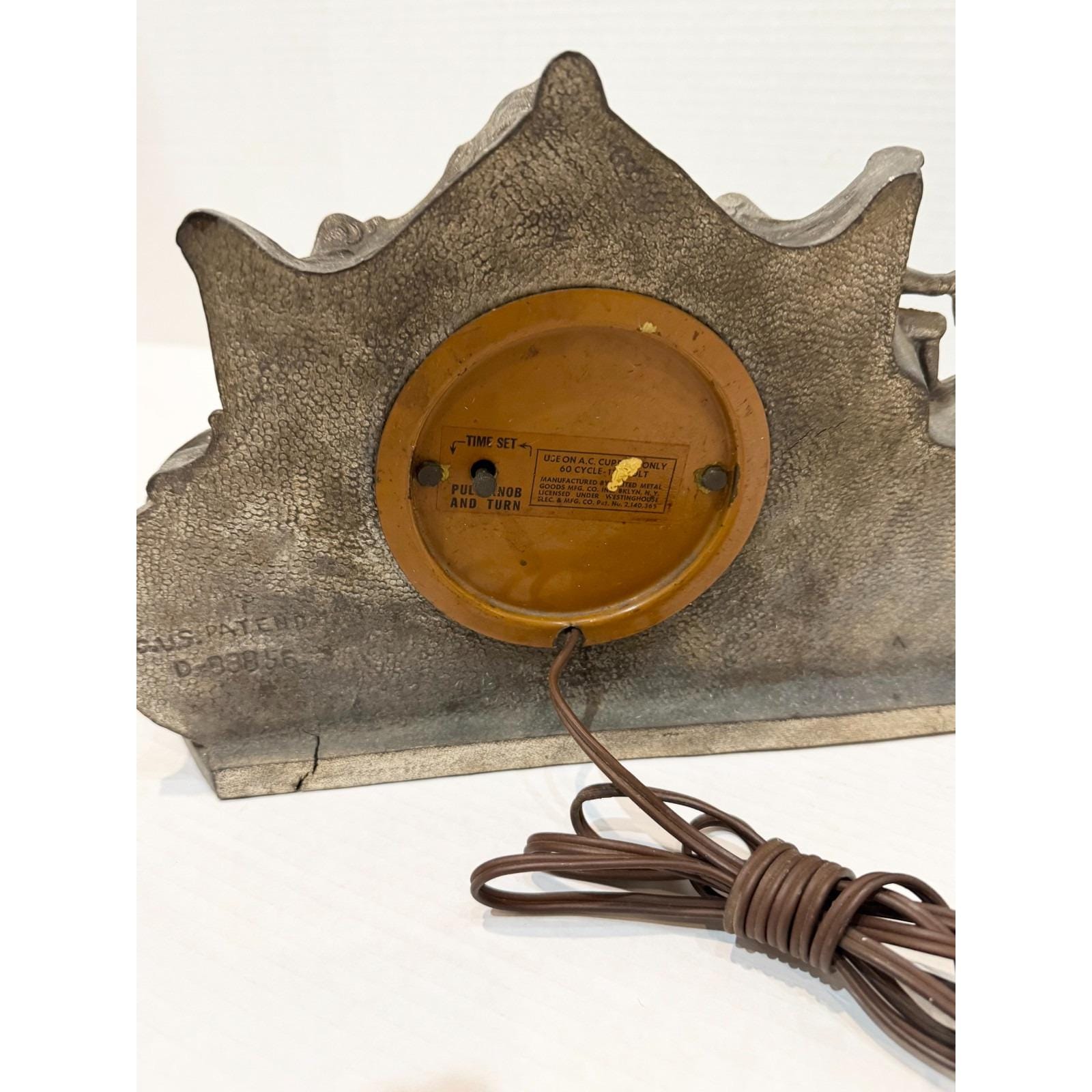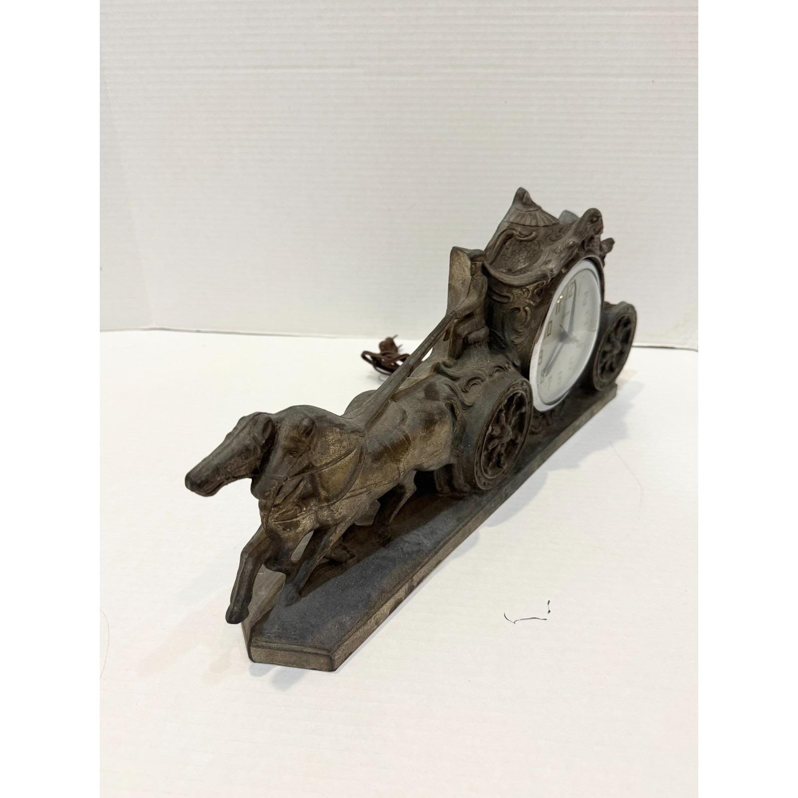 Antique United Electric Two Horses & Carriage Pewter Made In USA Mantel Clock