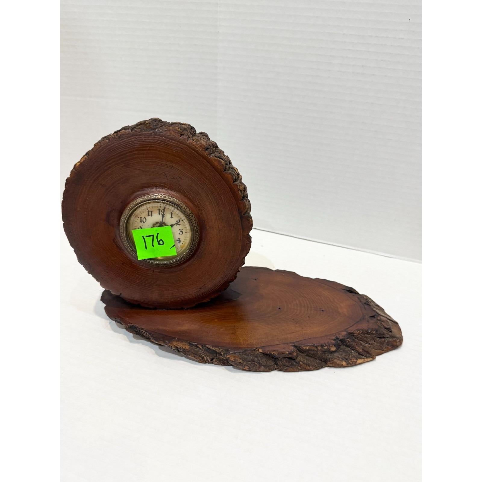 Carved wood clock with glass over clock face. Well made carved wooden clock. 2 lbs.12 inches long 7 inches tall depth is 3.5 inches. Selling "as is." Not sure if it is in working condition