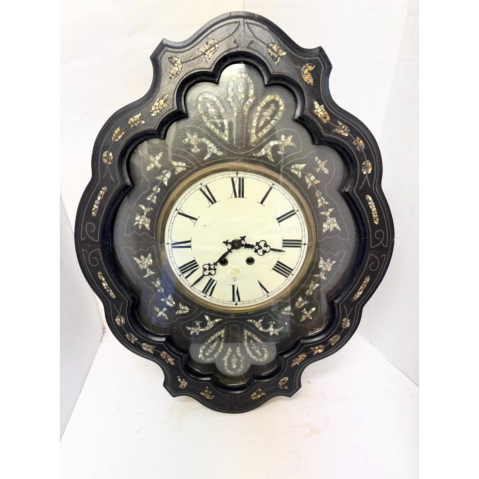 Antique French Mother of Pearl Inlay Pendulum Wall Clock