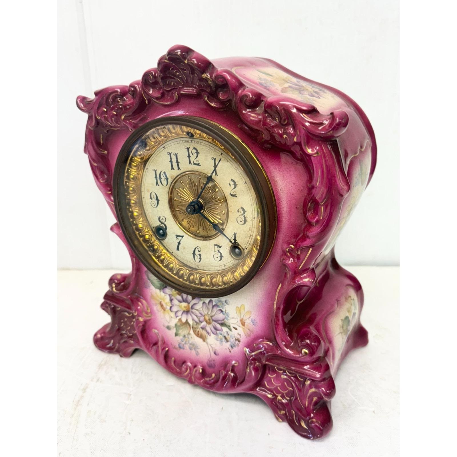 Tuckahoe Ansonia Porcelain Pink Floral Mantle Clock