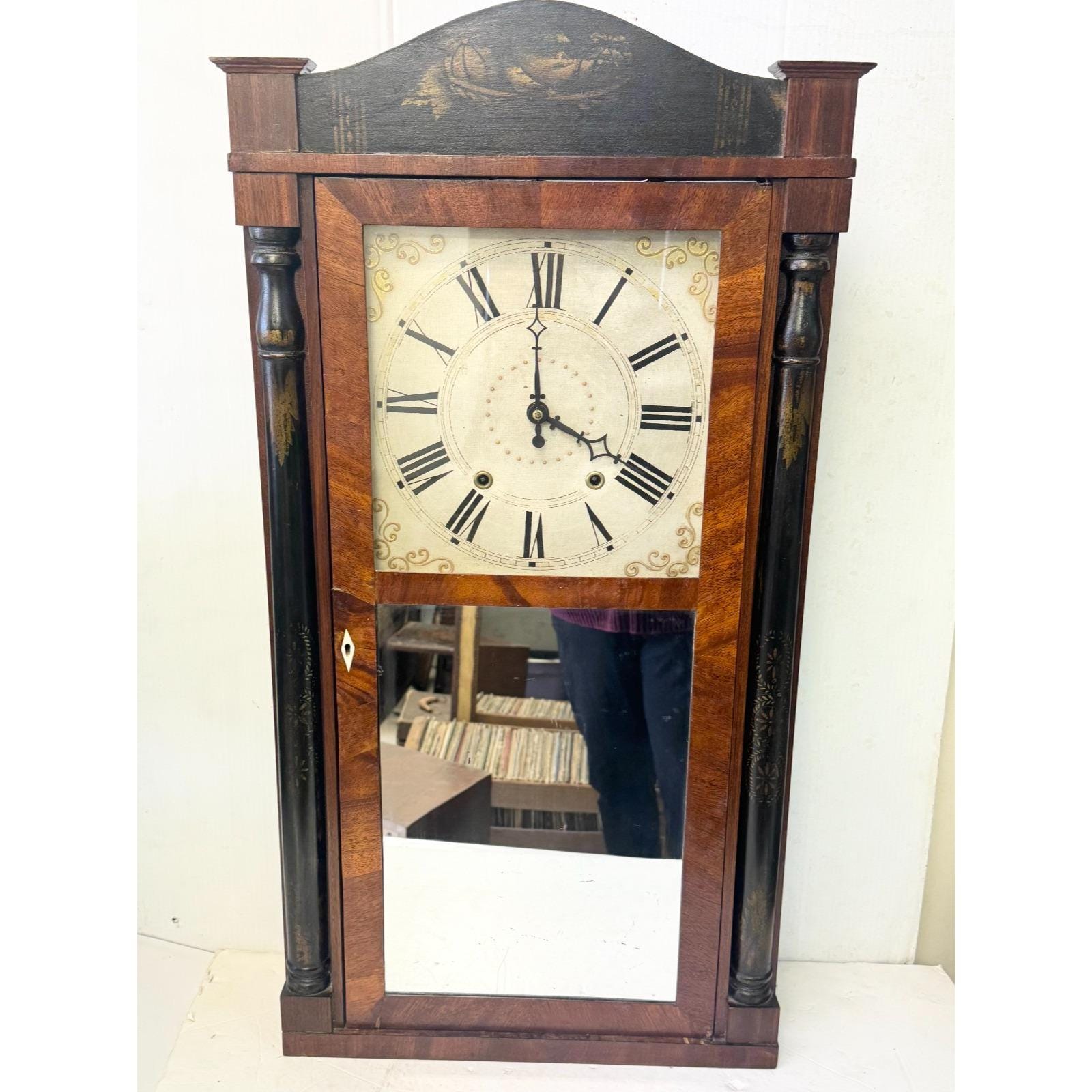 Antique Riley Whiting Wood Mirror Large Wall Clock