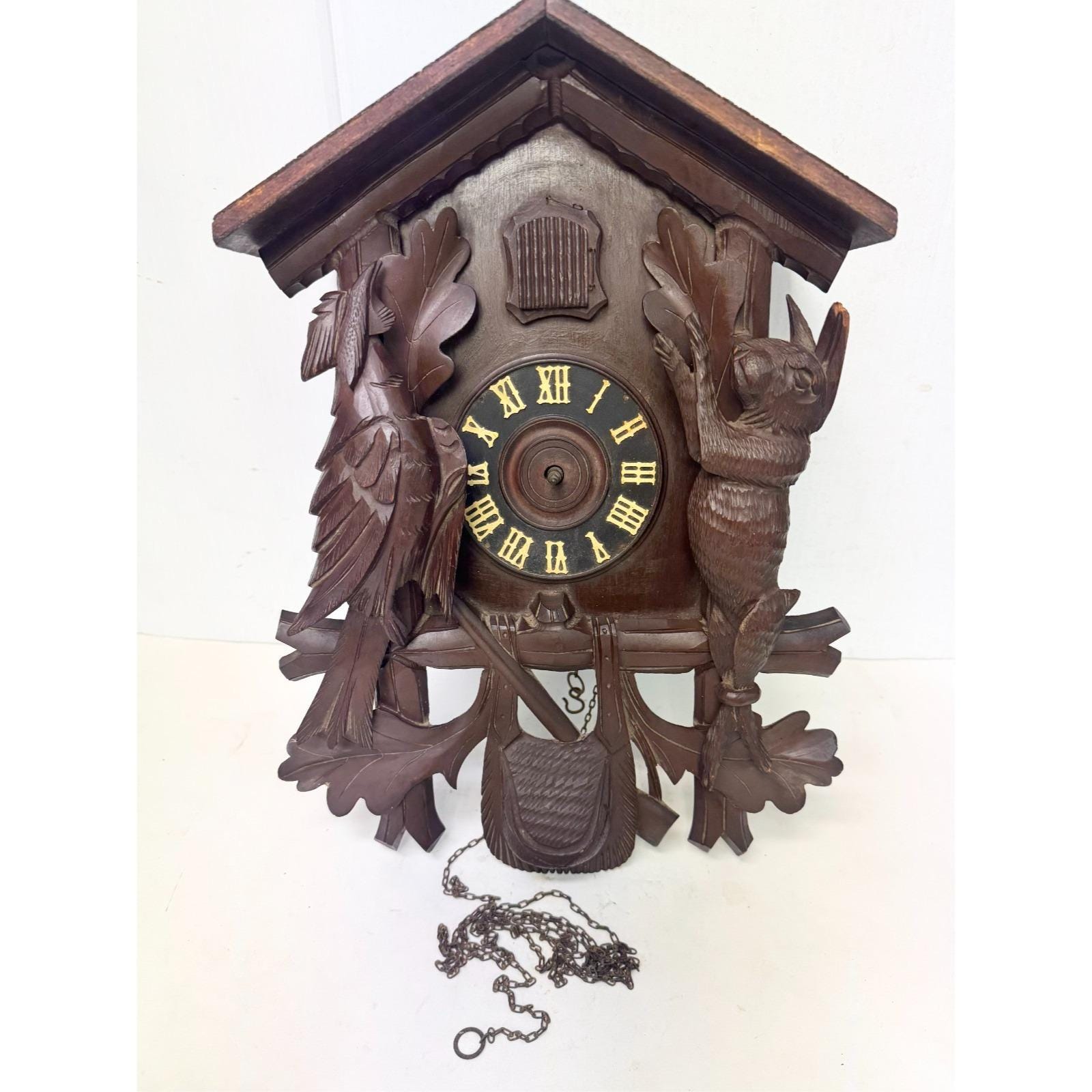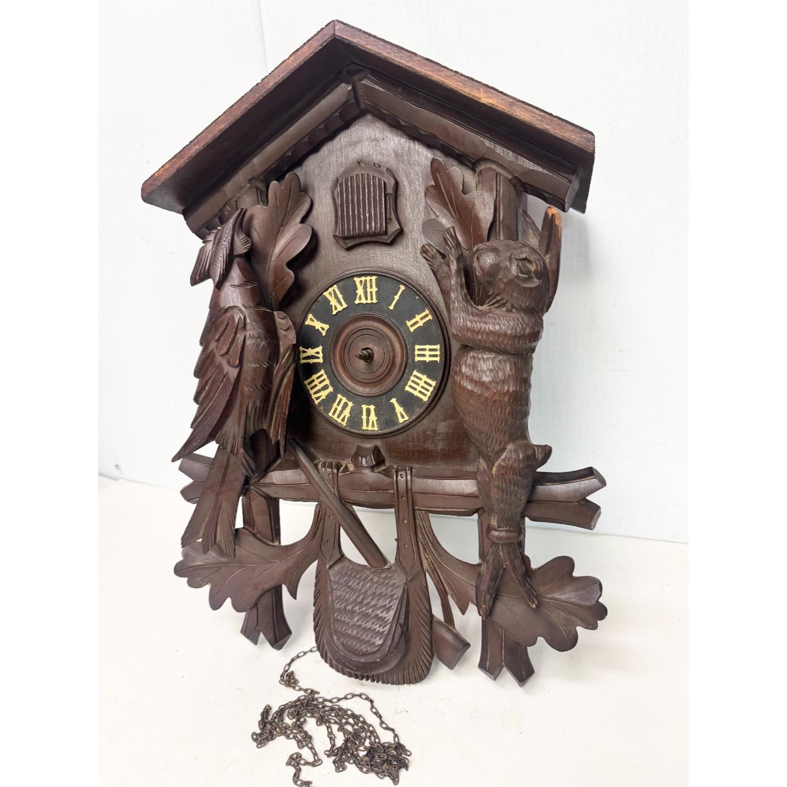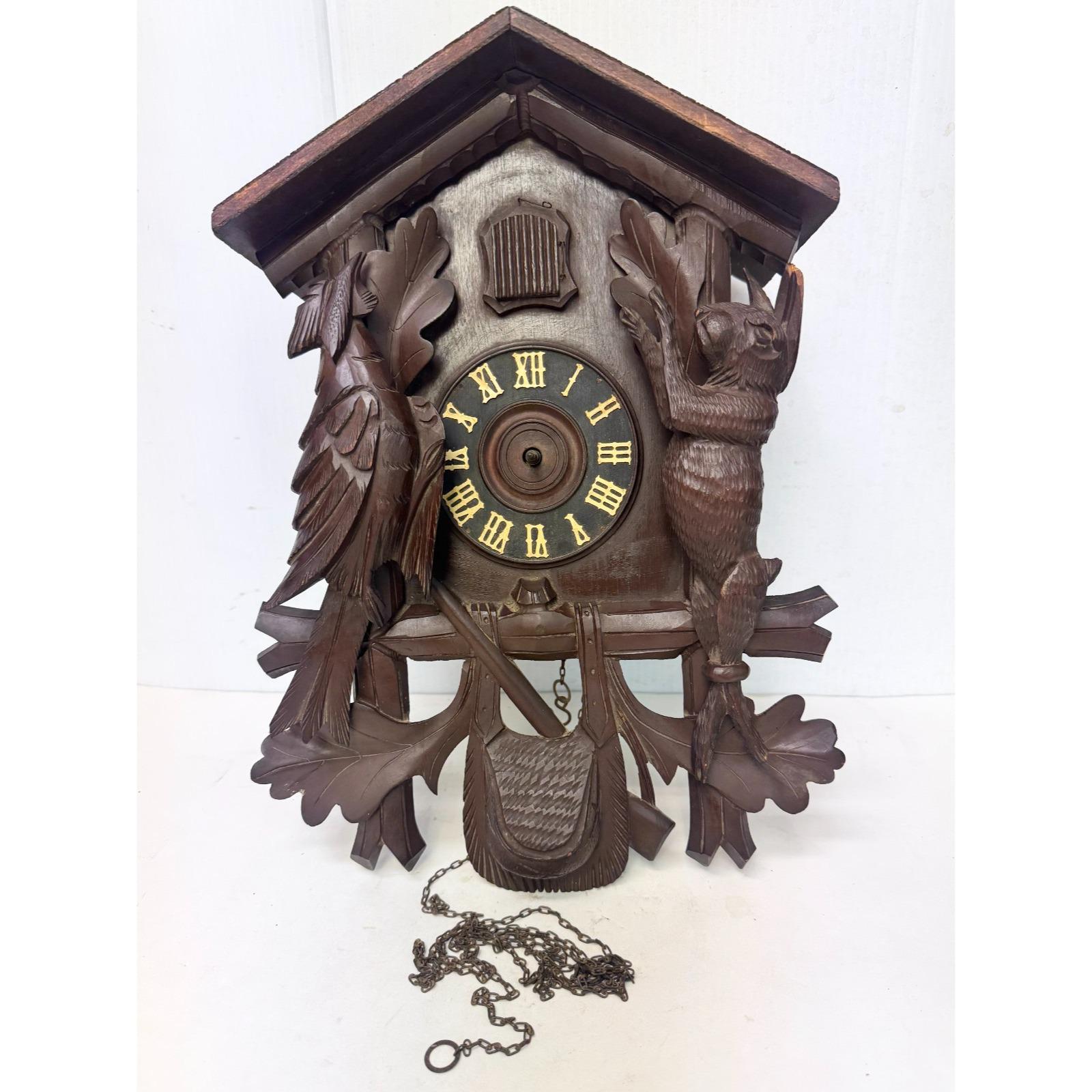 Antique Wood Germany Cuckoo Clock MFG Wall Clock Schatz 8 Day Carved Rabbit & Pheasant