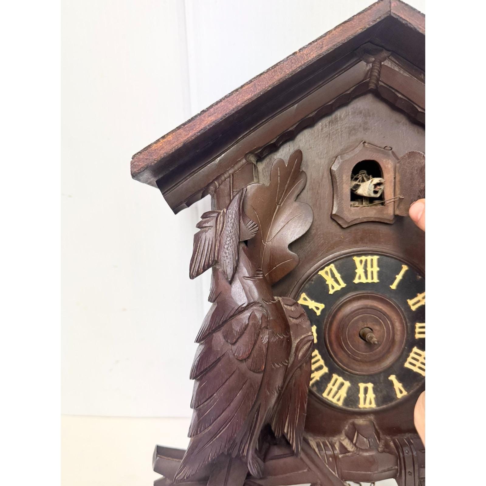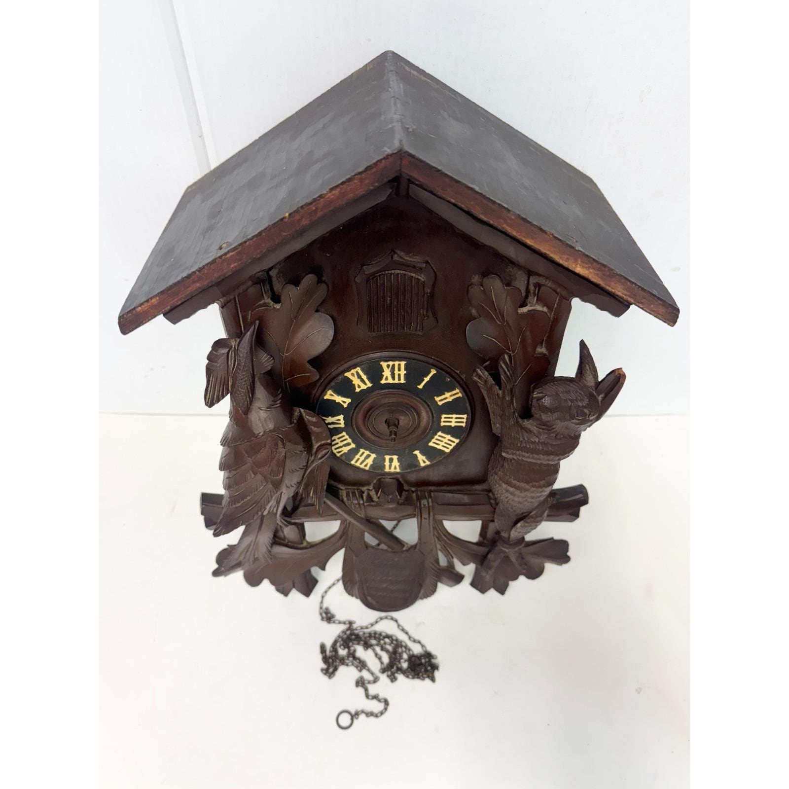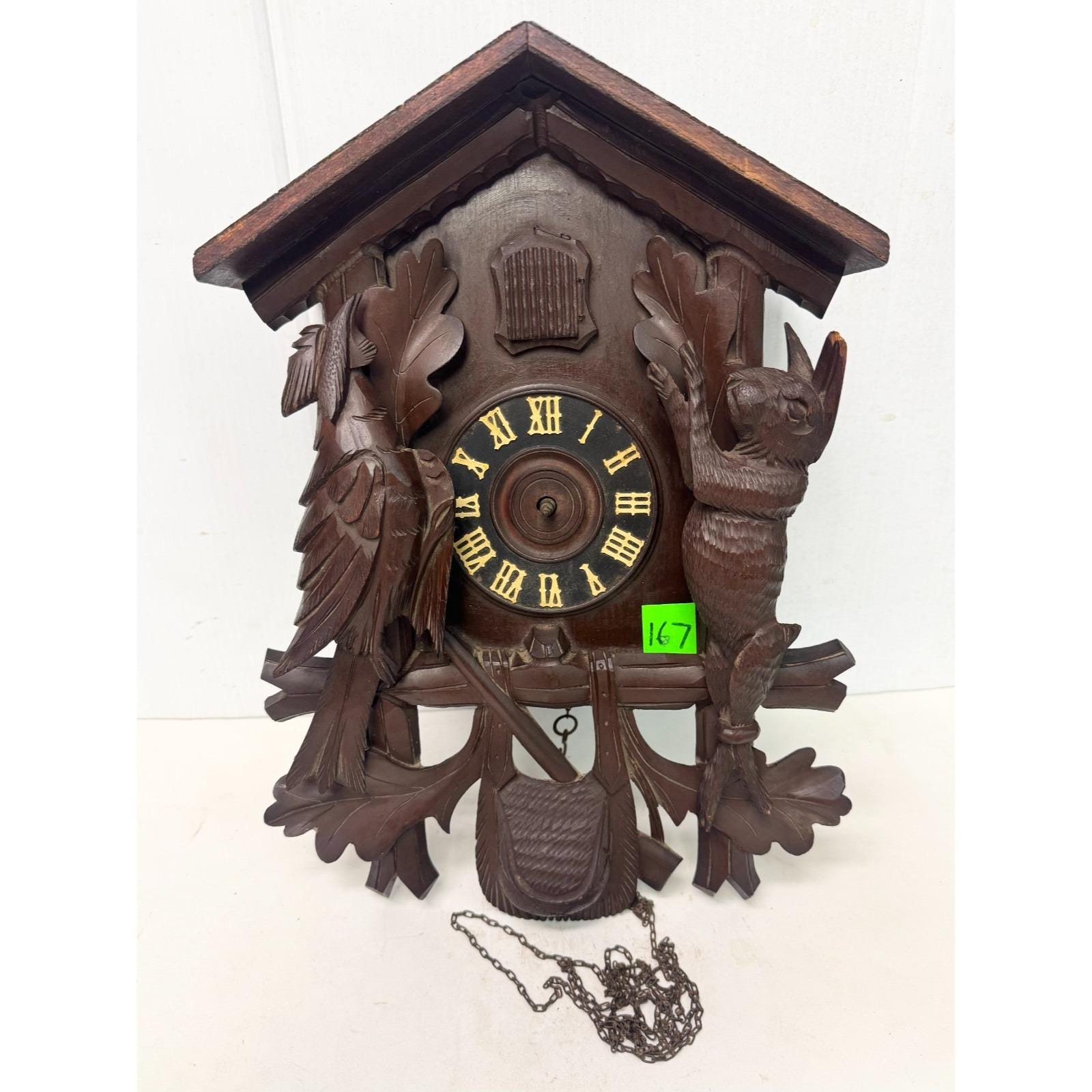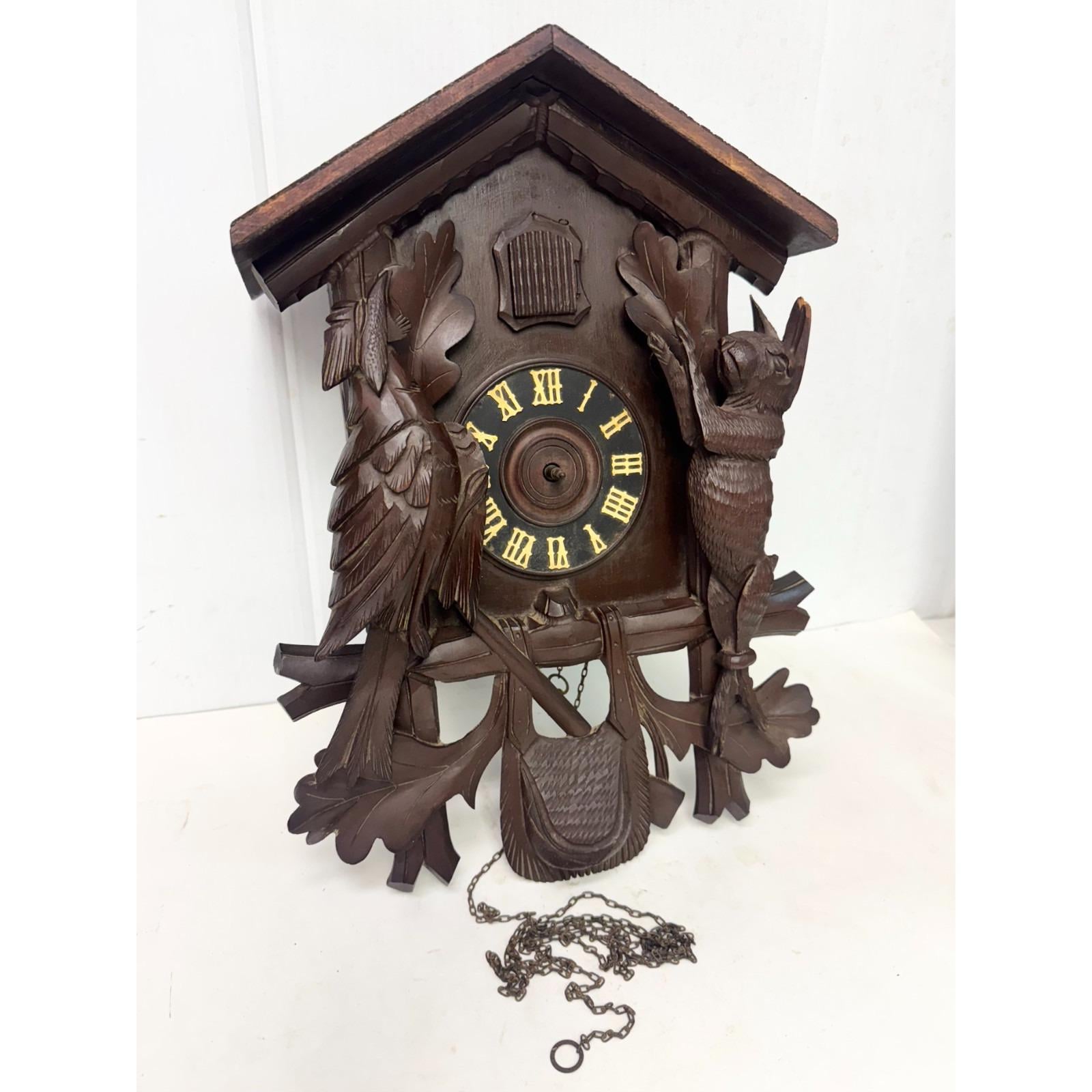 Antique Wood Germany Cuckoo Clock MFG Wall Clock Schatz 8 Day Carved Rabbit & Pheasant