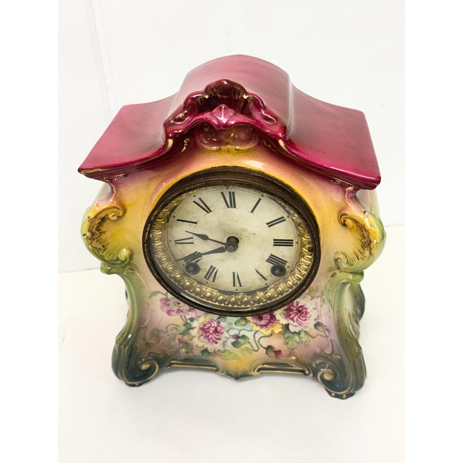 Antique Victorian Royal Bonn Germany Porcelain Mantle Clock